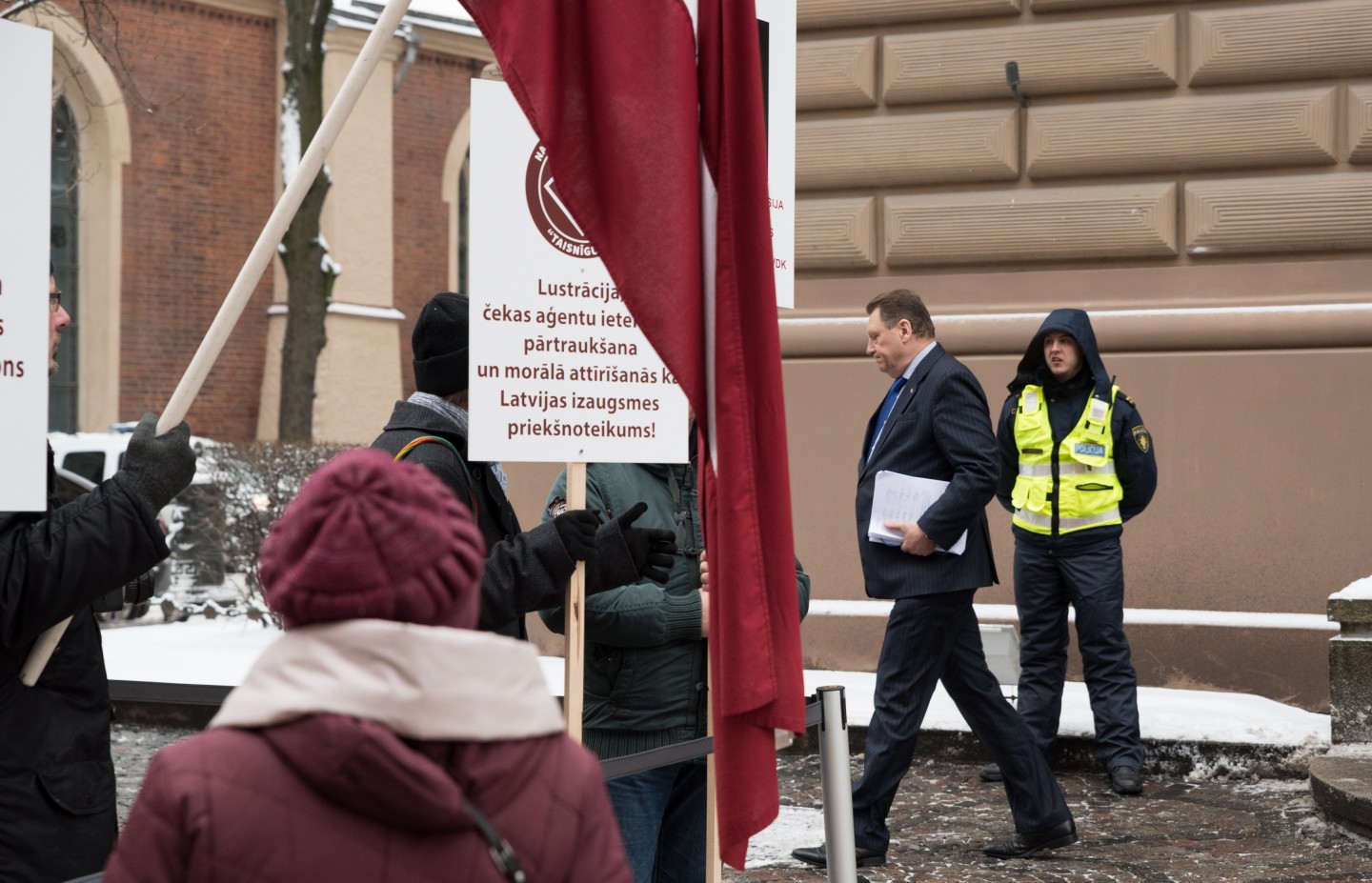Šorīt aptuveni 40 cilvēki piketā pie Saeimas pieprasīja rast risinājumus netraucētai bijušās Valsts drošības komitejas (VDK) aģentu datu bāzes publiskošanai. Piketu organizēja nacionālā savienība "Taisnīgums".