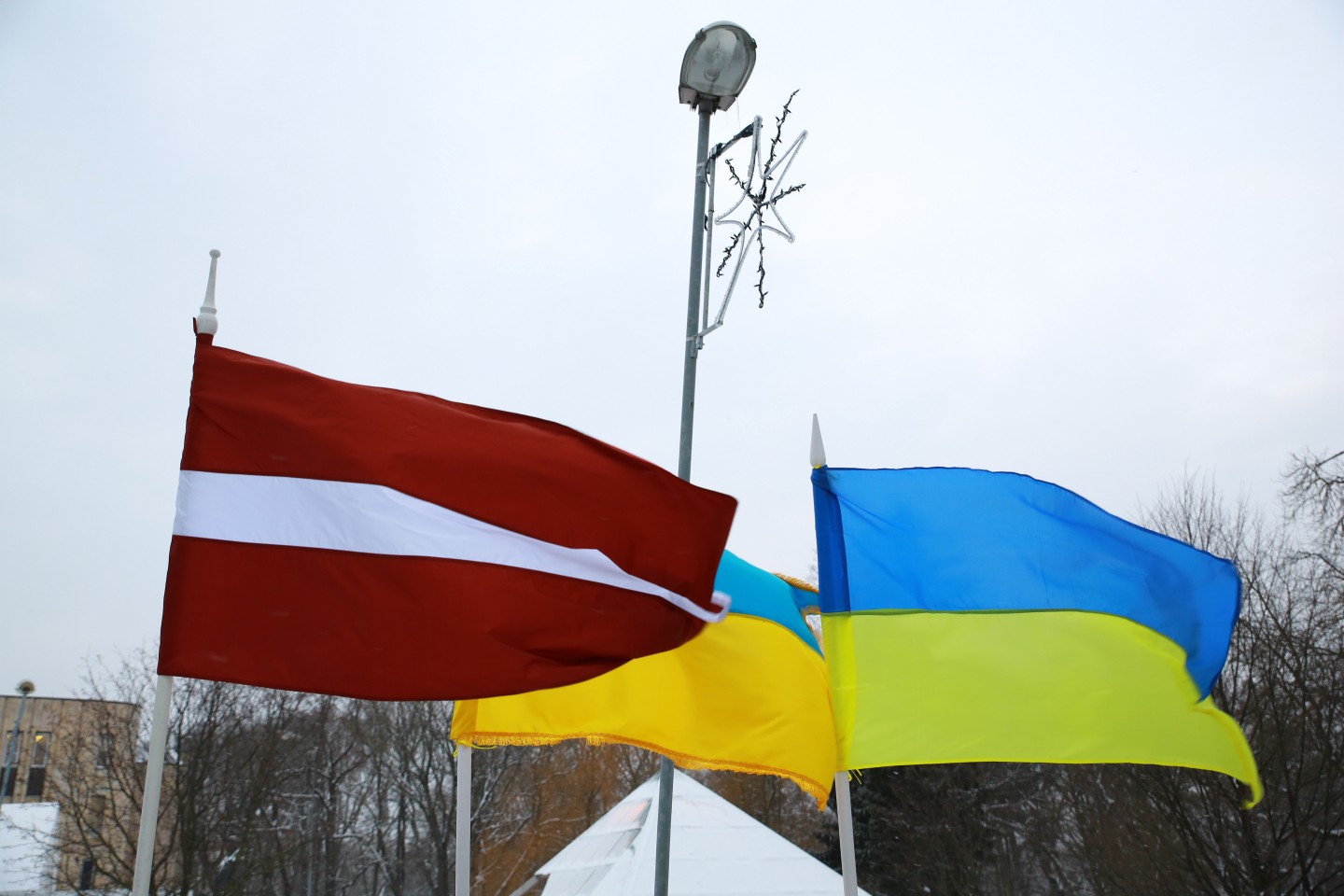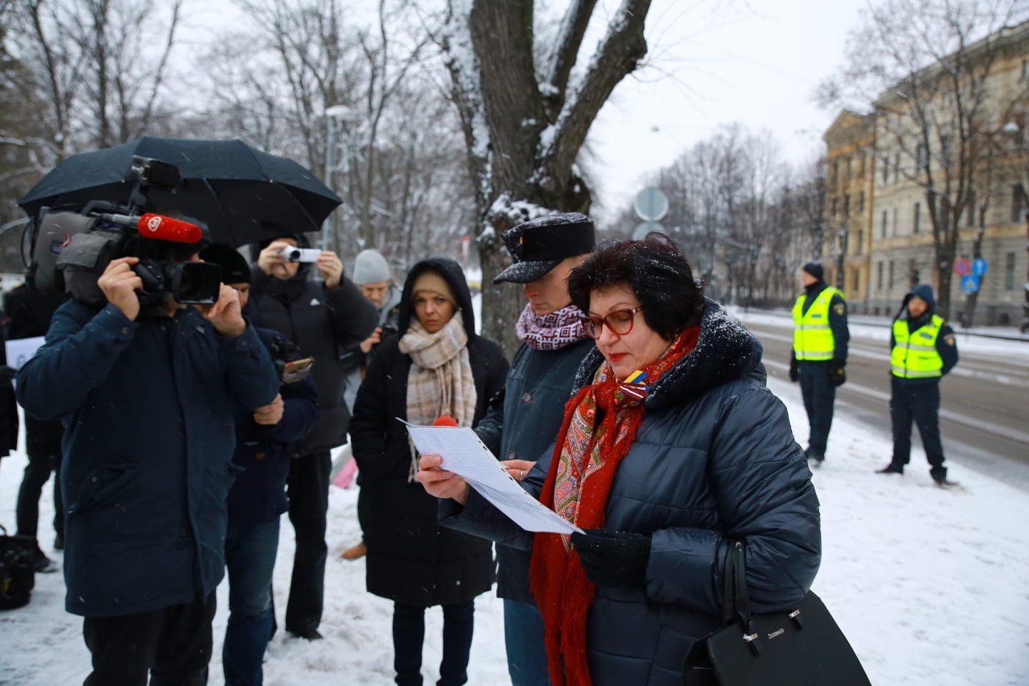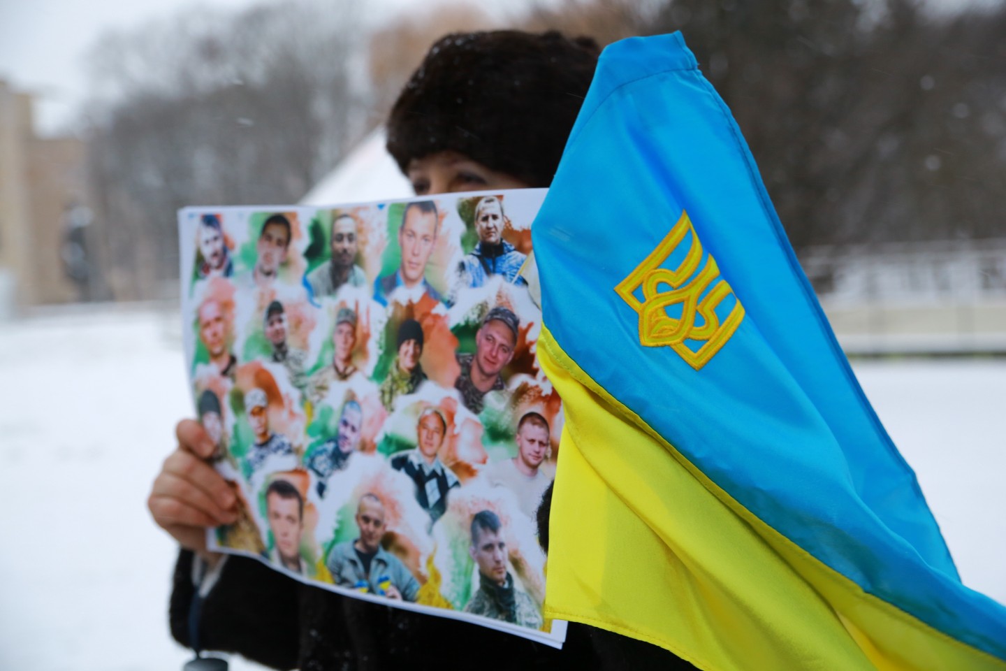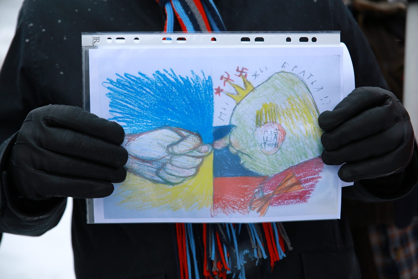 Pie Krievijas vēstniecības Latvijā šovakar aptuveni 20 cilvēki piedalījās protesta akcijā "pret Krievijas agresiju Ukrainā" ar nosaukumu "Stop Putin's War in Ukraine", novēroja aģentūra LETA. Protesta akcijas dalībnieki rokās turēja plakātus, kuros attēlotas gūstā nokļuvušo Ukrainas karavīru acis. Tāpat akcijas dalībnieki aicināja starptautisko sabiedrību boikotēt Krievijā šovasar paredzēto Pasaules kausu futbolā. Plakātos arī aicināts apturēt Krievijas prezidentu Vladimiru Putinu un karu, kā arī atbrīvot Krimas musulmaņus. Akcijas dalībnieki nolasīja manifestu, kurā aicināts starptautisko sabiedrību boikotēt jau pieminēto futbola čempionātu ņemot vērā Krievijas organizēto agresiju Ukrainā.