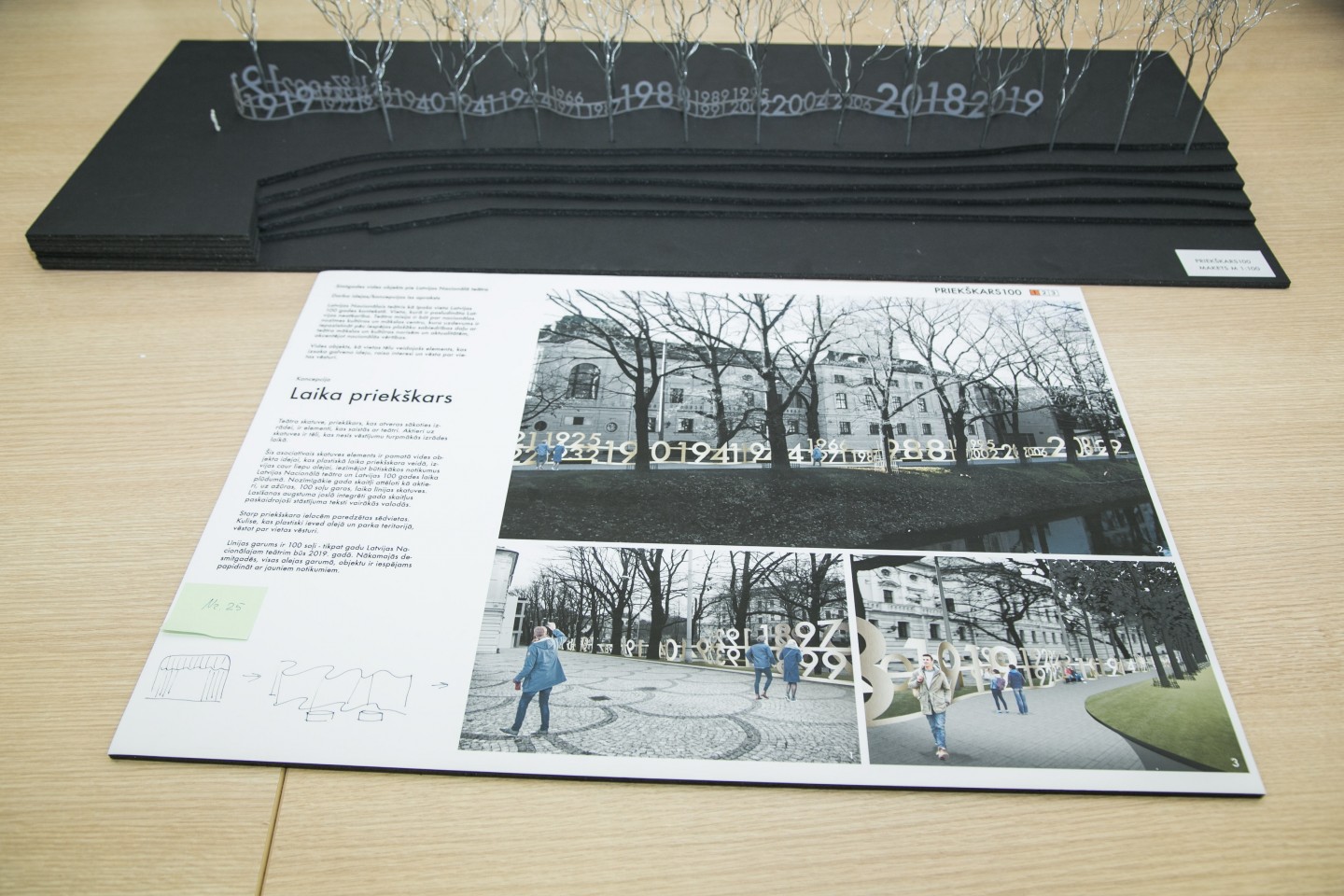 Žūrija izvērtē 26 iesniegtās skices simtgades alejas izveidei pie Latvijas Nacionālā teātra.