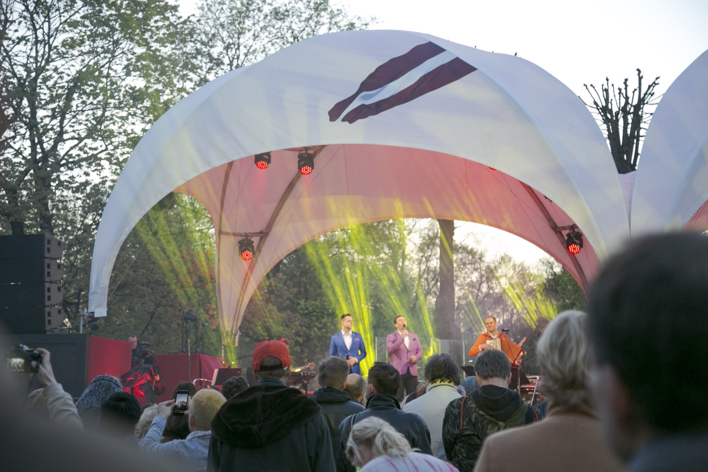 Vairāki simti iedzīvotāju piektdienas vakarā baudīja valsts svētku koncertu pie Brīvības pieminekļa. Koncertā "Brīvības pieturas" piedalījās solisti Elza Rozentāle, Jolanta Strikaite-Lapiņa, Daumants Kalniņš, Juris Jope, Zigfrīds Muktupāvels, grupa "Rikši", aktieri Gints Grāvelis, Gints Andžāns, koris "Maska" un diriģents Jānis Ozols. Koncertu vada aktieris Artūrs Skrastiņš.