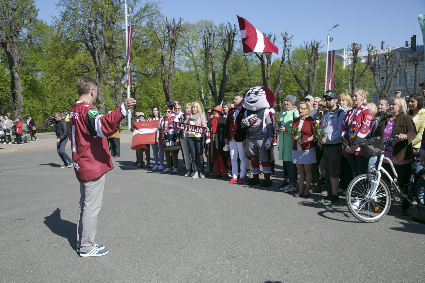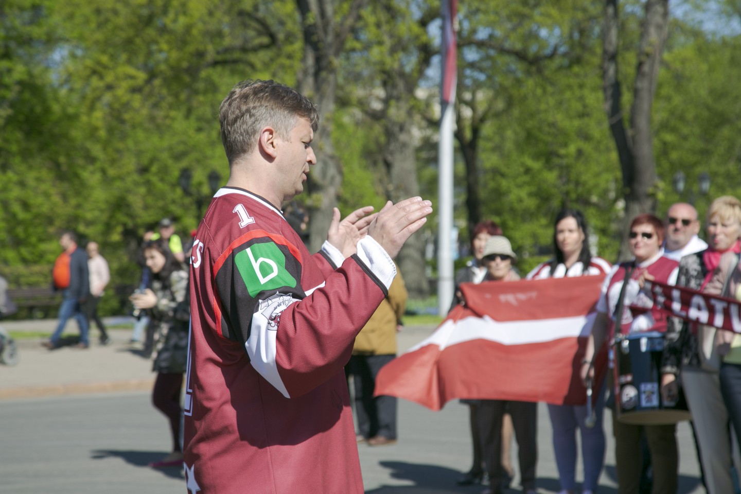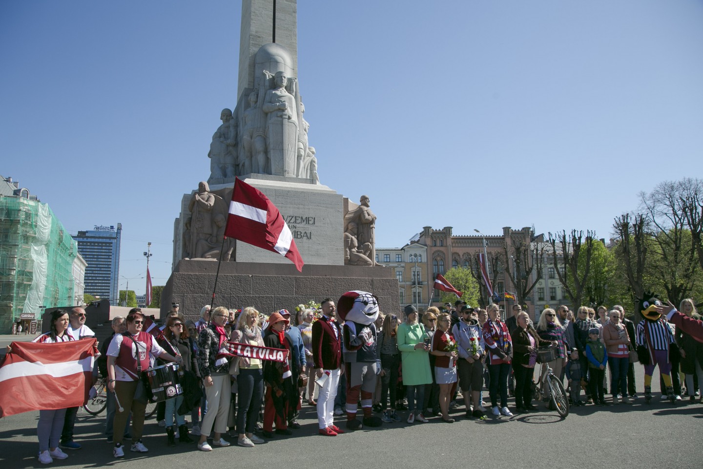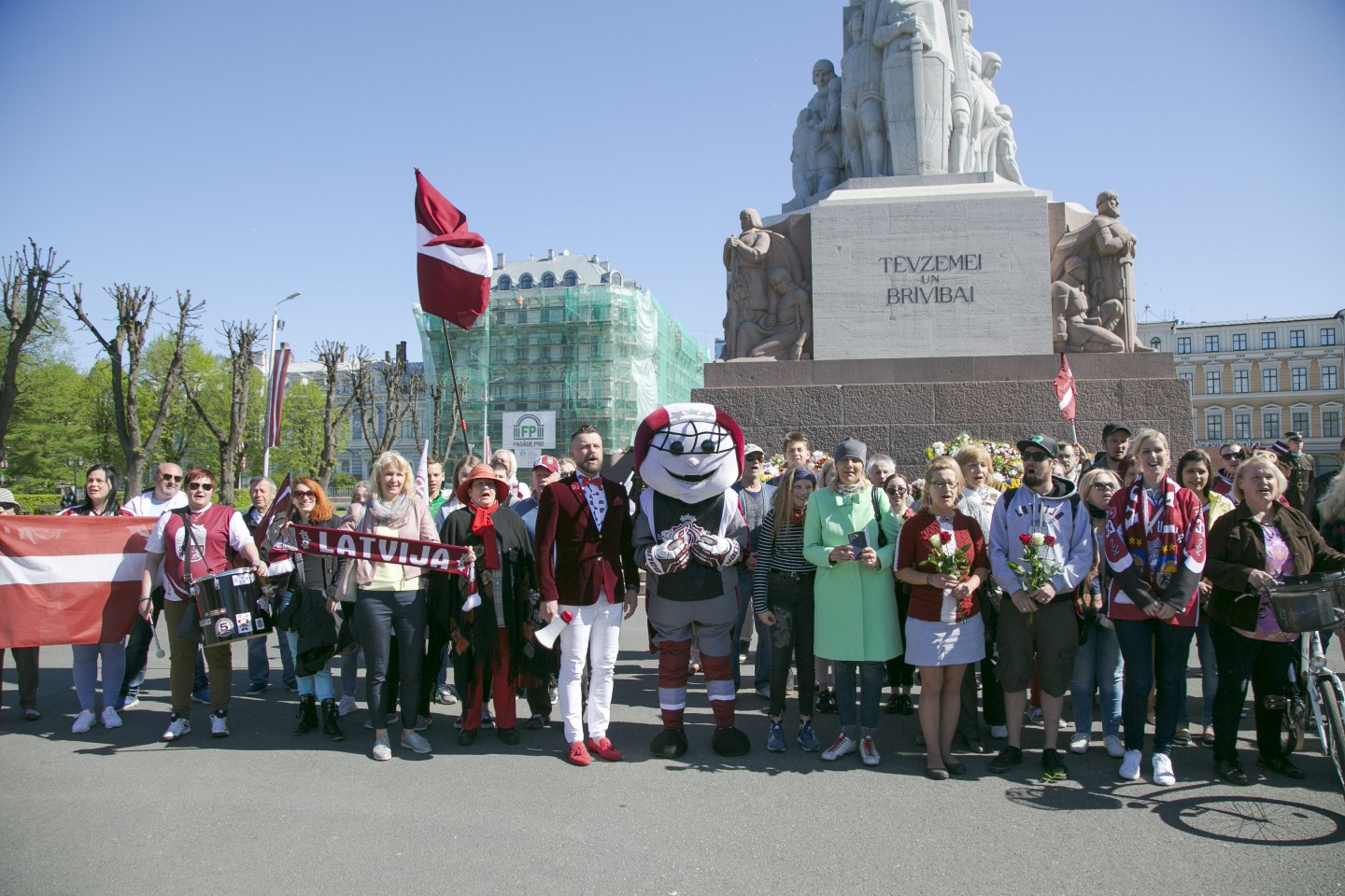 Sestdien pie Brīvības pieminekļa notika zibakcija - Latvijas himnas kopdziedāšana, tādējādi dāvājot enerģiju Latvijai simtgadē un Latvijas hokeja izlasei veiksmīgam startam Pasaules hokeja čempionātā.