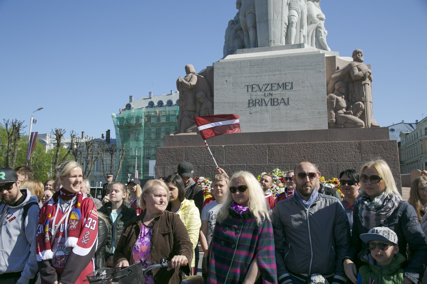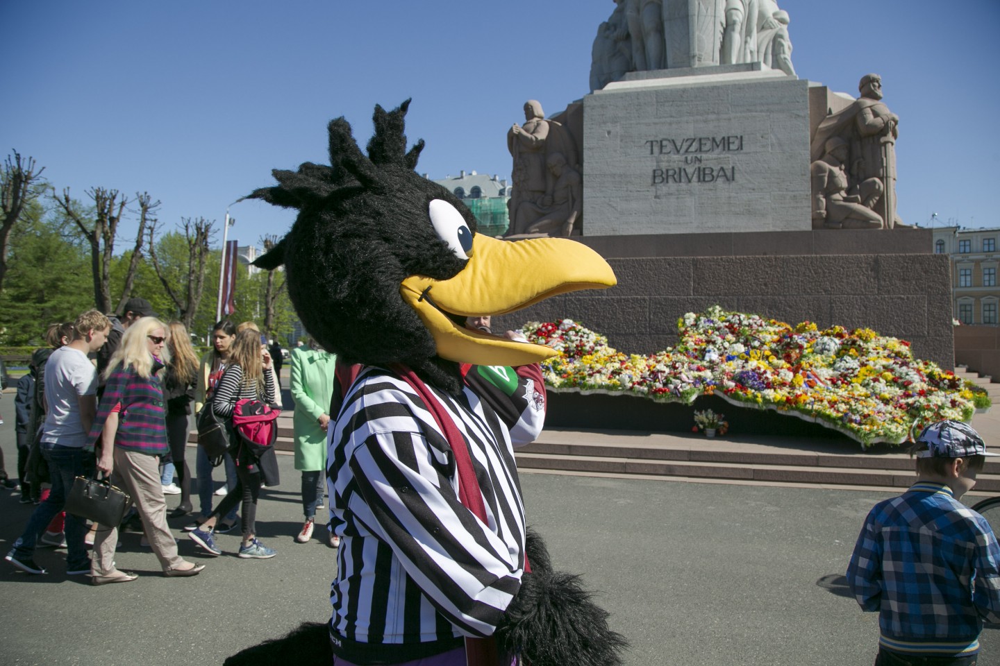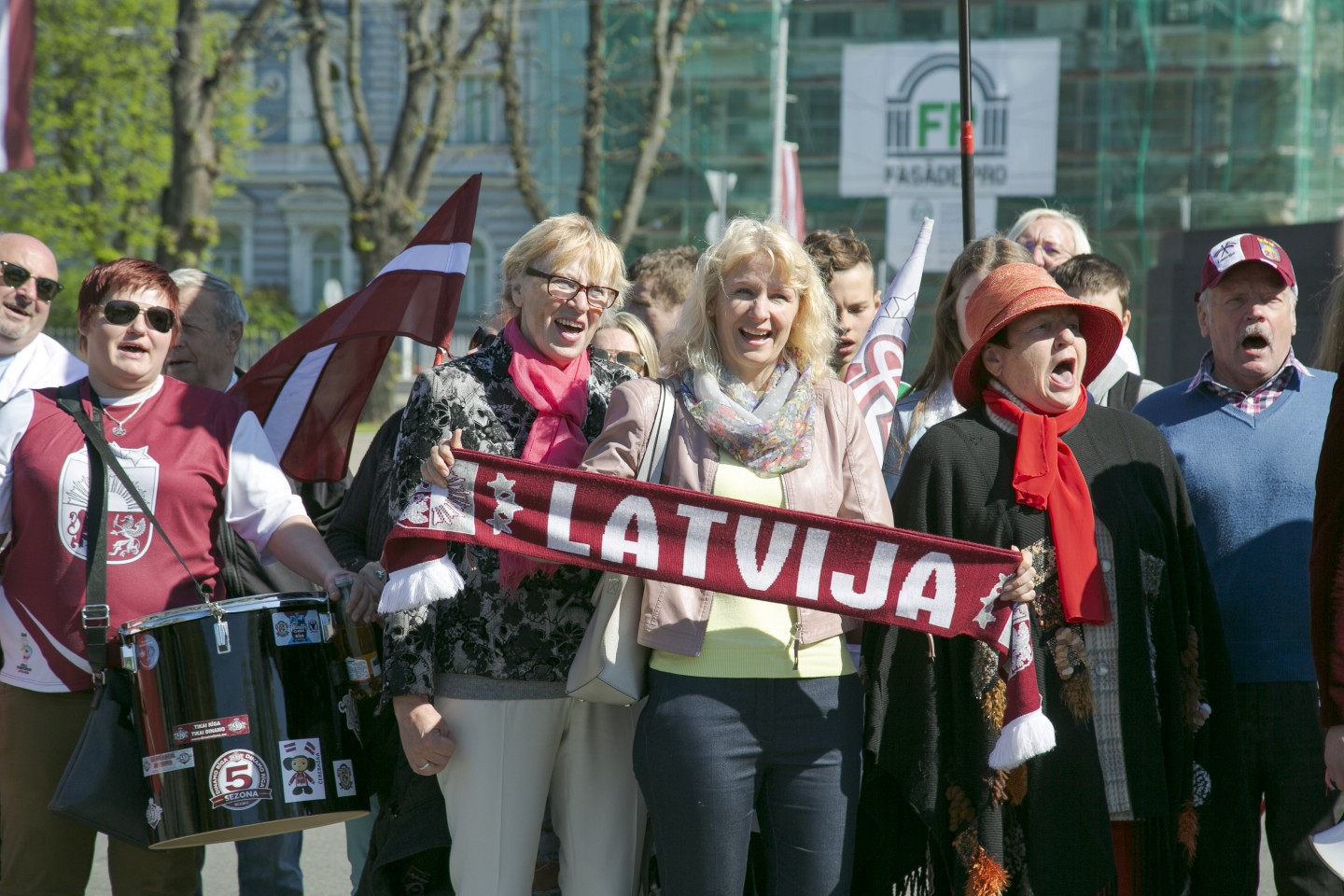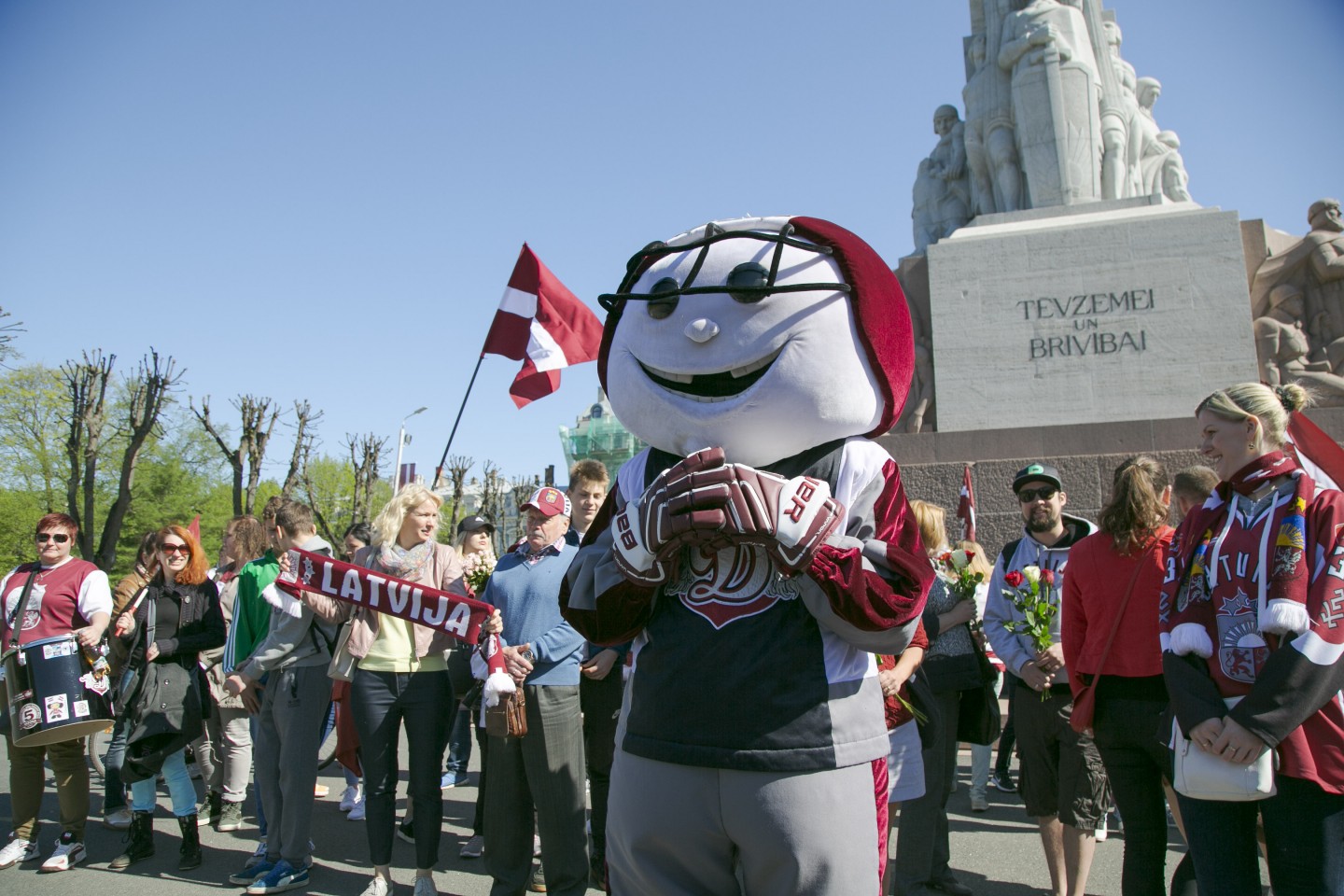 Sestdien pie Brīvības pieminekļa notika zibakcija - Latvijas himnas kopdziedāšana, tādējādi dāvājot enerģiju Latvijai simtgadē un Latvijas hokeja izlasei veiksmīgam startam Pasaules hokeja čempionātā.