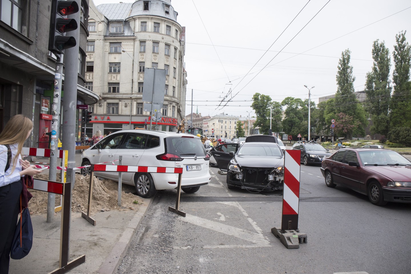 Otrdien, 22.maijā, uz Brīvības un Matīsa ielu krustojuma notikusi avārija. Viena no automašīnām rezultātā iebraukusi blakus joslā notiekošajos ielu remontdarbos.