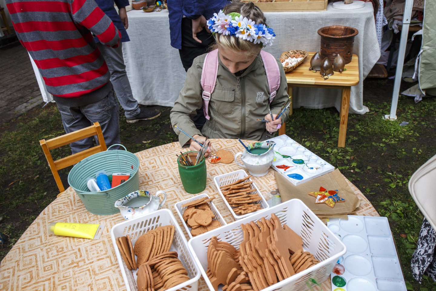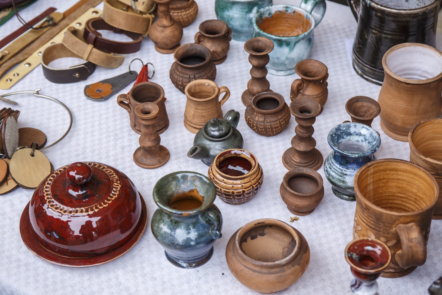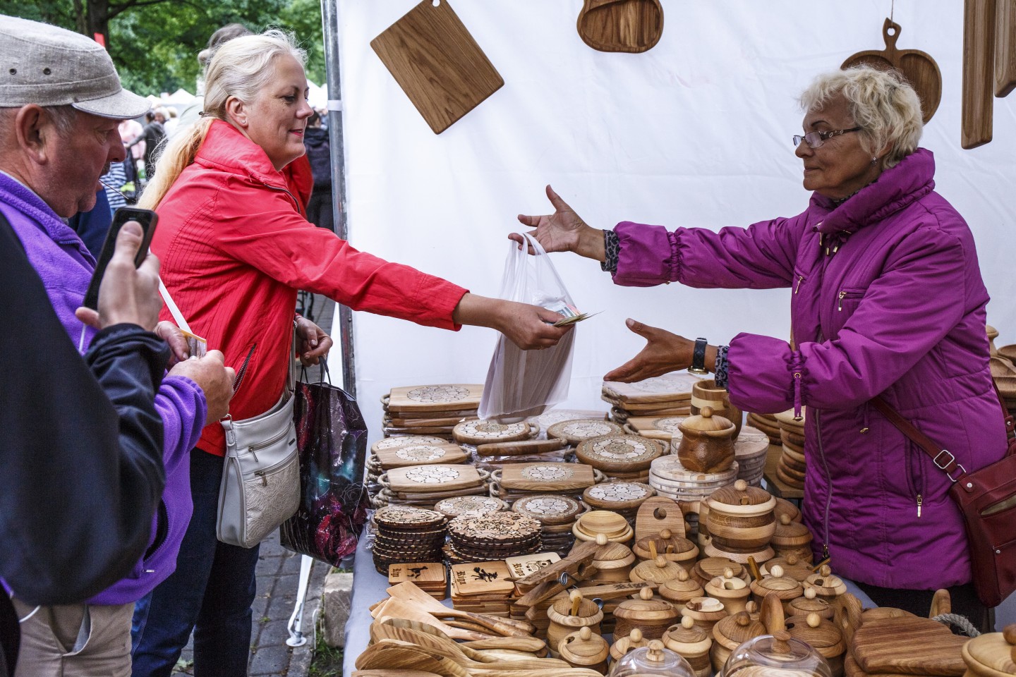 Pīti grozi, māla trauki, tautastērpi- visas šīs lietas svētku laikā atrodamas amatnieku tirgū Vērmanes dārzā.