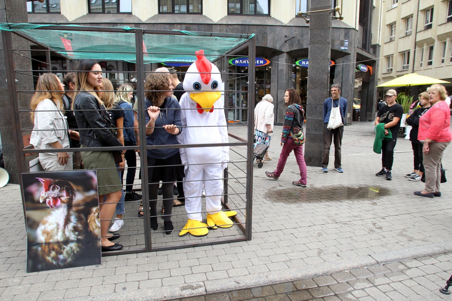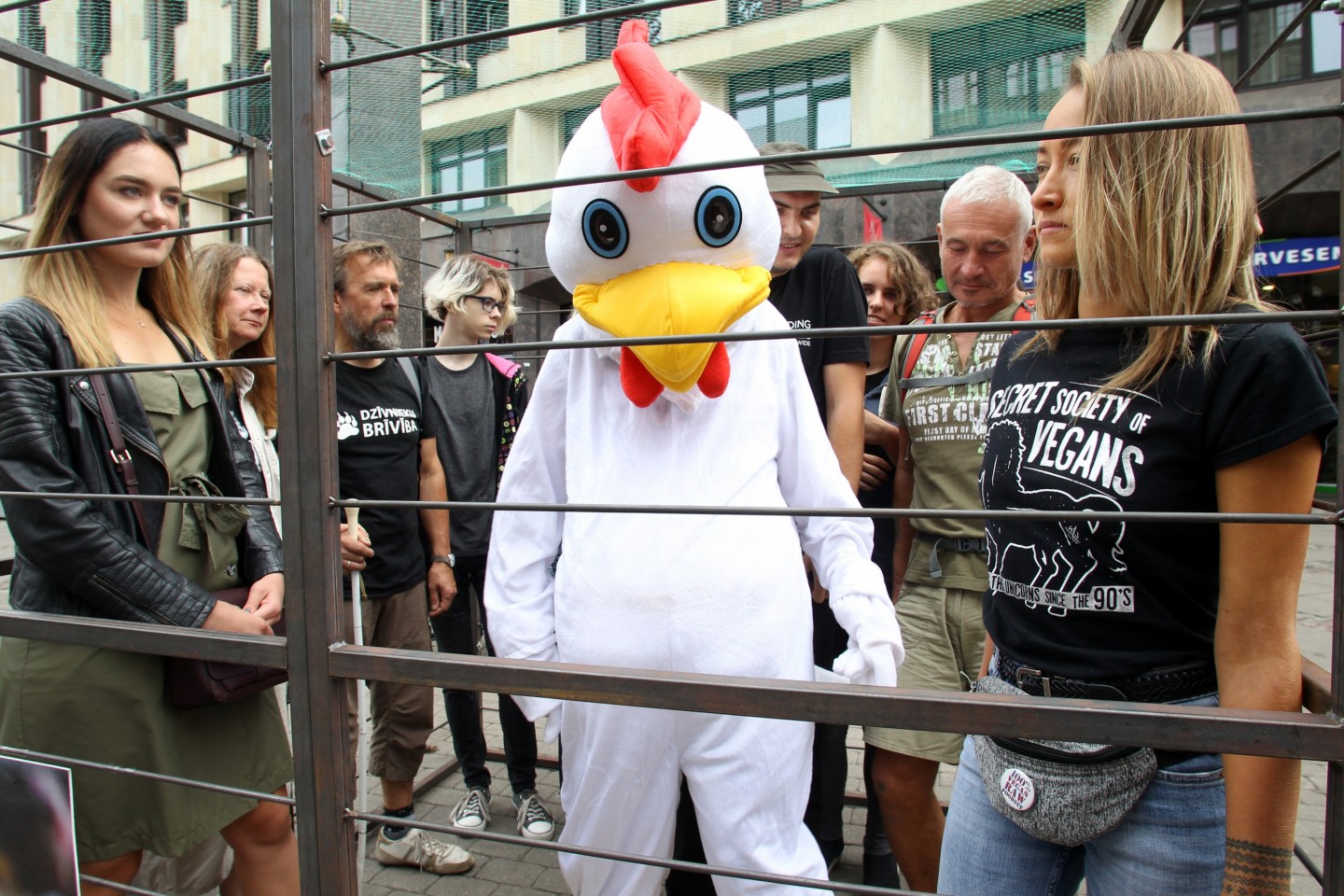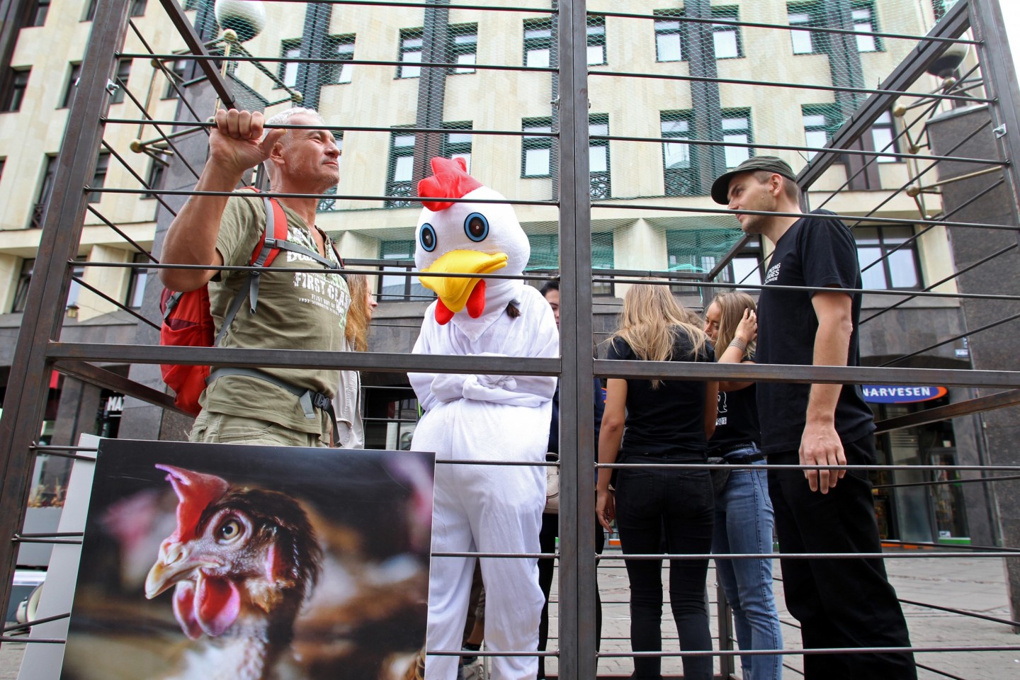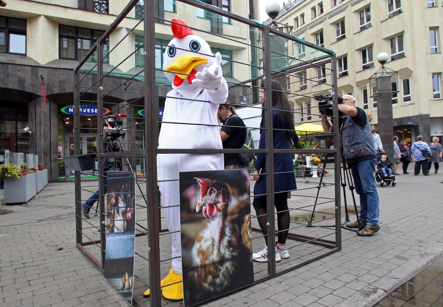 Šodien, 20. augustā, Vecrīgā tika atklāta mākslas instalācija un dzīvnieku aizstāvības akcija "NR. 3", ko rīko dzīvnieku aizstāvības biedrība "Dzīvnieku brīvība". Akcijas "NR. 3" apmeklētājiem bija iespēja ieiet cilvēka izmēra sprostā, iejusties vistas ādā un uzzināt vairāk par industriālo lopkopību un dzīvnieku aizstāvību. Akcija tika rīkota, lai izglītotu sabiedrību par problēmām, kas saistās ar dējējvistu turēšanu sprostos. Dējējvistu turēšanas apstākļus norāda pirmais cipars uz olas uzdrukātajā kodā: "0" nozīmē bioloģisko saimniecību; "1" - brīvās turēšanas apstākļus; "2" - turēšanu kūtī, savukārt sprostu apzīmē "3"."Dzīvnieku brīvība" ir dzīvnieku aizstāvības organizācija, kas dibināta 2012. gadā un ietilpst starptautiskajā aliansē "Open Wing Alliance", kas strādā, lai izbeigtu vistu turēšanu sprostos visā pasaulē.