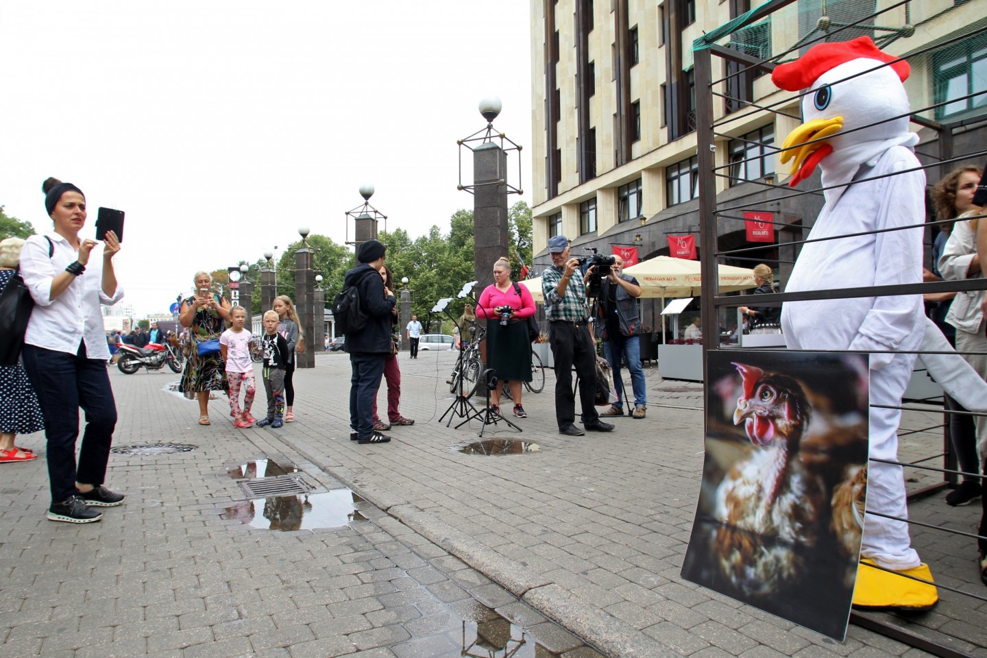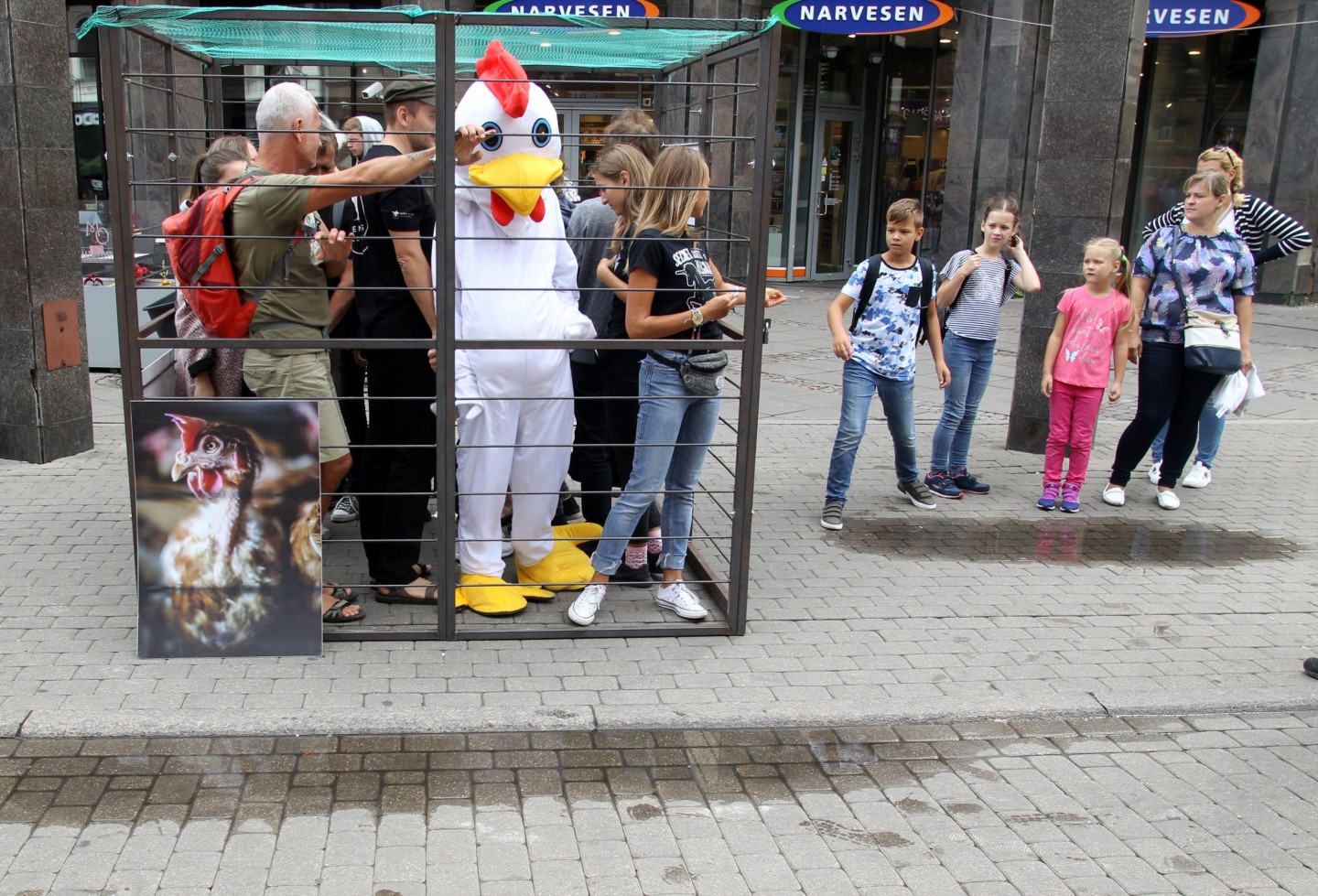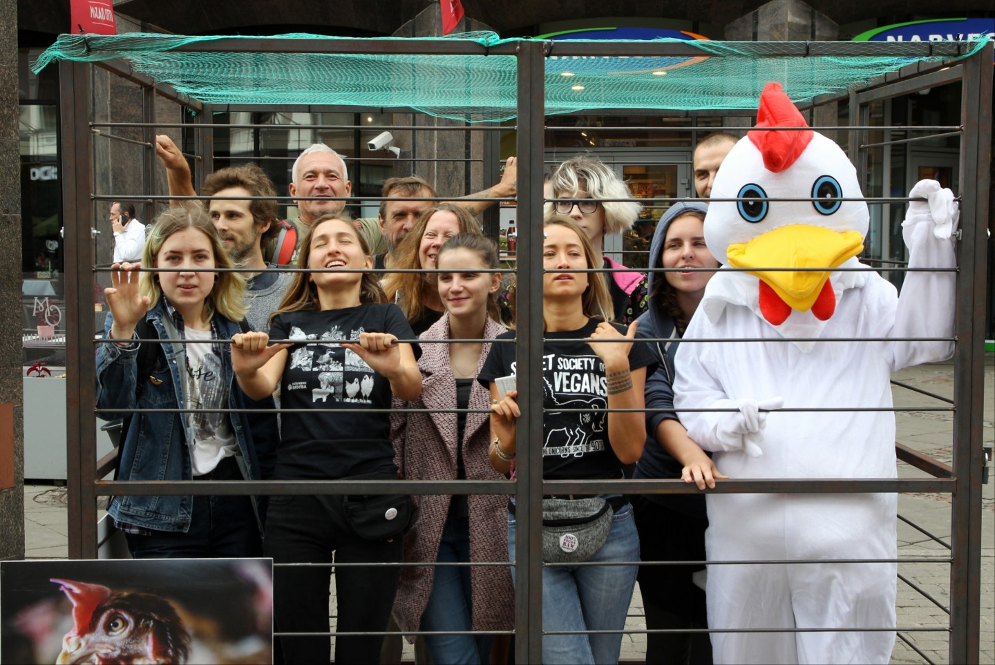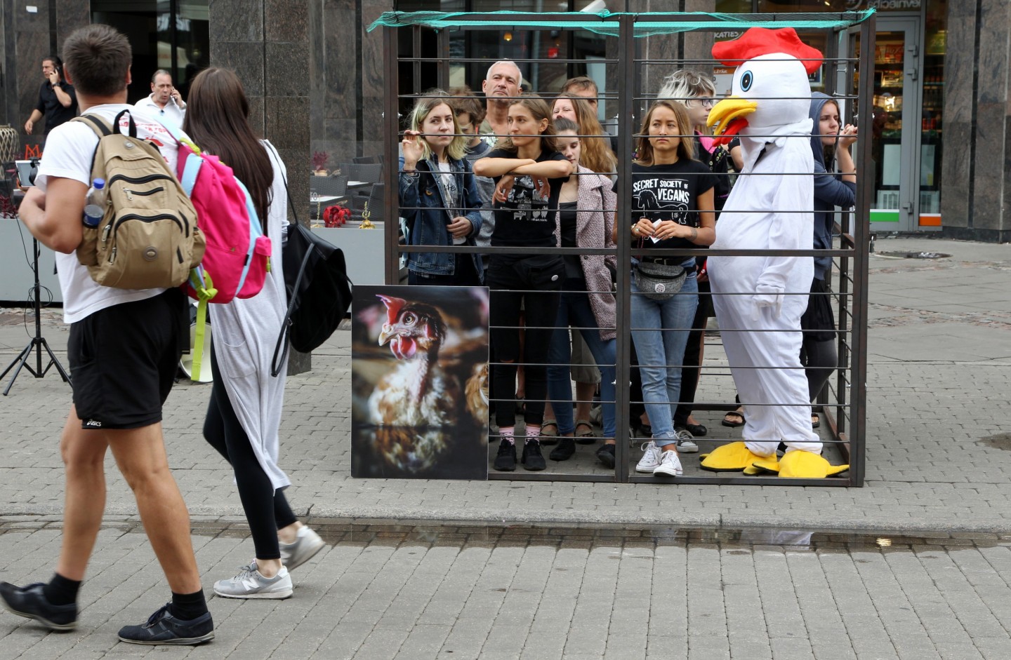 Šodien, 20. augustā, Vecrīgā tika atklāta mākslas instalācija un dzīvnieku aizstāvības akcija "NR. 3", ko rīko dzīvnieku aizstāvības biedrība "Dzīvnieku brīvība". Akcijas "NR. 3" apmeklētājiem bija iespēja ieiet cilvēka izmēra sprostā, iejusties vistas ādā un uzzināt vairāk par industriālo lopkopību un dzīvnieku aizstāvību. Akcija tika rīkota, lai izglītotu sabiedrību par problēmām, kas saistās ar dējējvistu turēšanu sprostos. Dējējvistu turēšanas apstākļus norāda pirmais cipars uz olas uzdrukātajā kodā: "0" nozīmē bioloģisko saimniecību; "1" - brīvās turēšanas apstākļus; "2" - turēšanu kūtī, savukārt sprostu apzīmē "3"."Dzīvnieku brīvība" ir dzīvnieku aizstāvības organizācija, kas dibināta 2012. gadā un ietilpst starptautiskajā aliansē "Open Wing Alliance", kas strādā, lai izbeigtu vistu turēšanu sprostos visā pasaulē.