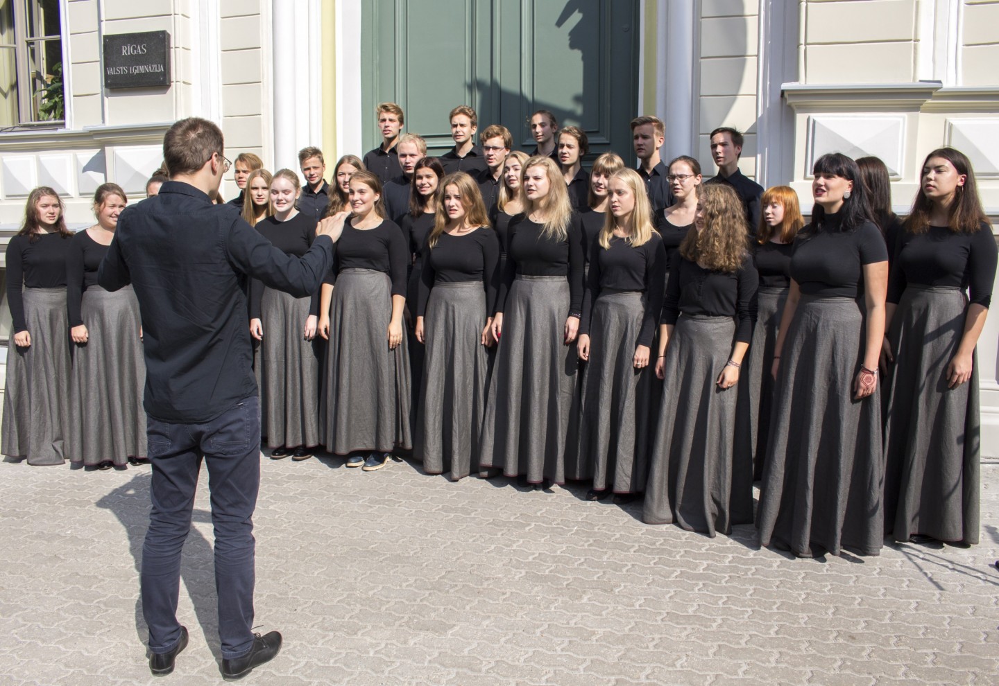 Svinīgi atklāj Rīgas Valsts 1. ģimnāzijas atjaunoto fasādi
