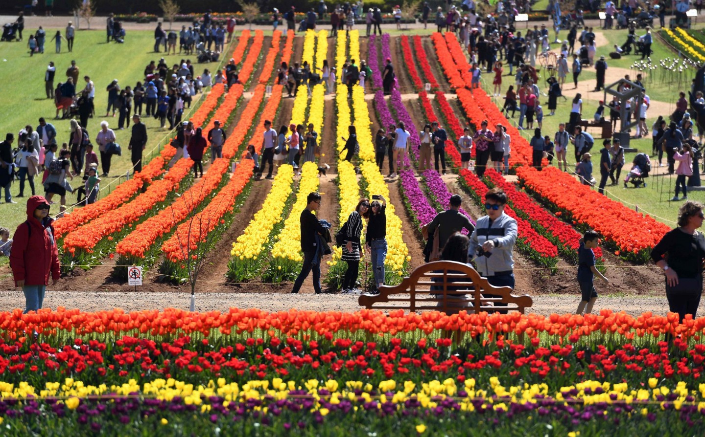 Tulpju festivāls Melburnā. Šogad esot uzziedējušas aptuveni 900 000 tulpju.