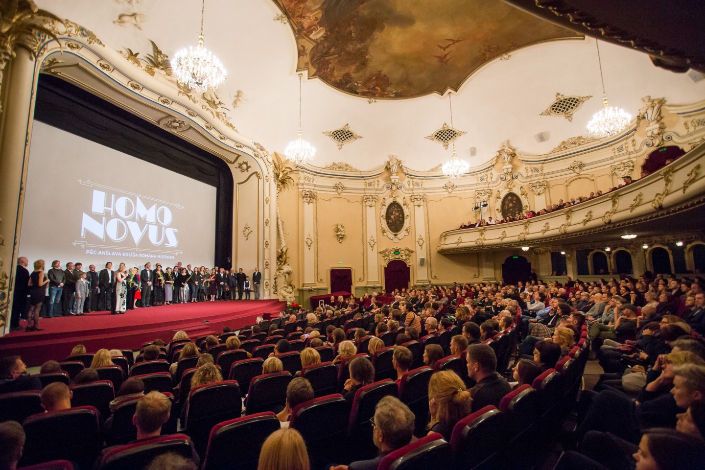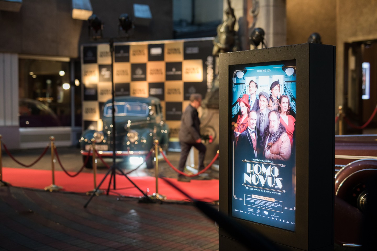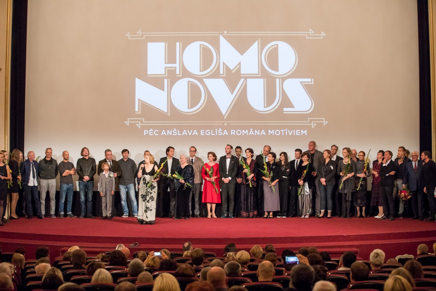 Trešdien, 26.septembrī, pulcējot filmas kolorīto aktieru sastāvu, komandu un sabiedrības krējumu, pirmizrādi piedzīvoja latviešu spēlfilma “Homo Novus”. Pasākumā atdzīvojās 30.gadu bohēma, to laiku greznums un elegance. Romantisko intrigu un pārpratumu komēdiju, jau sākot no 28.septembra, varēs vērot Latvijas kinoteātros. “Homo Novus” skatītājus neatstāj vienaldzīgus, apburot ar intriģējošo sižetu, spilgtiem tēliem un, protams, izcilu māksliniecisku izpildījumu un muzikālo pavadījumu. Pēc filmas preses seansa apmeklējuma latviešu publicists Ilmārs Šlāpins padalījās savā “Facebook” kontā ar iespaidiem: “Man šodien izdevās noskatīties filmu “Homo Novus”, kaut kas jāpasaka, pirms esmu dzirdējis vai lasījis citu viedokli. Pirmkārt, nebija līdzīga kaut kam, ko varēja gaidīt, nu, tas ir, nevis bija dīvaina, bet vienkārši mazliet savādāka par citām filmām. Ievilka pamazām un ievilka nevis ar humoru vai Paula mūziku, bet ar smalku un aizkustinošu mākslinieka dvēseles skatījumu. Nav daudz tādu filmu arī pasaules kinematogrāfijā, kur ir parādītas mākslinieka attiecības ar mākslu, turklāt nevis viena, centrālā personāža izpausmē, bet vismaz piecu atšķirīgu “attiecību ar mākslu” gadījumos. Vispār, sagribējās mest visu pie malas un meklēt rokā otas un krāsas. Nu, vai vismaz pāršķirstīt latviešu mākslinieku albumus. Esmu priecīgs par šādu filmu”. “Esmu absolūtā sajūsmā par Annas Vidulejas jauno filmu “Homo Novus”! Brīnišķīgi tverta gaisotne, 30.gadu stils, kolosāla aktierspēle – īstas pērles(!), labs humors, burvīgi atbilstoša mūzika… Domāju, ka Anšlāvam Eglītim patiktu,” ar saviem iespaidiem privātajā “Twitter” kontā dalās žurnāliste un TV personība Una Griškeviča. Spēlfilmas scenāriste un režisore ir Anna Viduleja, kura jau sen loloja ideju par Anšlava Eglīša romāna ekranizāciju. „Homo Novus” galvenajā lomā debitē jaunais aktieris Igors Šelegovskis, lomās ir Kristīne Krūze, Kaspars Znotiņš, Andris Keišs, Kaspars Zvīgulis, Aurēlija Anužīte-Lauciņa, Agnese Cīrule, Nikolajs Korobovs, Vilis Daudziņš, Baiba Broka, Guna Zariņa, Gundars Āboliņš, Regīna Razuma, Ģirts Krūmiņš, Ģirts Ēcis un citi. Komēdijā filmējušās arī citas sabiedrībā pazīstamas personas, piemēram, Kaspars Kambala, Intars Busulis un Andrejs Žagars. Filmas veidotāju vidū ir arī operators Jānis Eglītis, galvenais mākslinieks Kirils Šuvalovs (Krievija), scenārija līdzautore Maurīna Tomasa (Apvienotā Karaliste), producenti Ivo Ceplevičs, Jānis Kalējs un Sergejs Berdičevskis. Spēlfilmu „Homo Novus” finansiāli atbalsta Nacionālais kino centrs, Valsts kultūrkapitāla fonds un tirdzniecības centrs „Galerija Centrs”. Filmas pirmizrādi atbalsta Medicīnas sabiedrība “ARS” un AS “Latvijas Balzams”, kā pasākuma oficiālo dzērienu nodrošinot Latvijā radīto dzirkstošo vīnu “Rīgas Prestige Cuvee”. Filma top studijā „Film Angels Productions”, un tās tapšanā palīdzību un atbalstu sniedz „BBrental”, SDG, „Vairāk saules”, Latvijas Nacionālais mākslas muzejs, Latvijas Mākslas akadēmija, Latvijas Antīko automobiļu klubs, Rīgas Motormuzejs, „Latvijas Mobilais telefons”, Ģ. Eliasa Jelgavas Vēstures un mākslas muzejs, „Valsts nekustamie īpašumi”, „Altum”, SIA „Vaļņu nams 11”, Rīgas Valsts 1. ģimnāzija, Rīgas Valsts 2. ģimnāzija, „iDeal”, Liepājas Valsts 1. ģimnāzija, Draudzīgā aicinājuma Liepājas pilsētas 5. vidusskola, „Latvijas dzelzceļš”, Latvijas Nacionālā opera un balets, LU Botāniskais dārzs, Astrīde Peka-Skulme, Stīna Skulme-Balode un citi. Filmas izplatītājs Latvijā ir uzņēmums „ACME Film”.