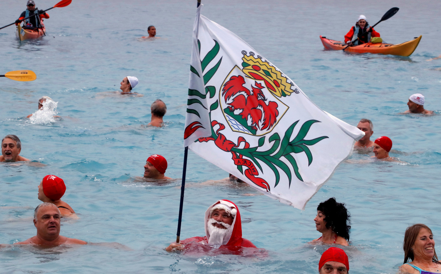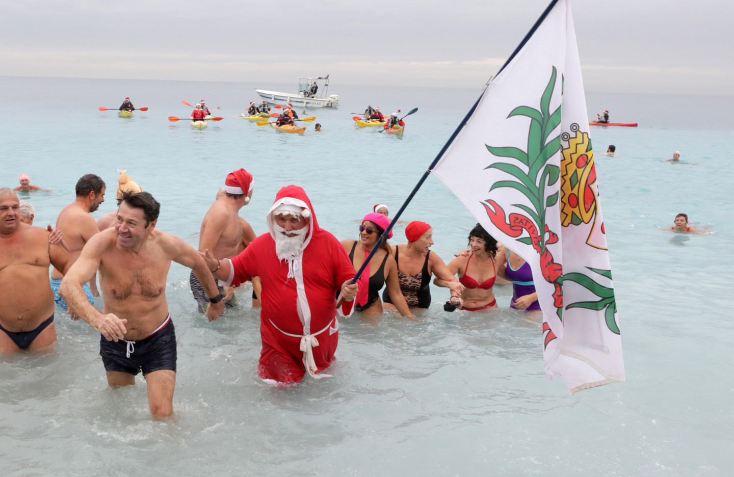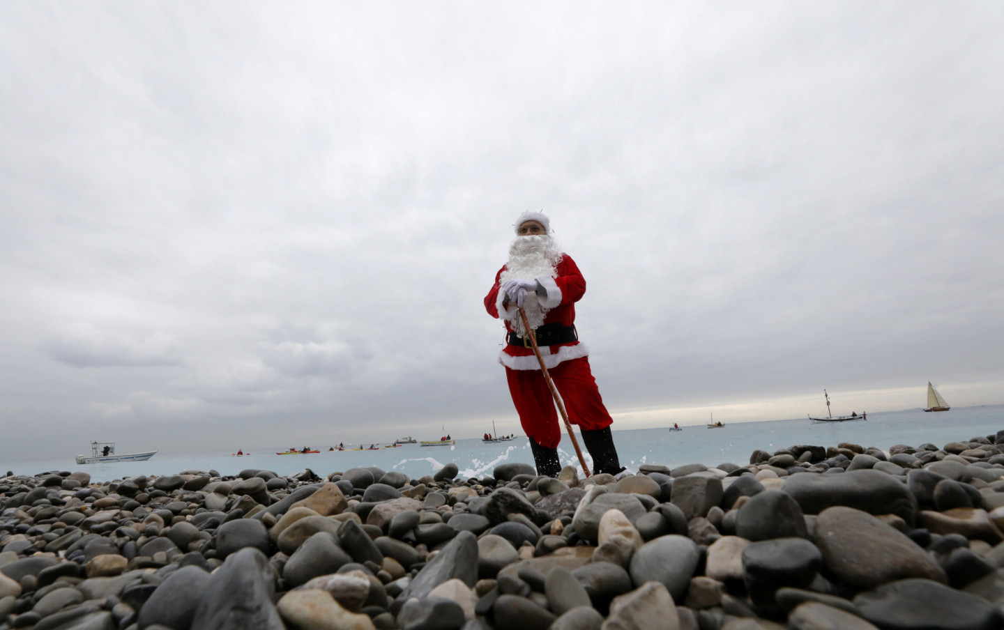 Farncijā, Nīcā tardicionāli vīrietis, kas pārģērbies par Ziemassvētku vecīti, devies izpeldēties.
