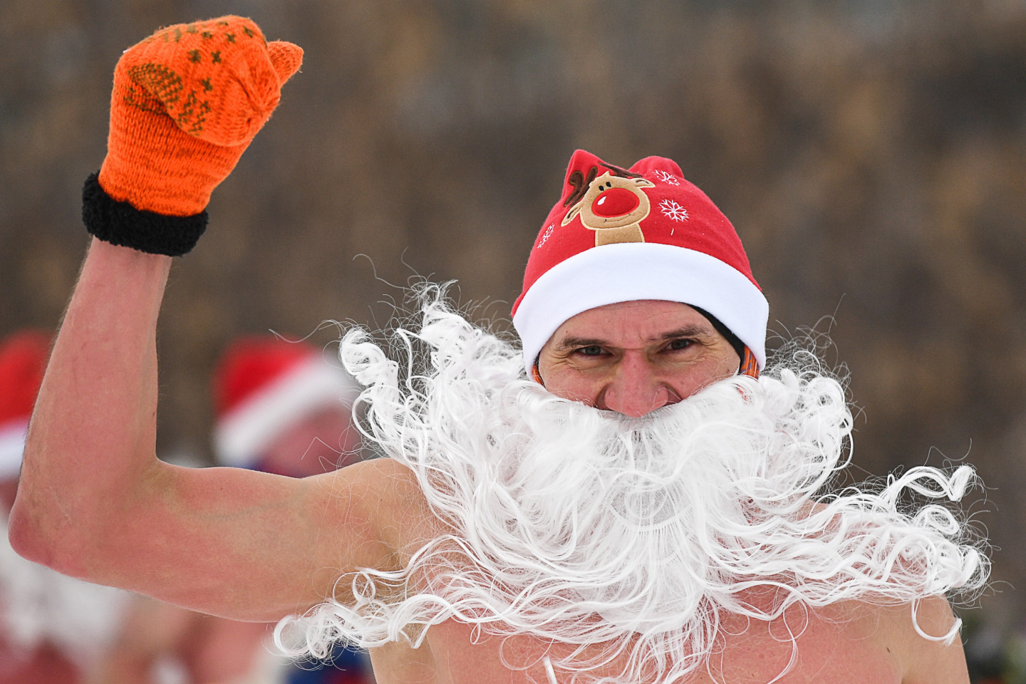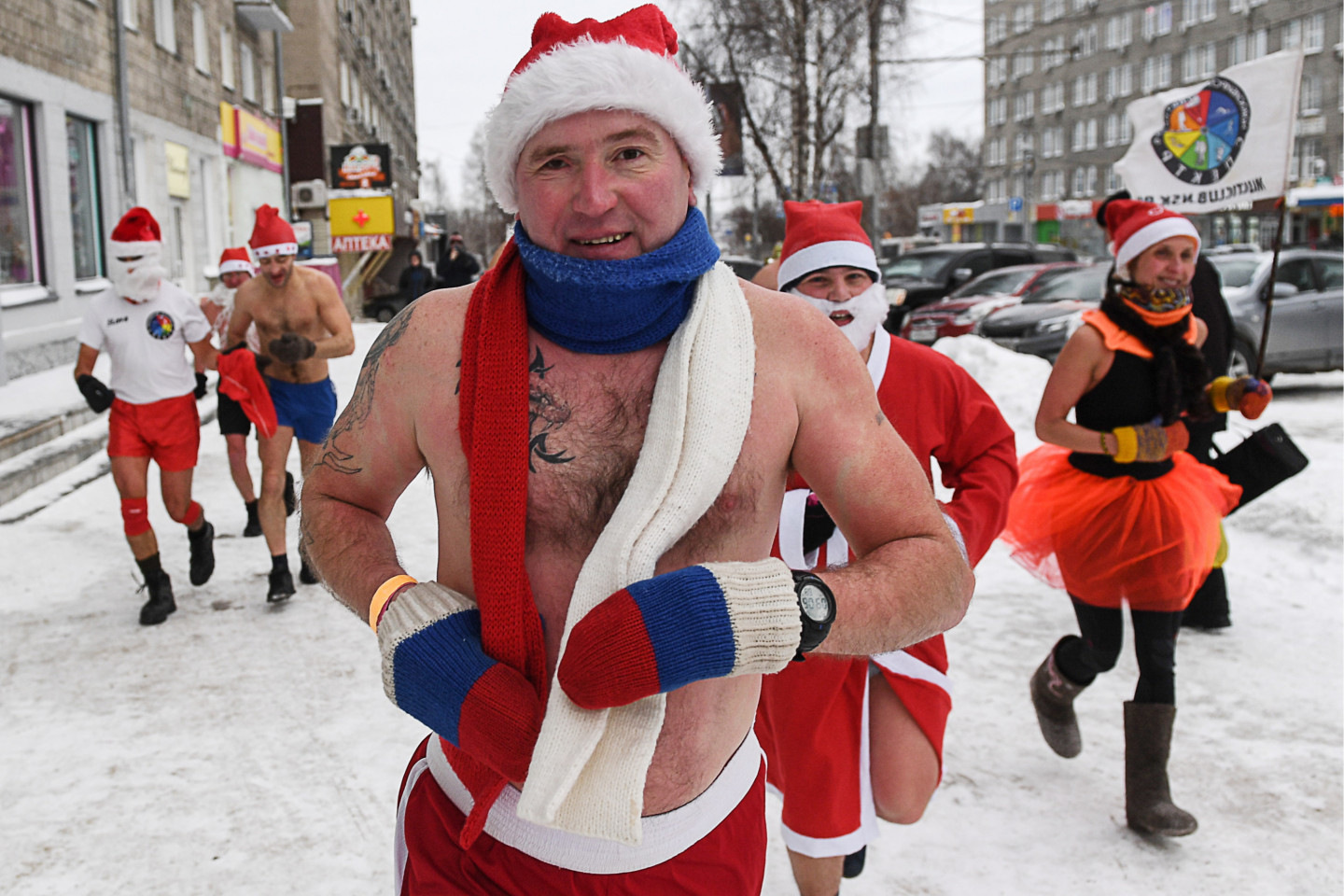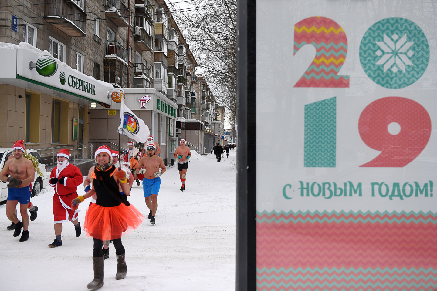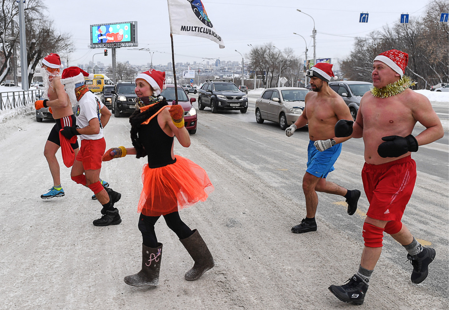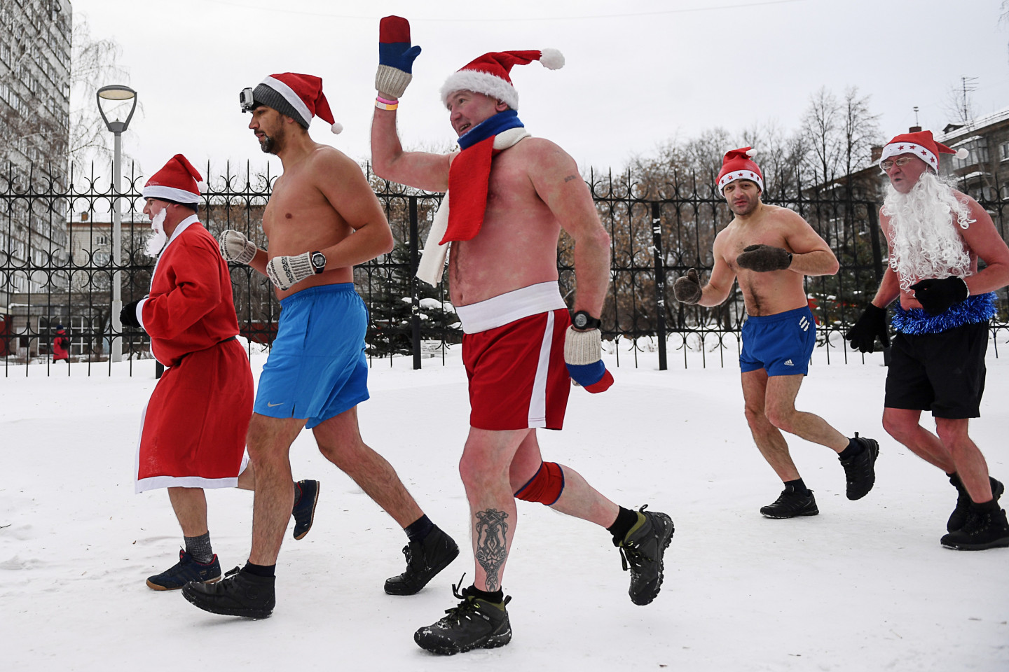 Krievijas pilsētā Novosibirskā vietējā ziemas peldēšanas kluba dalībnieki sarīkojuši skrējienu, kurā bija tērpušies peldšortos un Ziemassvētku vecīša cepurēs.