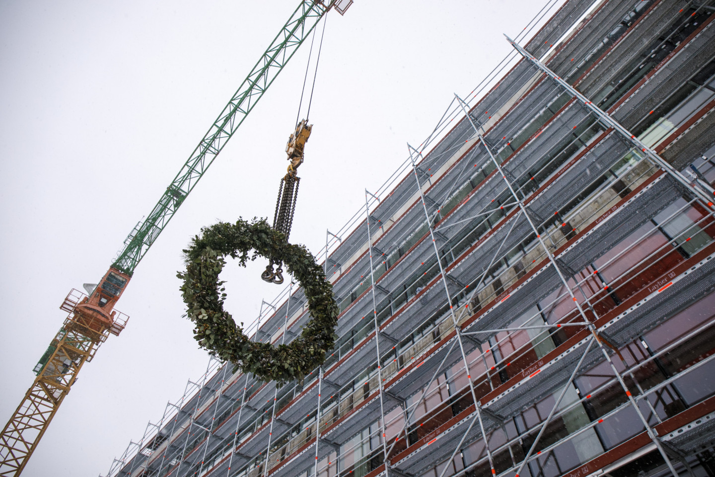 Tirdzniecības parka "Alfa" jaunās piebūves spāru svētki