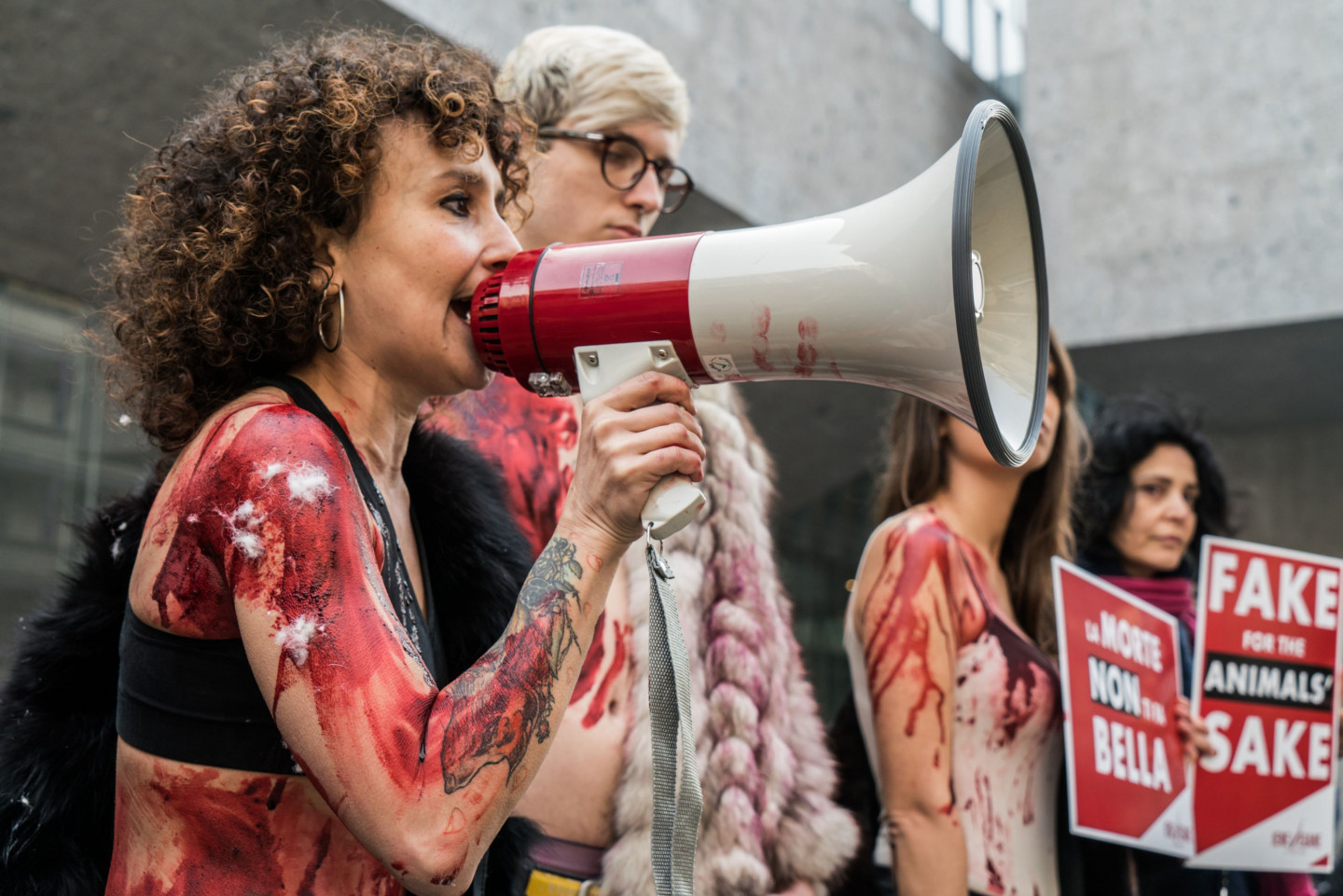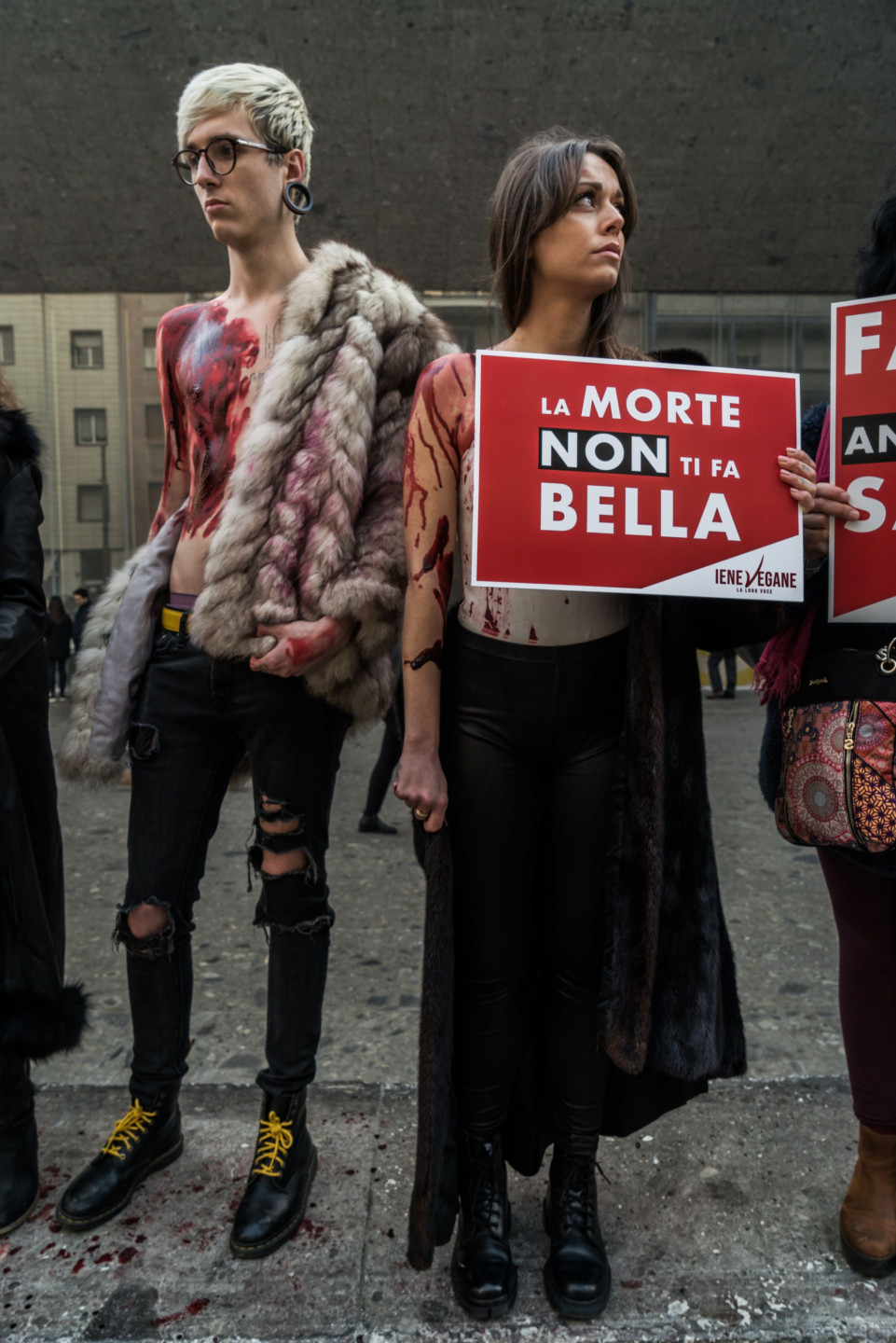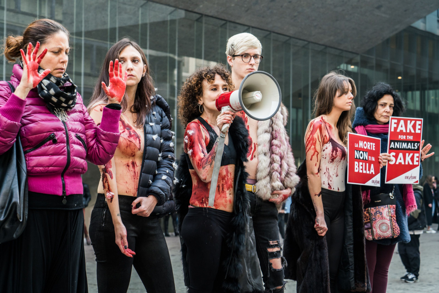 Itālijā, Milānā, zīmola "Max Mara" modes skates laikā noticis protests pret kažokādu izmantošanu apģērba ražošanā.