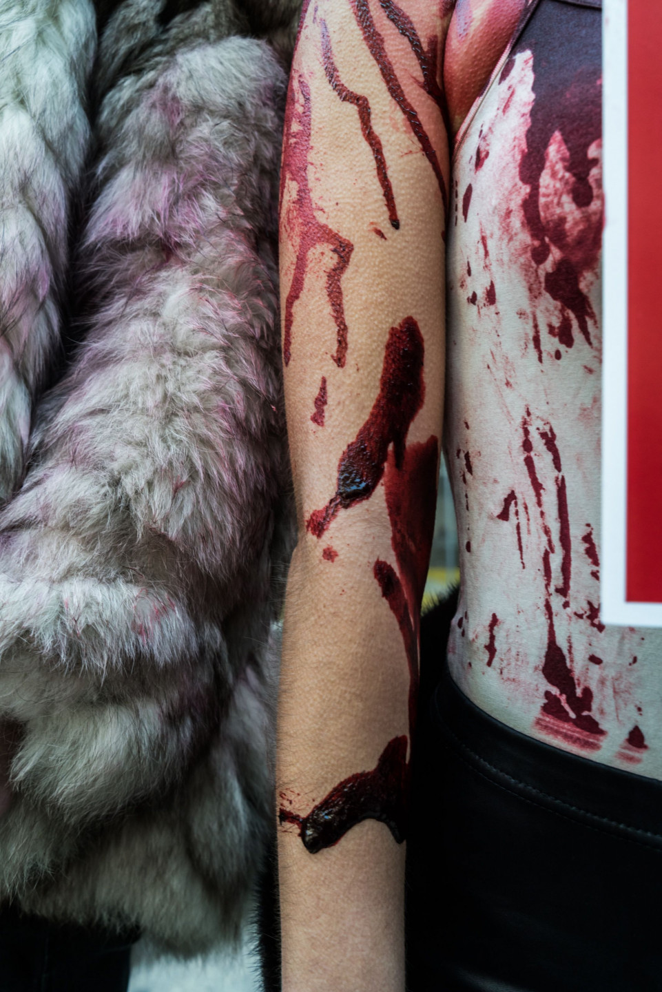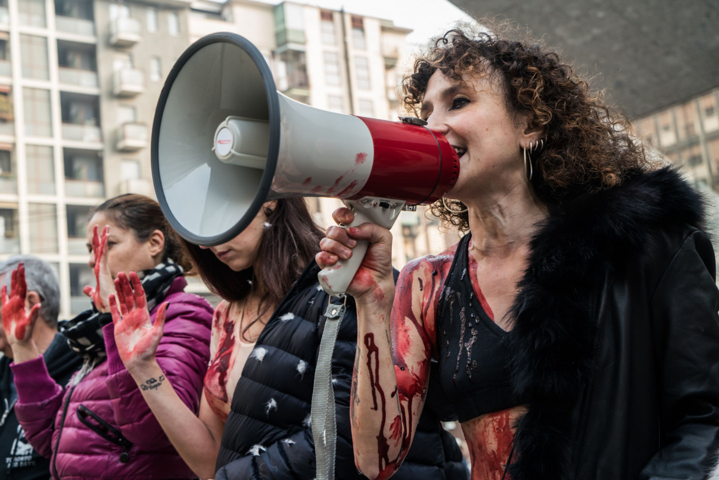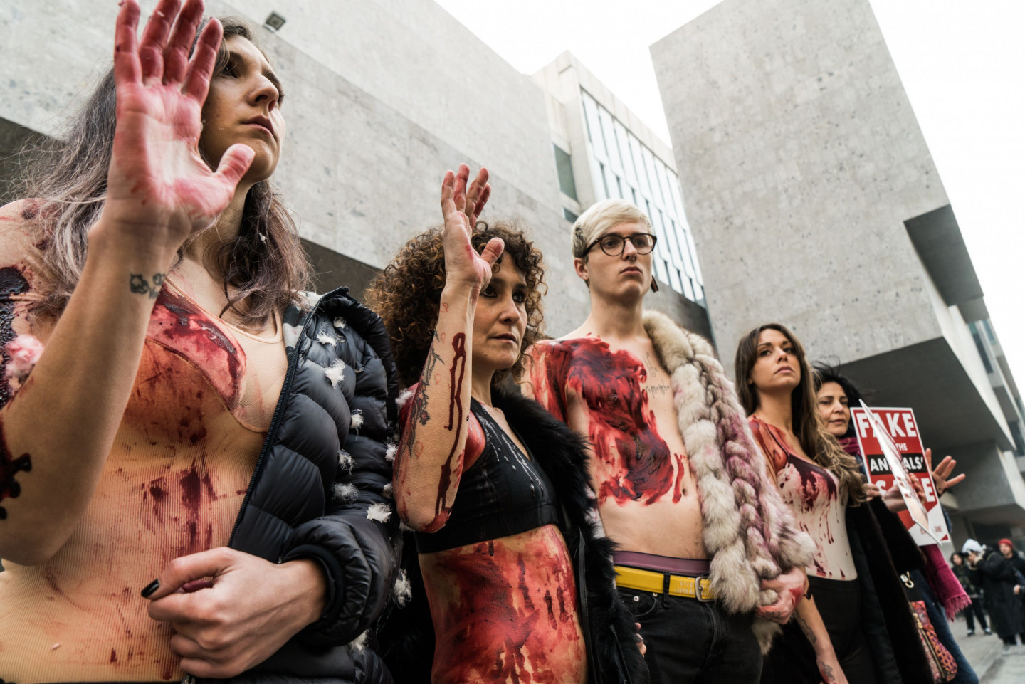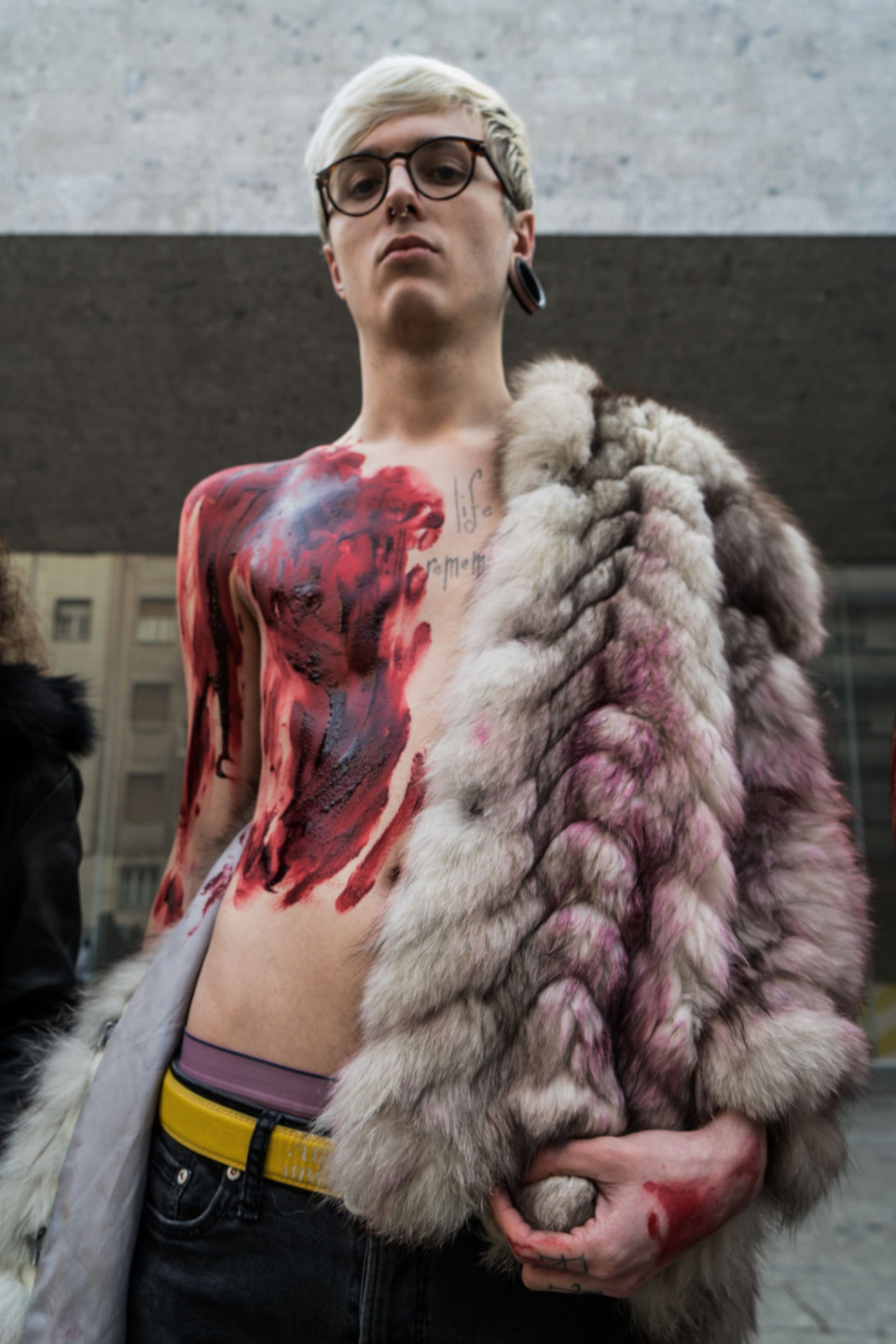 Itālijā, Milānā, zīmola "Max Mara" modes skates laikā noticis protests pret kažokādu izmantošanu apģērba ražošanā.