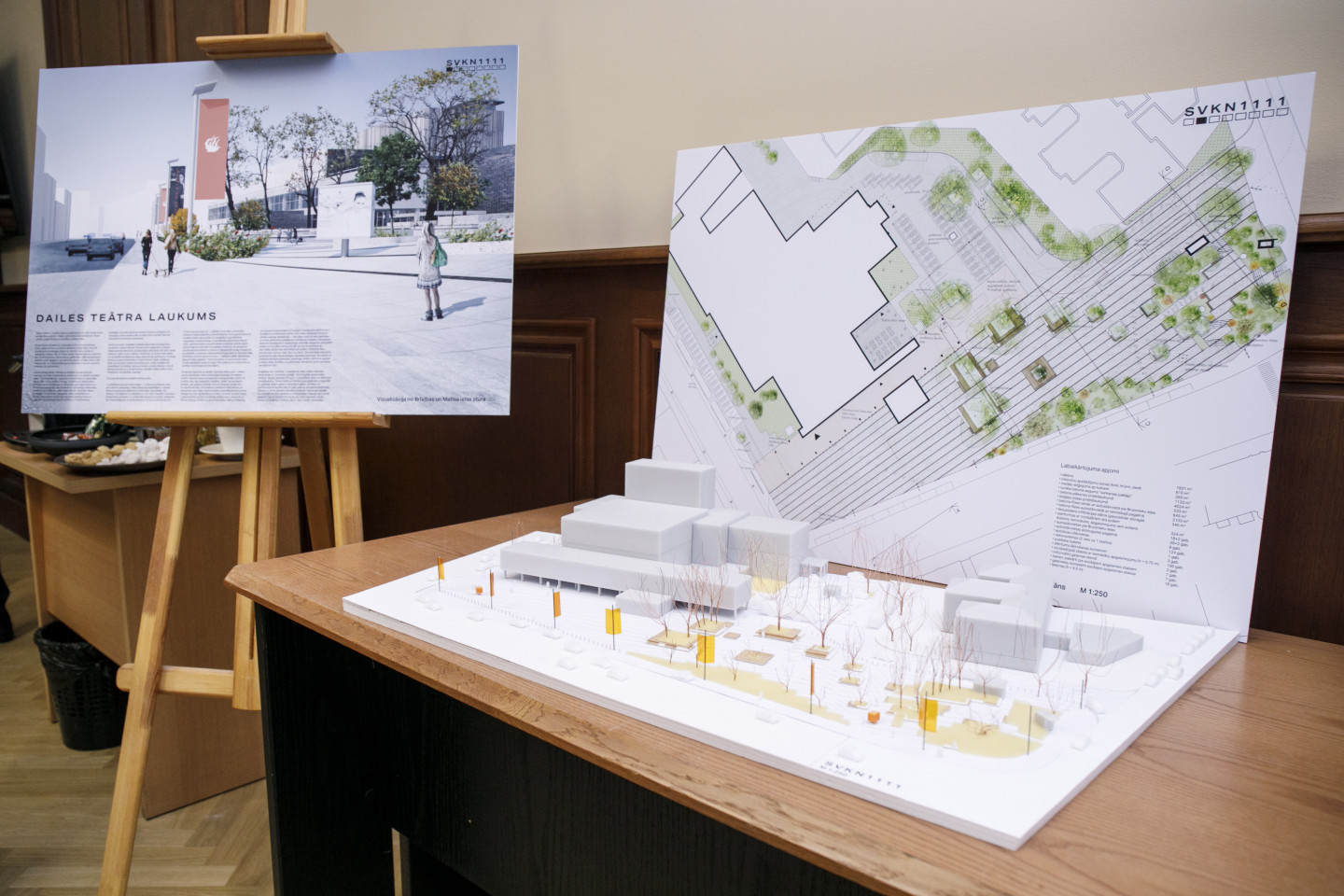 Šodien tika paziņoti Dailes teātra teritorijas labiekārtojuma metu konkursa rezultāti. Konkursa žūrija Dailes teātra teritorijas labiekārtošanai vienbalsīgi izvēlējusies arhitektūras projektēšanas uzņēmuma SIA "Made arhitekti" iesniegto metu, taču vēl gaidāmas diskusijas par projekta izmaksām un realizēšanas laiku. Uzņēmuma valdes locekle, arhitekte Linda Krūmiņa aģentūrai LETA stāstīja, ka meta projektā respektēti līdzšinējie teritorijas elementi, kurus projektējusi Marta Staņa. Tajā pašā laikā mets izstrādāts, ņemot vērā personu ar īpašām vajadzībām, velosipēdistu un jauno māmiņu intereses - laukuma segums tiks pilnībā mainīts, simboliski atstājot Staņas projektētās ķieģeļu joslas, kas būs jārestaurē. Arhitekti izplānojuši priekšlaukumu, kas iedalīts divās daļās - Šarlotes ielai pietuvinātā zona projektēta ar apzaļumojumiem un soliem, savukārt no otra laukuma daļa projektēta bez apzaļumojumiem, vienlaikus likvidējot līdzšinējās autostāvvietas. Lai iegūtu arhitektoniski augstvērtīgu un funkcionāli pārdomātu Dailes teātra publiskās ārtelpas risinājumu, Rīgas domes Īpašuma departaments no 16.janvāra līdz 5.martam izsludināja metu konkursu. Visas teritorijas atjaunošanas darbus plānots realizēt līdz Dailes teātra 100.gadadienai - 2020.gada novembrim.