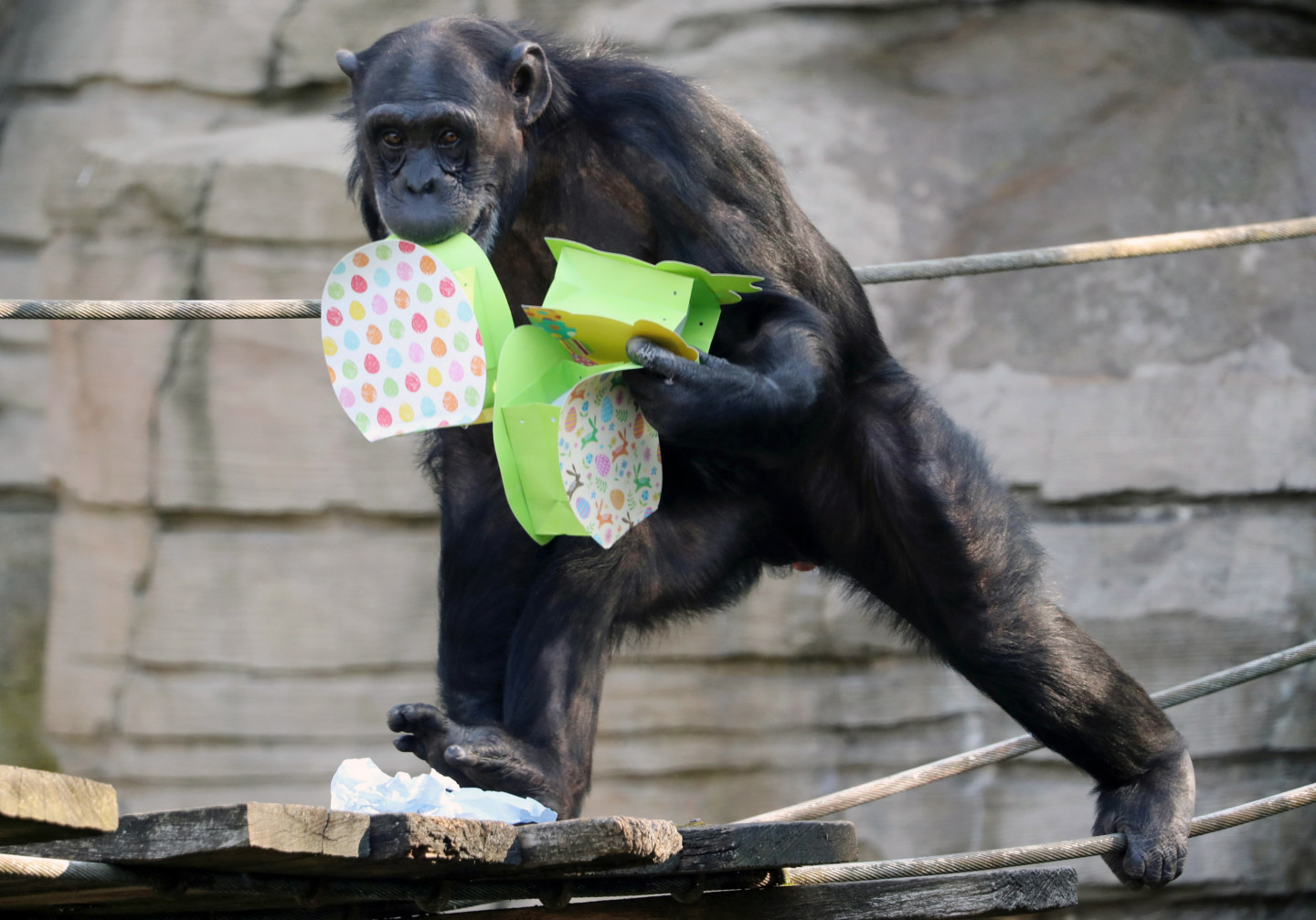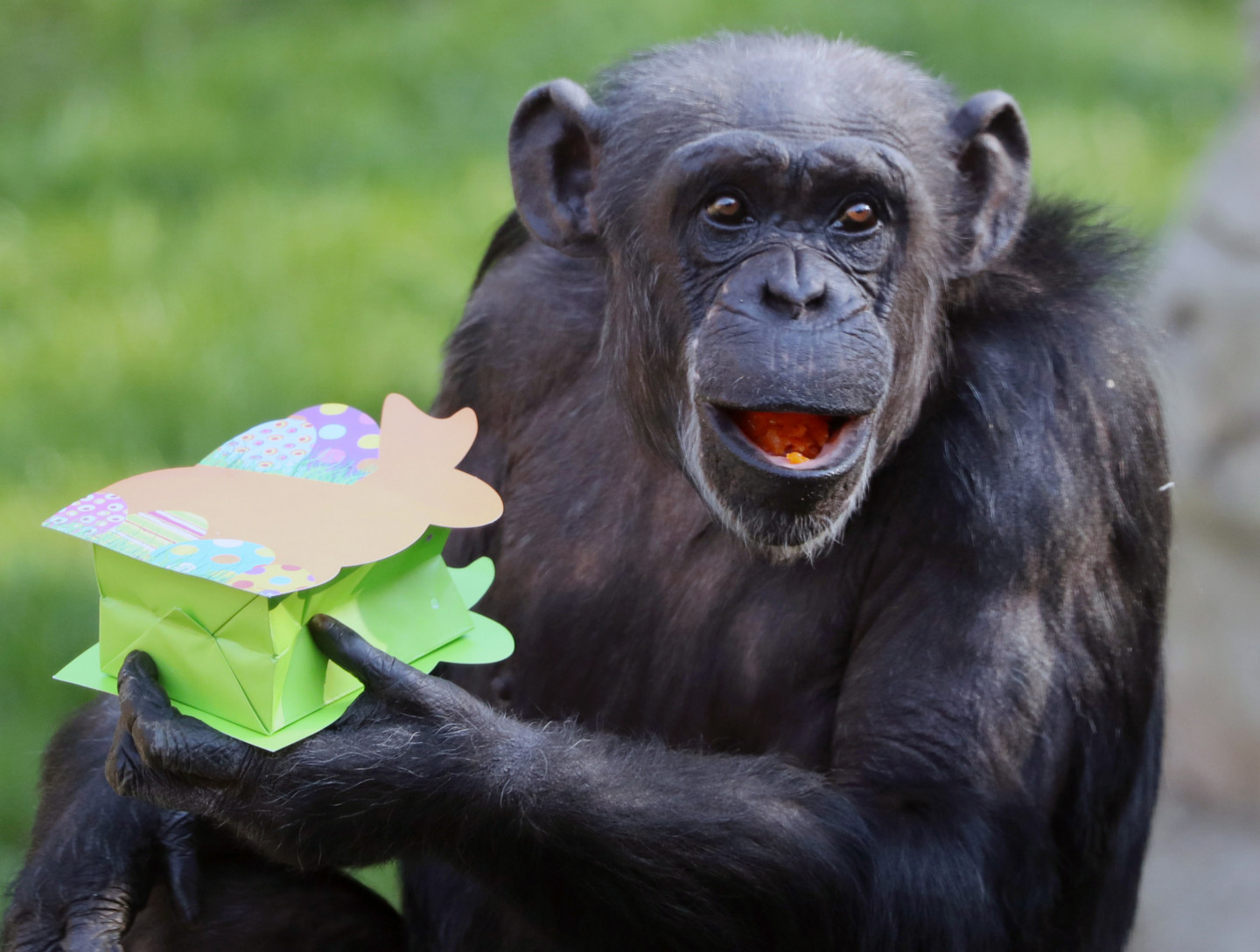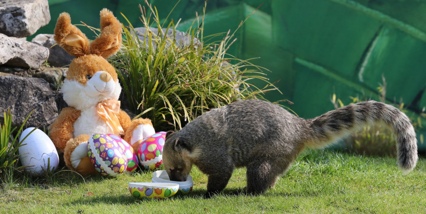 Dzīvnieki Vācijas zoodārzā saņem Lieldienu dāvanas