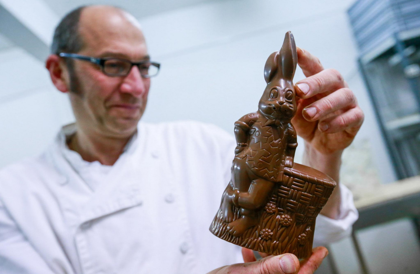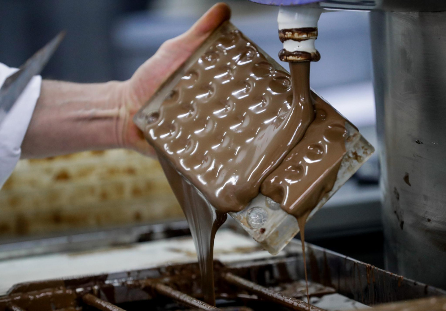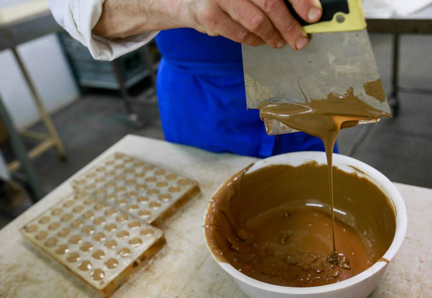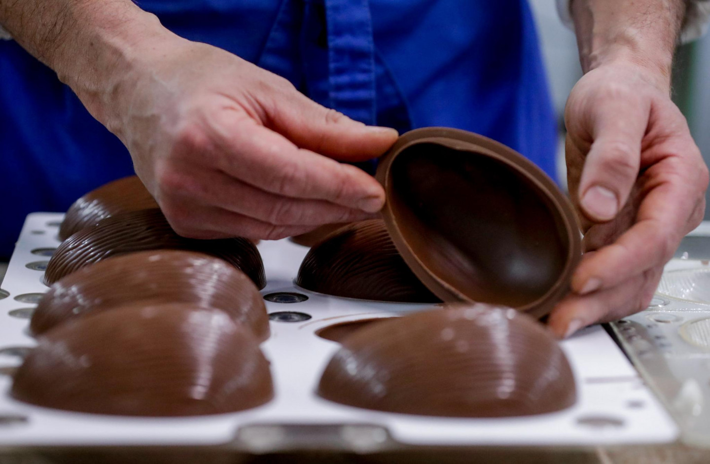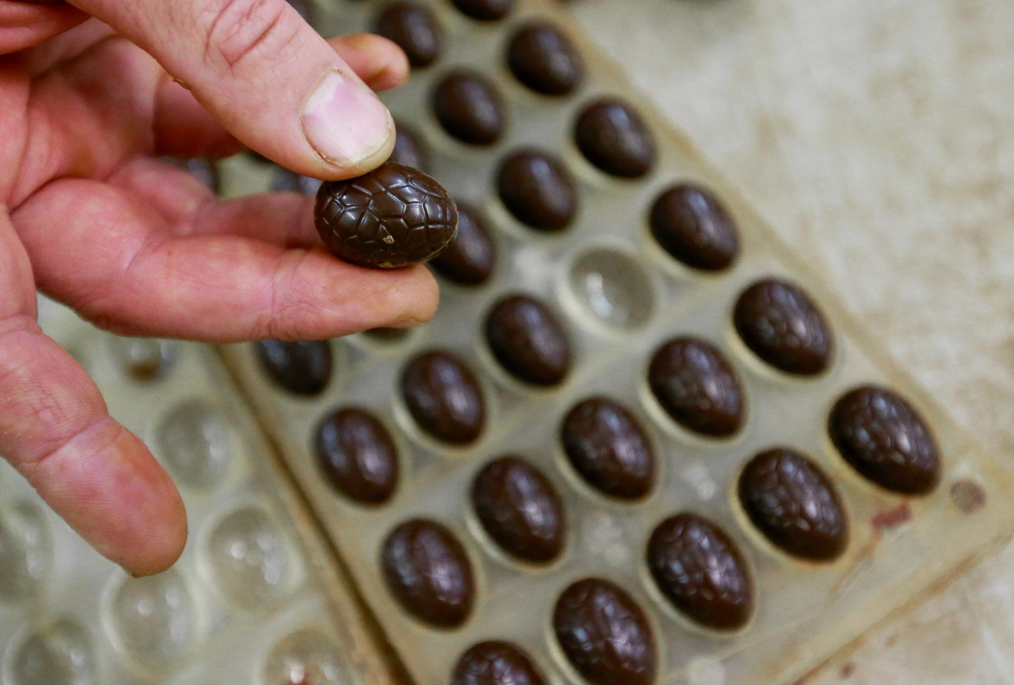 Beļgijā, netālu no Briseles, kādā šokolādes darbnīcā tiek izgatavoti Lieldienu saldumi no īstās beļģu šokolādes - dažādu izmēru olas, zaķi.