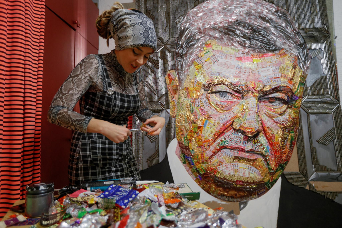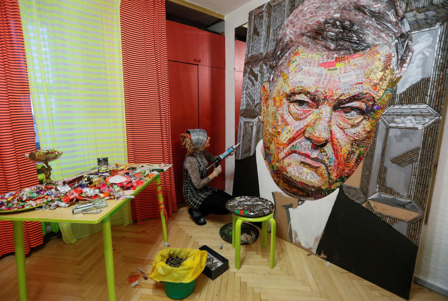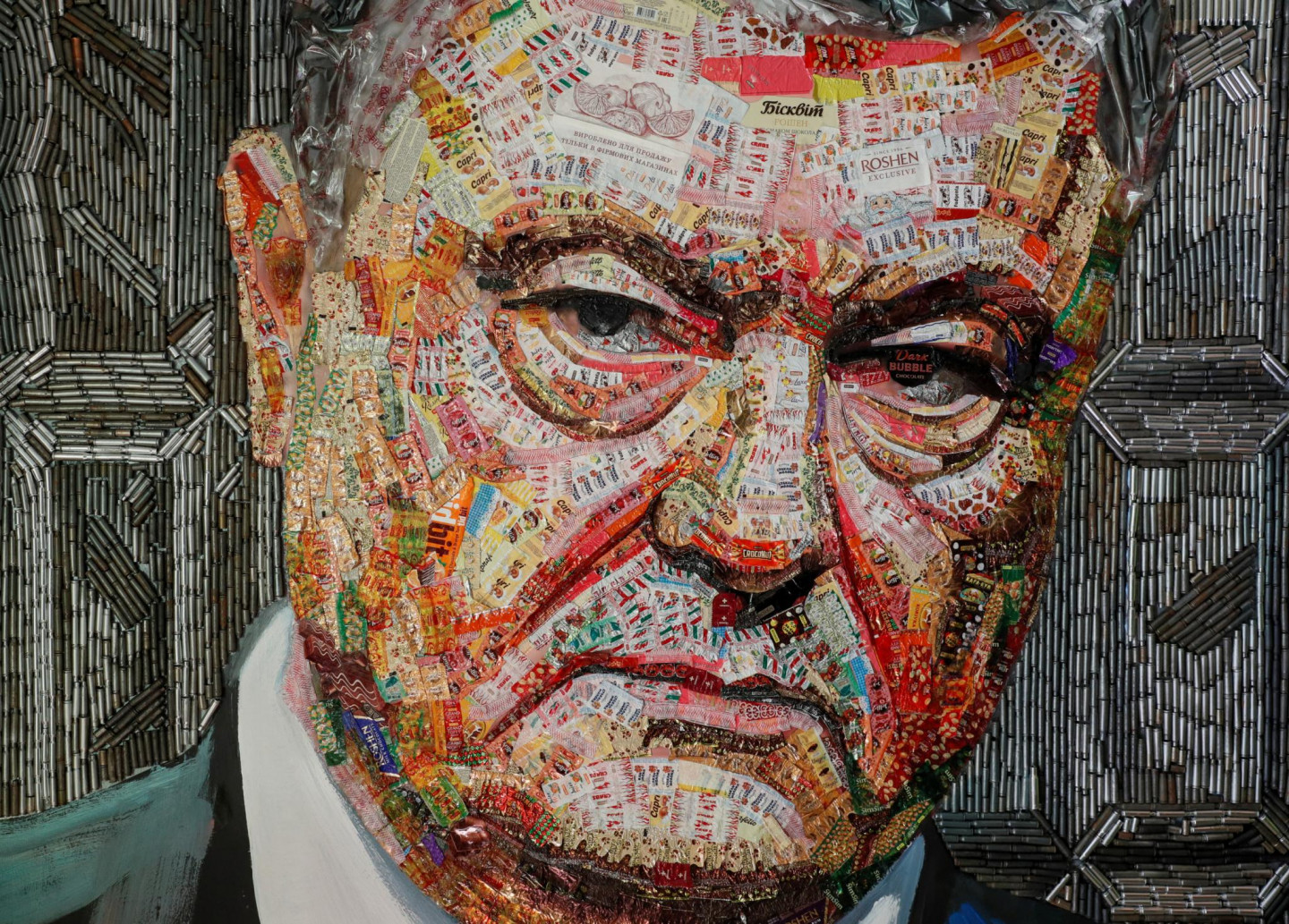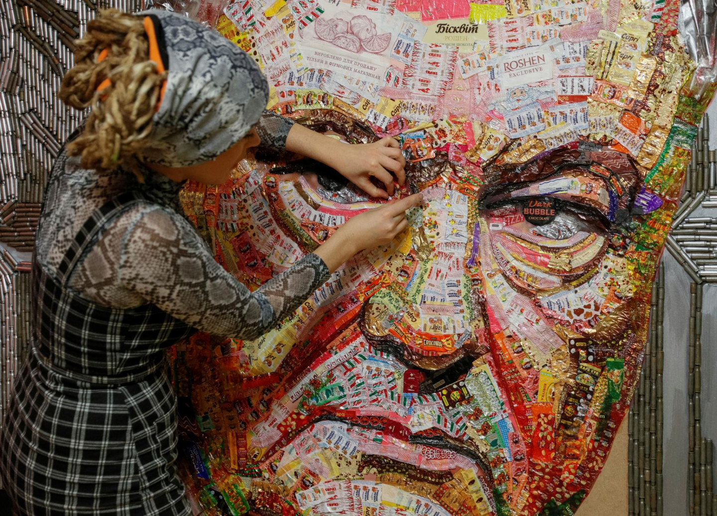 Ukrainā māksliniece Darja Marčenko radījusi prezidenta Petro Porošenko portretu un nodēvējusi to par "korupcijas seju". Interesanti, ka portrets tapis no Porošenko uzņēmuma "Roshen" konfekšu papīriņiem, kā arī no tukšām lodēm, kas atvestas no militārā konflikta zonas valsts austrumos.