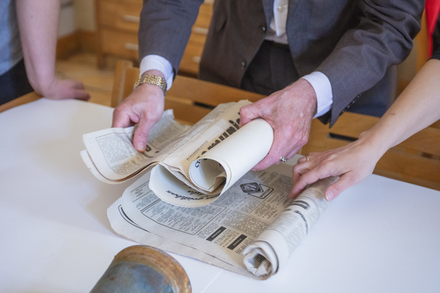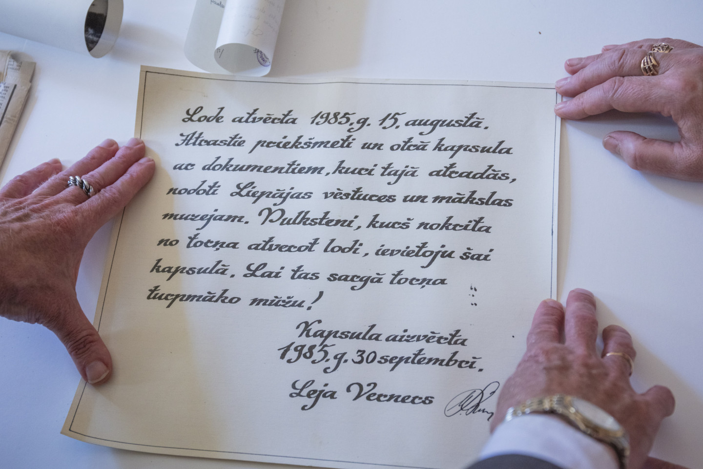 Liepājas Svētās Trīsvienības katedrāles restaurācijas procesā atrastās laika kapsulas satura atvēršana, kas tur ievietota iepriekšējo rekonstrukciju gaitā 1984. gada nogalē.