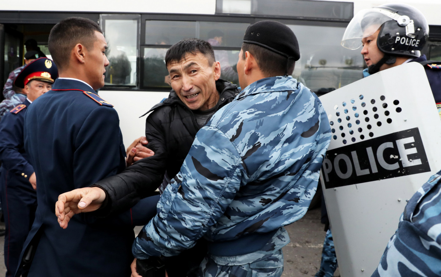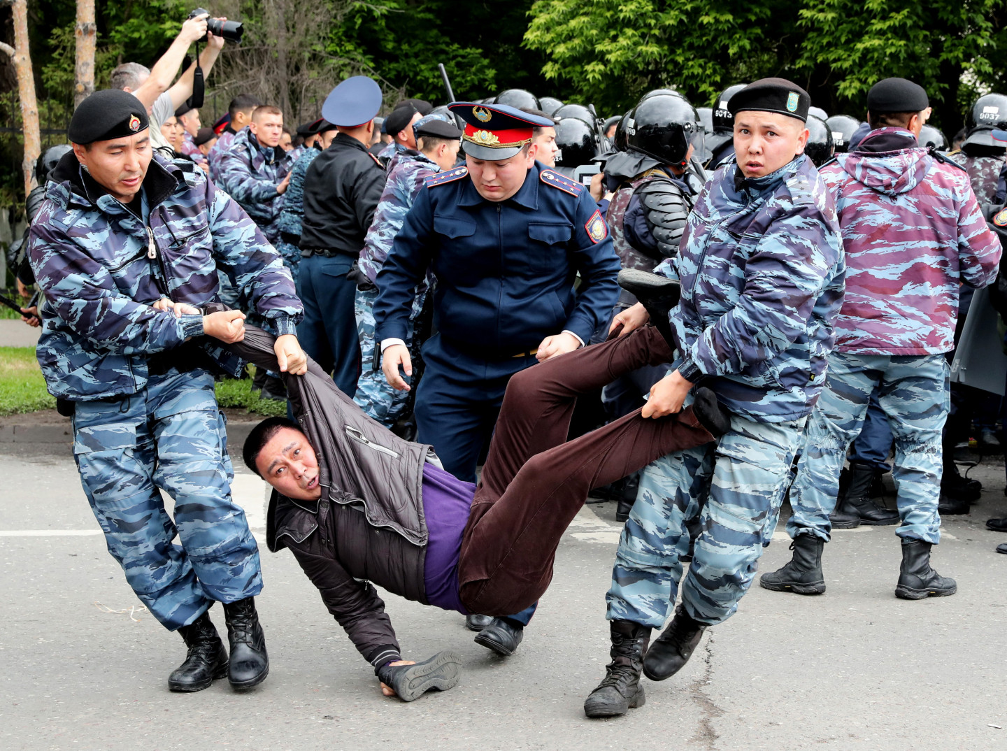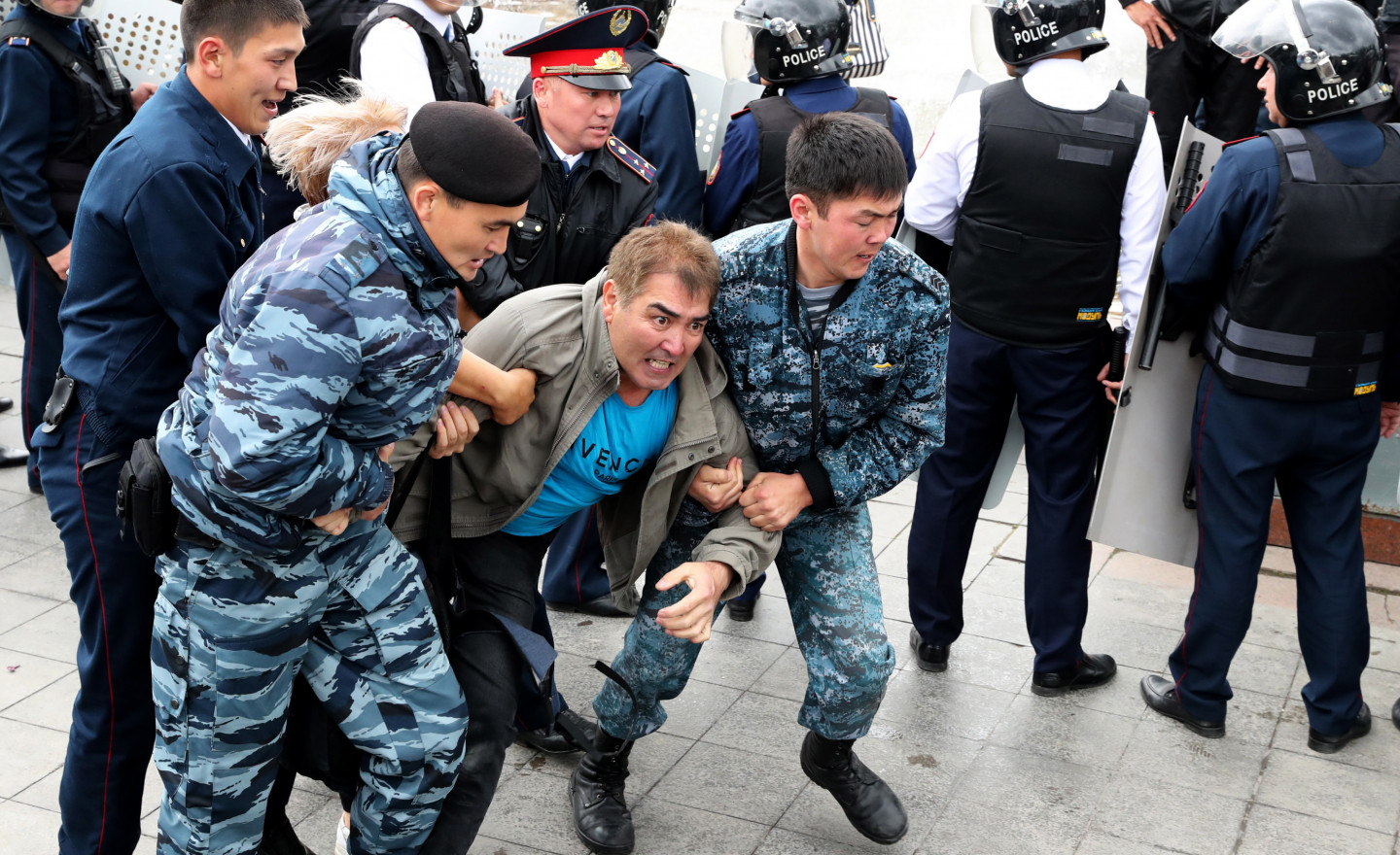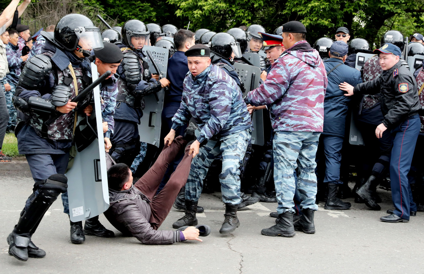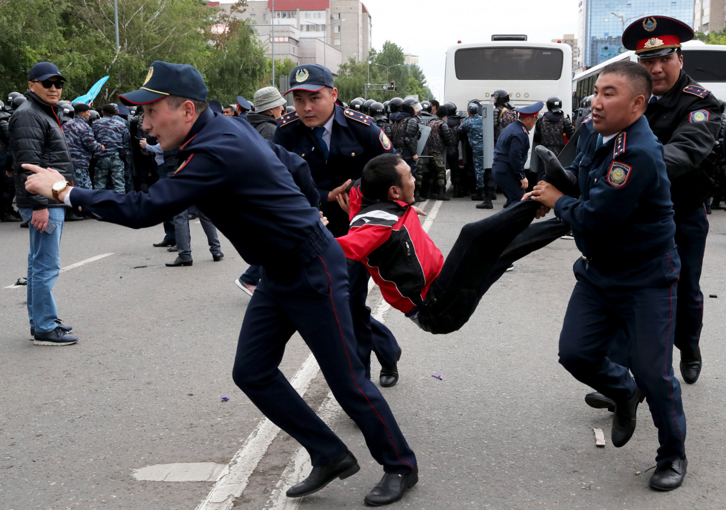 Kazahstānā svētdien notiekošo prezidenta ārkārtas vēlēšanu laikā policija abās lielākajās valsts pilsētās Nursultanā un Almati aizturējusi aptuveni 500 opozīcijas protestētāju, paziņojis iekšlietu ministra vietnieks Marats Kožajevs. Viņš apsūdzējis "radikālus elementus" nesankcionētu protesta akciju rīkošanā. Kā, atsaucoties uz augstu Iekšlietu ministrijas amatpersonu, vēsta Kazahstānas valsts ziņu aģentūra "Kazinform", kārtības uzturēšanā vēlēšanu dienā iesaistīti aptuveni 19 000 policistu. Protesta akciju dalībnieki iebilst pret ārkārtas vēlēšanām, uzskatot, ka tās ir nelikumīgas un tiek rīkotas, lai nodrošinātu martā demisionējušā pirmā un ilggadējā valsts vadītāja Nursultana Nazarbajeva varas pārmantojamību.