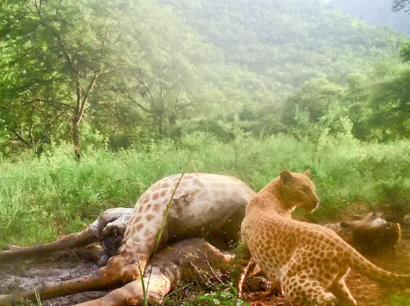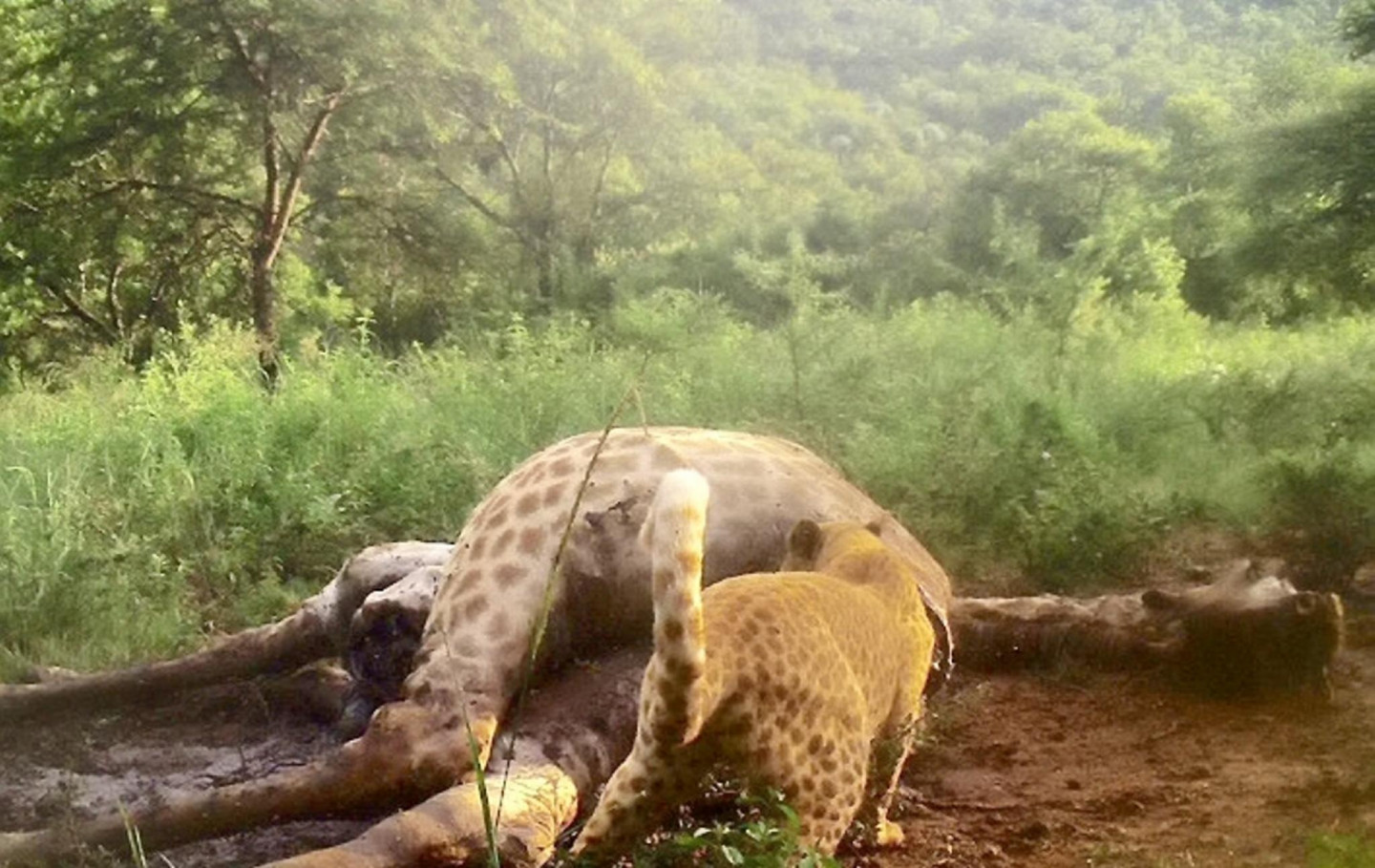 Internetā parādījušās jaunas tā saucamā zemeņu krāsas leoparda fotogrāfija. Pirmo reizi kamerai izdevies iemūžināt, kā šis leopards ēd. Retās sugas leopards iemūžināts kādā rezervātā Dienvidāfrikā.