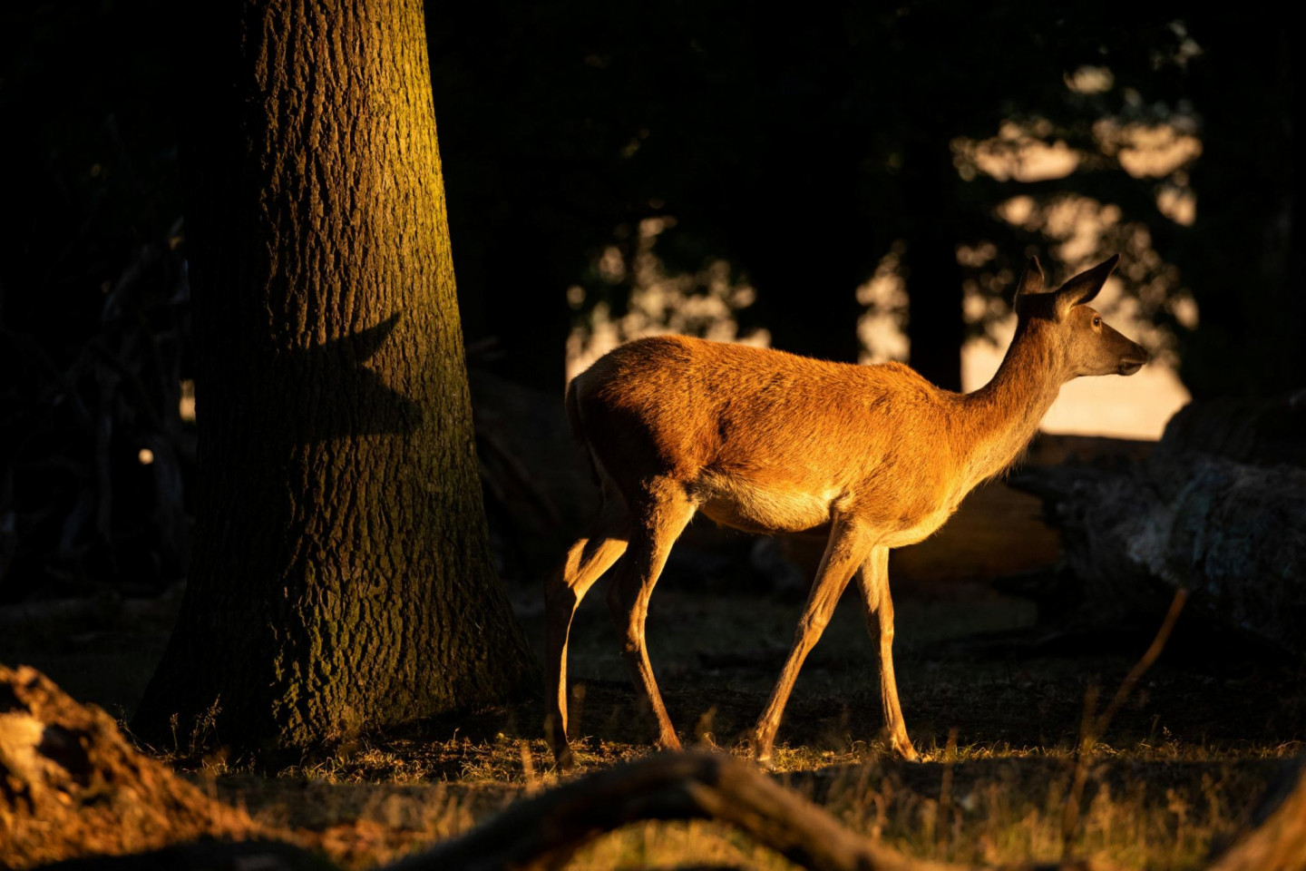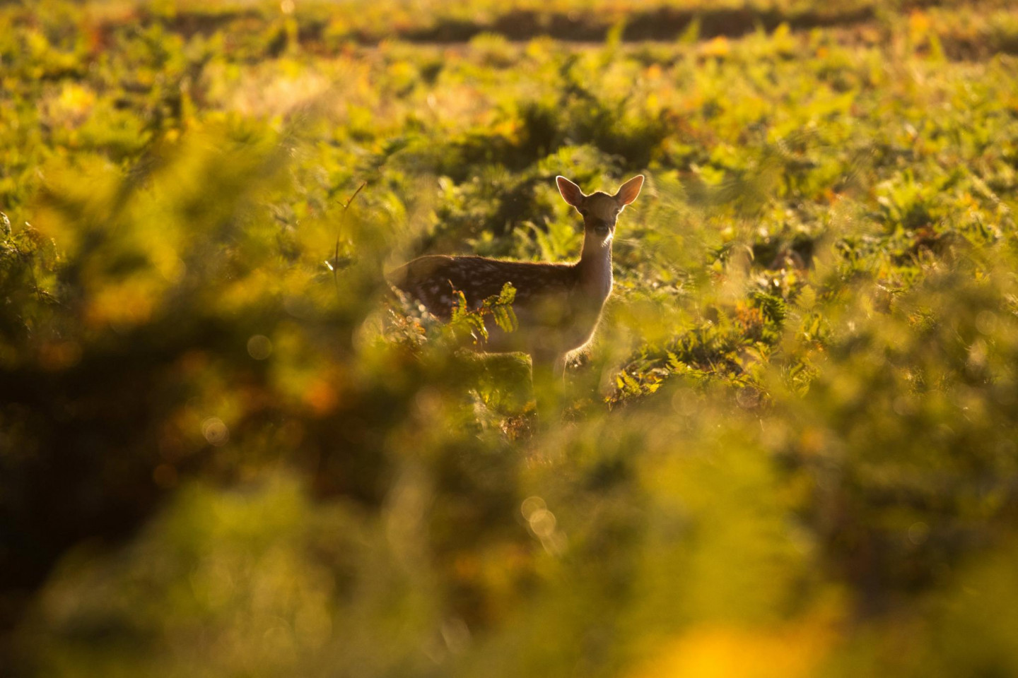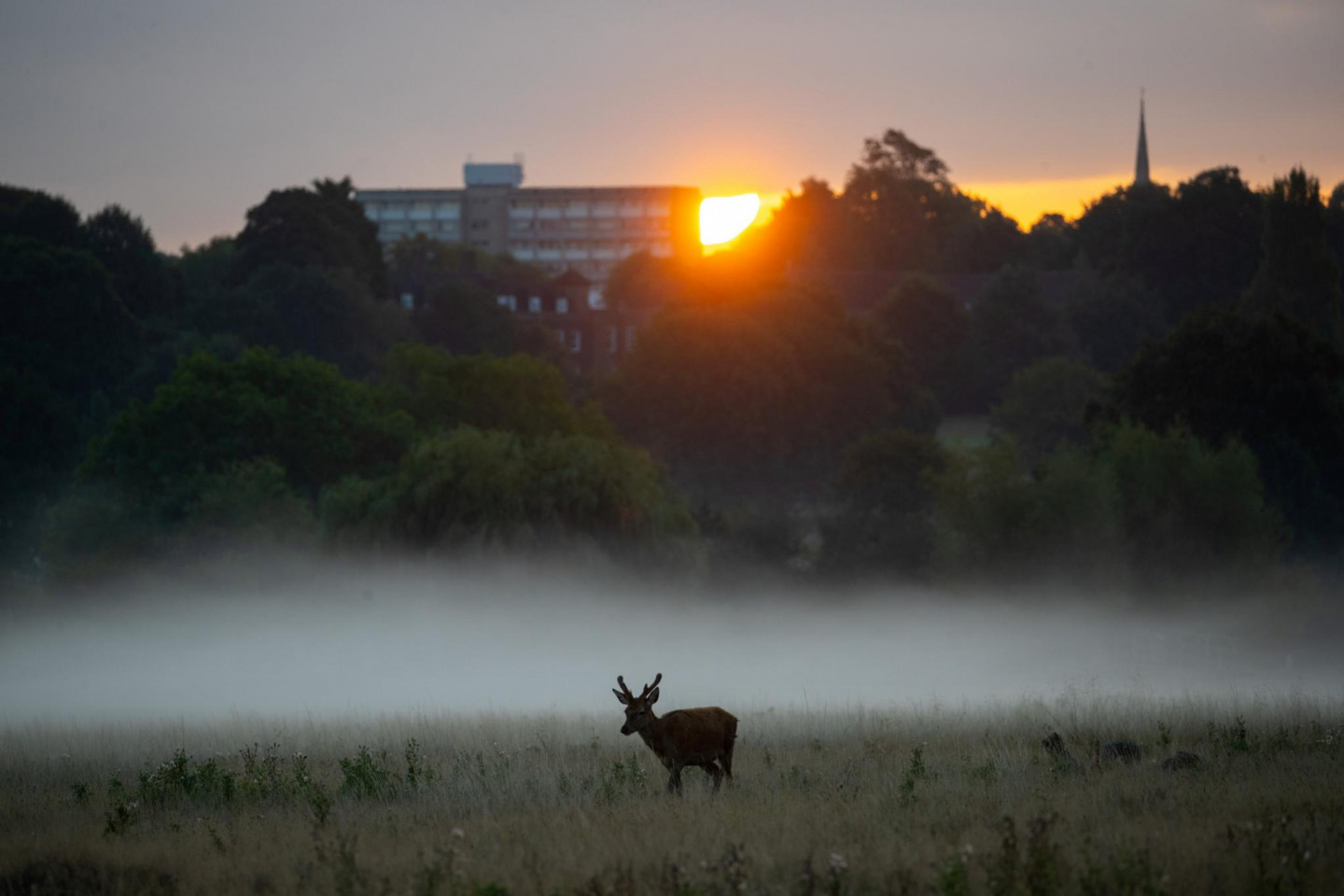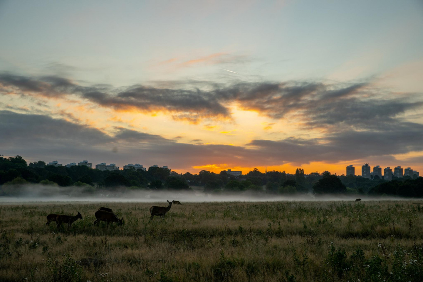 Sācies riesta laiks. Fotogrāfs piefiksējis meža zvērus Ričmondas parkā, Londonā saullēkta laikā.