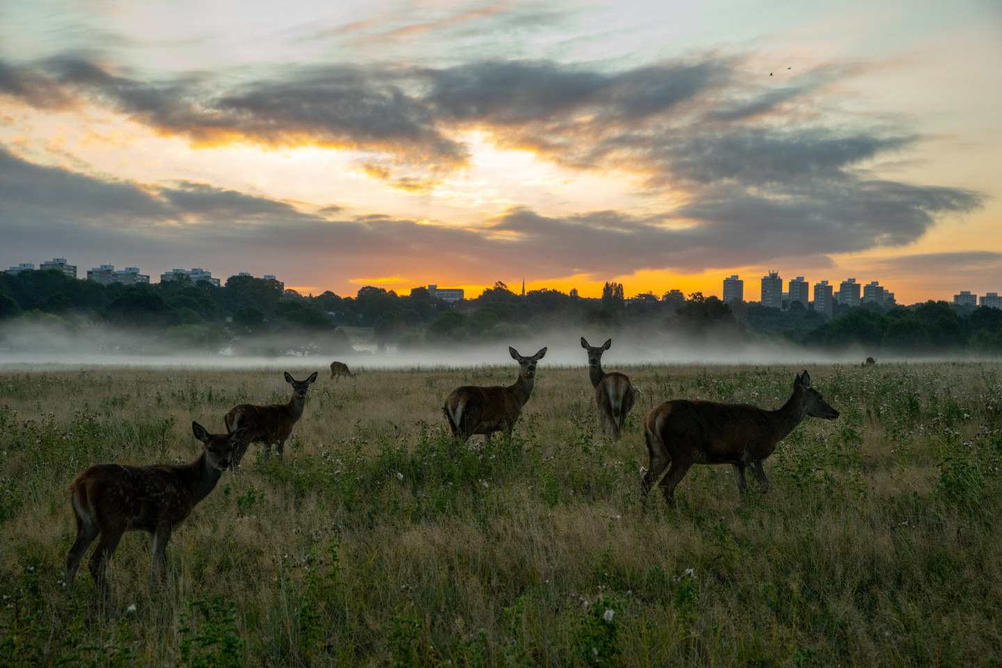 Skaisti iemūžināti meža zvēri saullēkta laikā Londonā