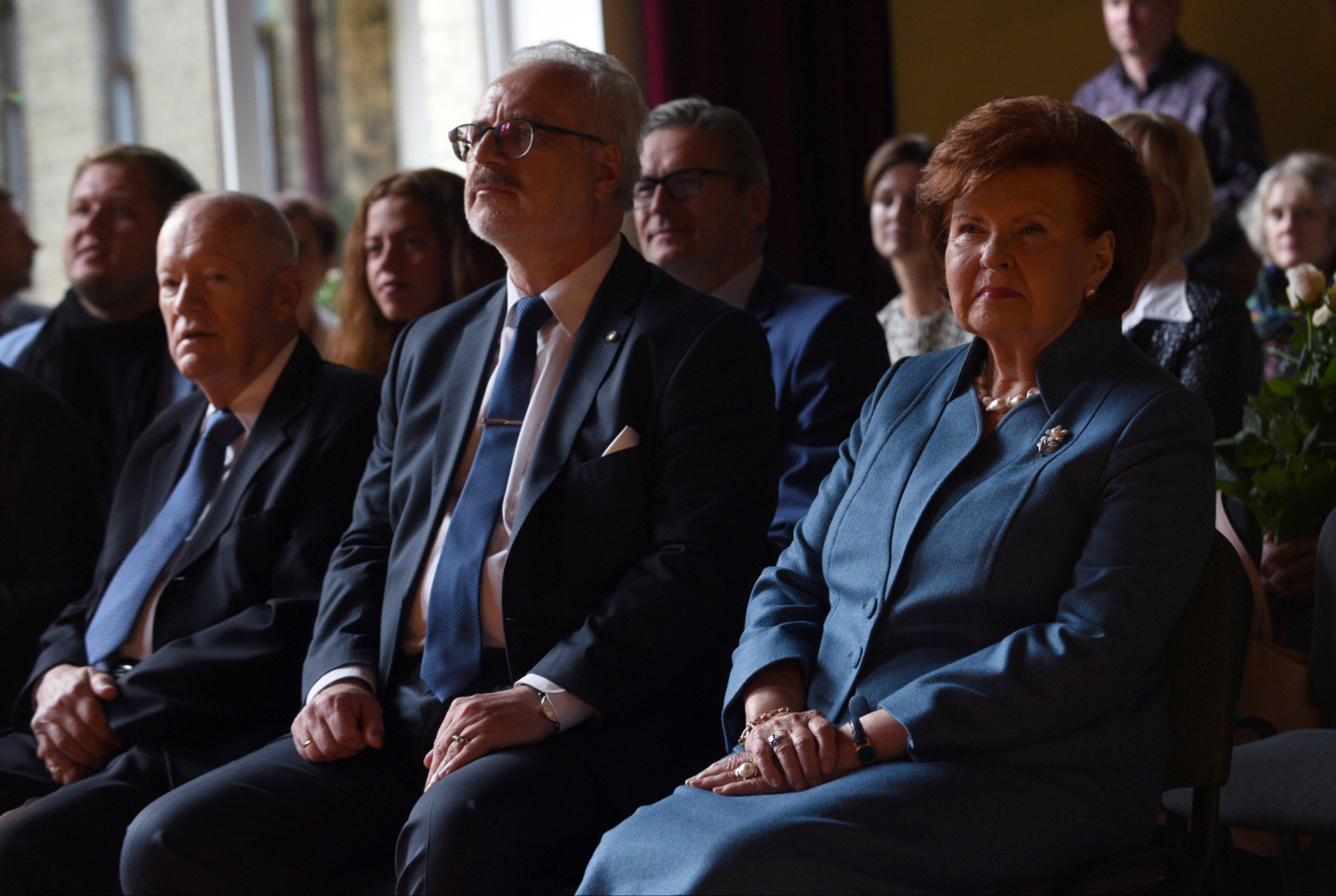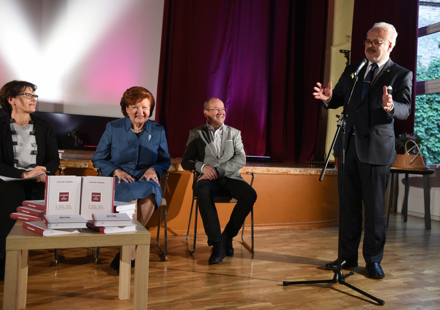 Valsts prezidents Egils Levits piedalās Vairas Vīķes-Freibergas grāmatas "The Singer of Songs. On Cognitive Shemas and Sequential Structuring in Longer Latvian Folk Songs" atvēršanas svētkos.
