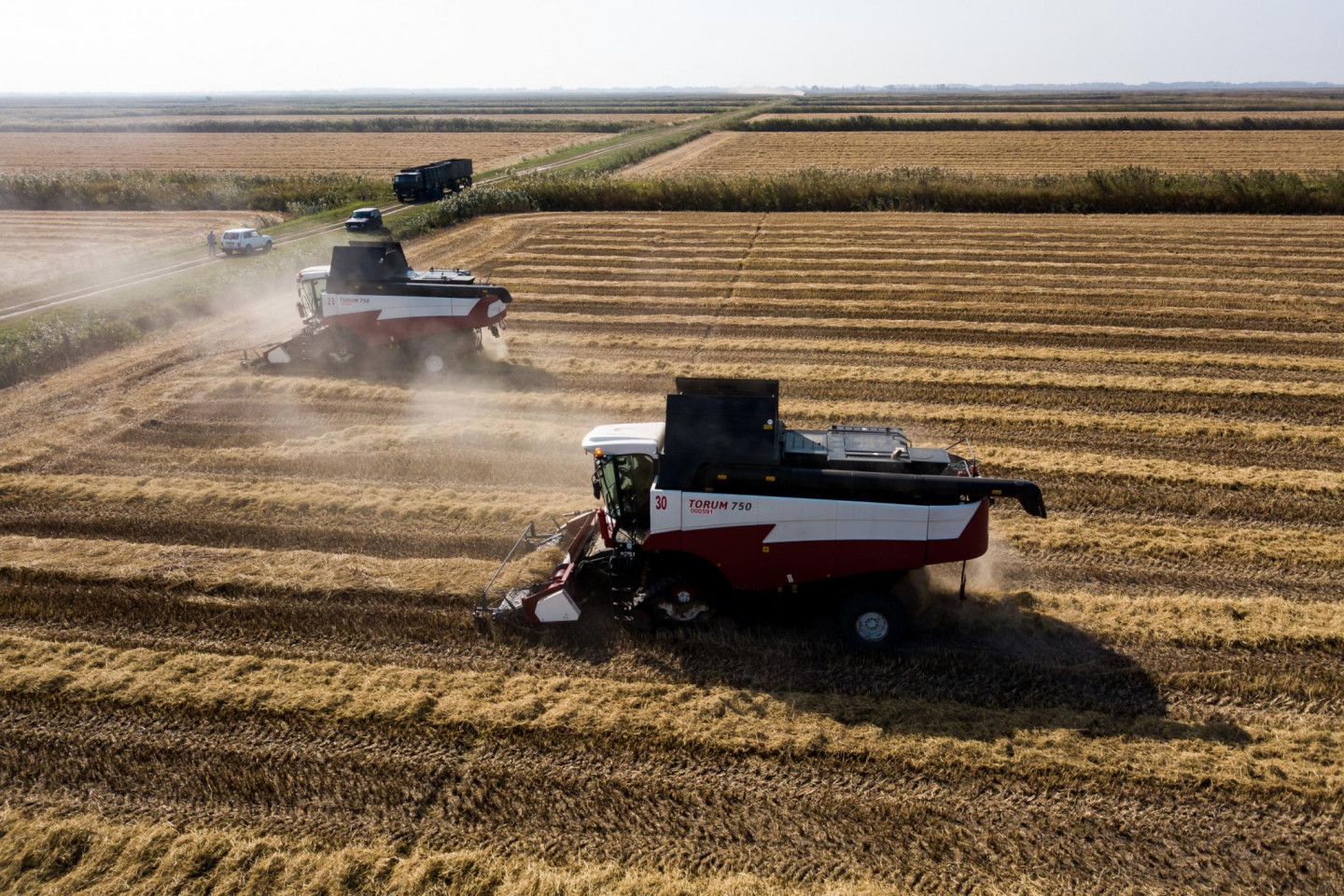 Kā no milzīga rīsu lauka Krievijā novāc ražu
