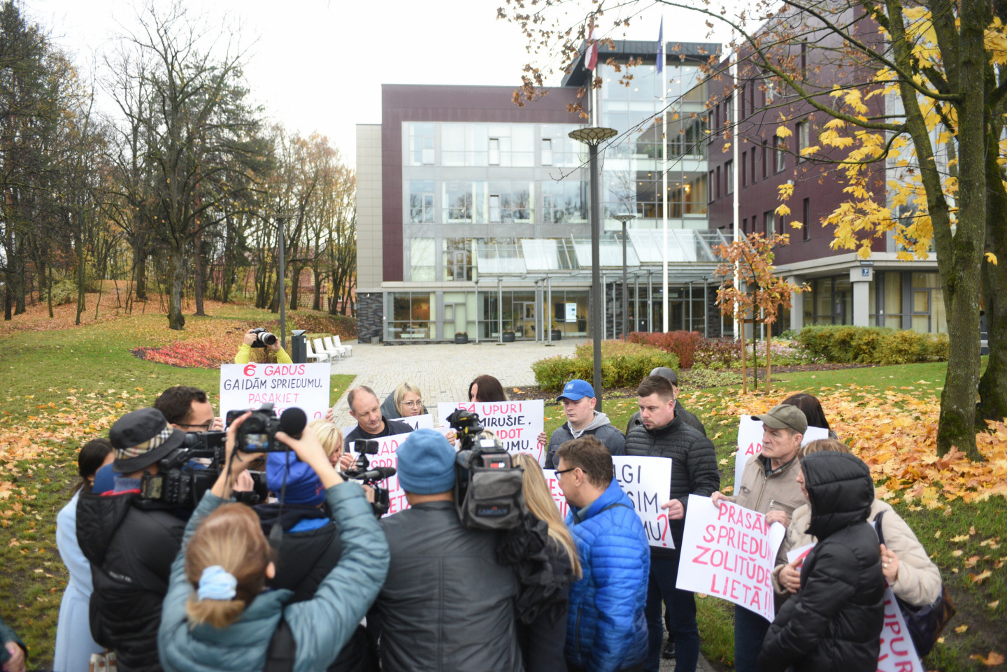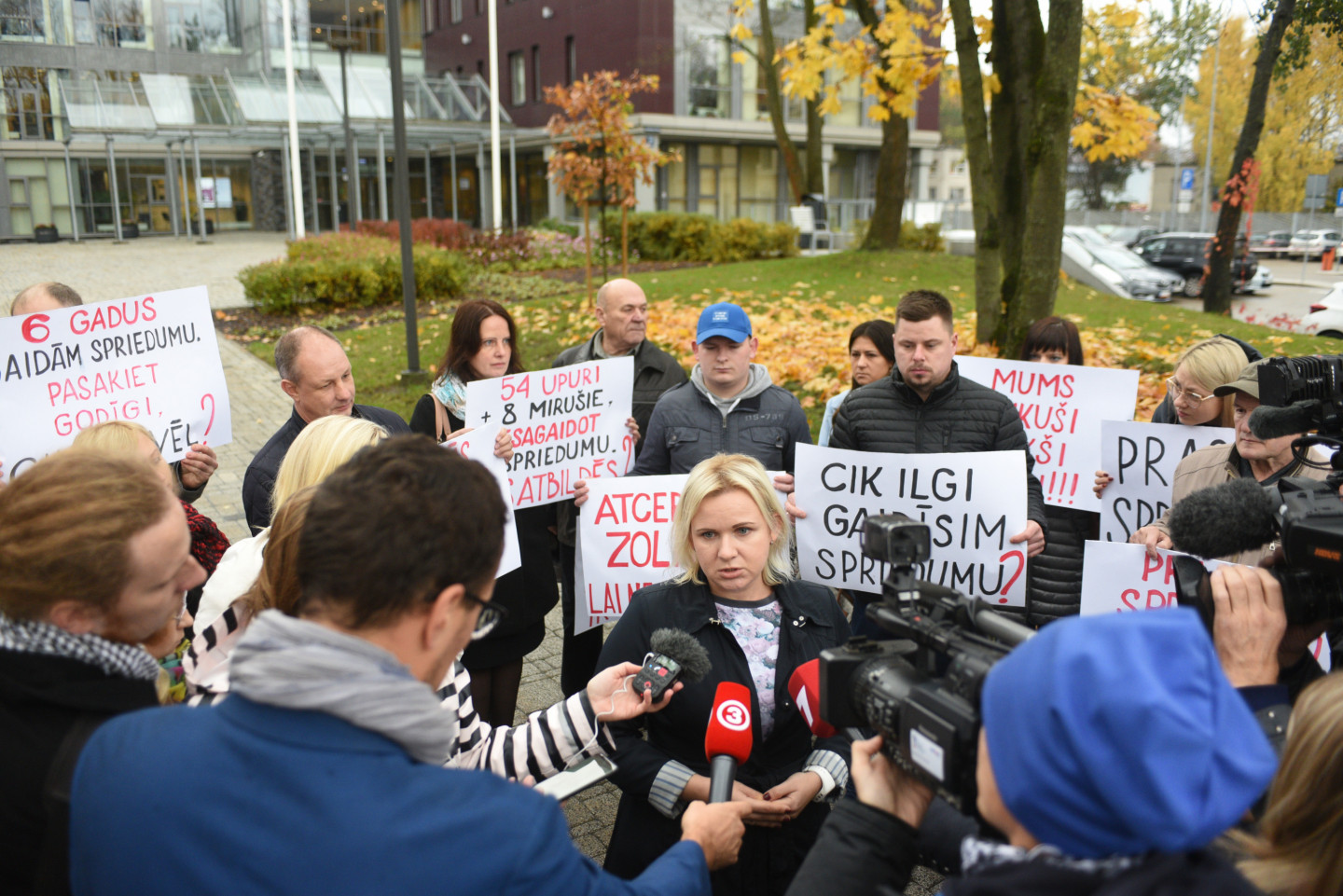 Šodien plkst.10 pie tiesas ēkas Baldones ielā 1a norisinājās Zolitūdes traģēdijā cietušo biedrības "Zolitūde 21.11." rīkotā protesta akcija, kas organizēta, jo biedrība uzskata, ka tiesas process tiek vilcināts.