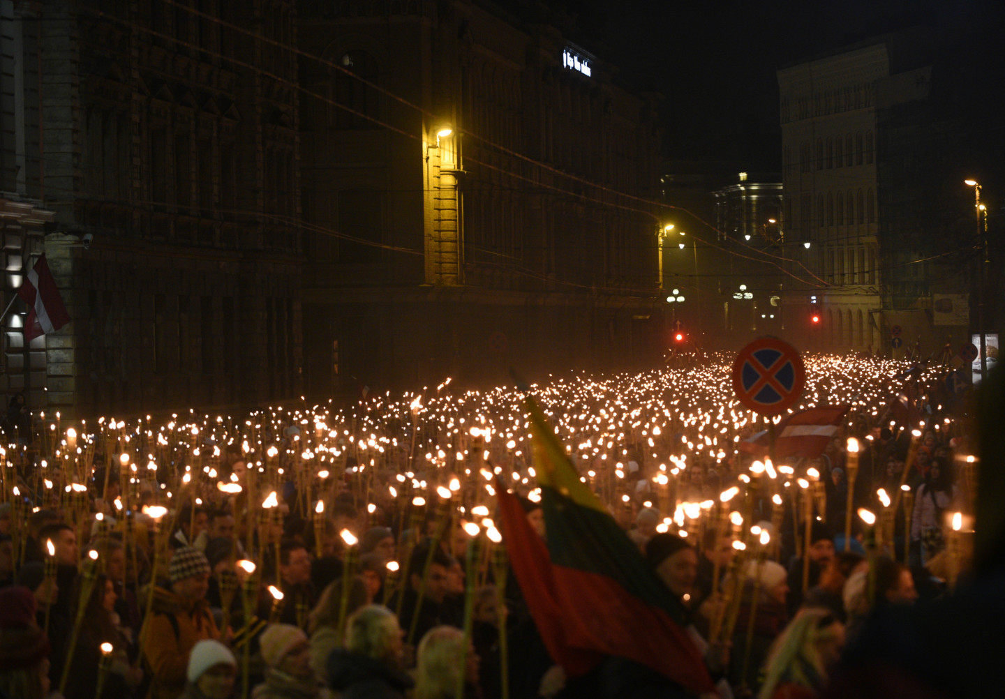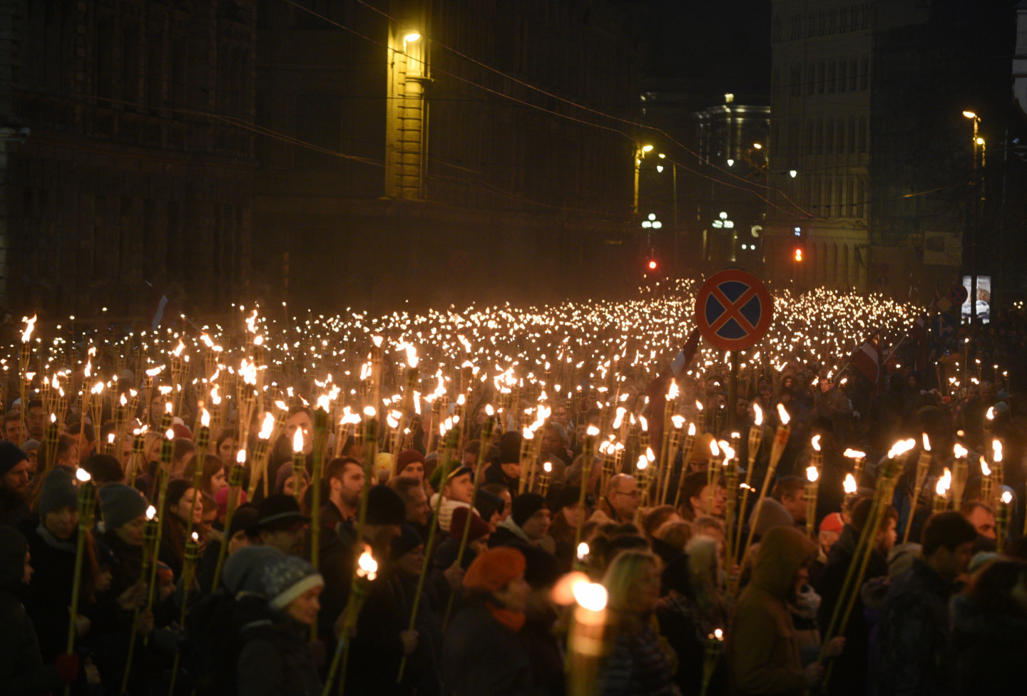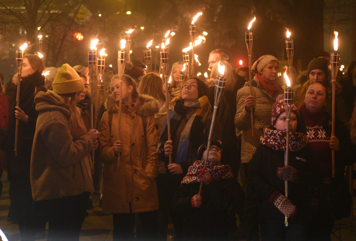 Apvienības "Visu Latvijai!"-"Tēvzemei un brīvībai"/LNNK (VL-TB/LNNK) rīkotā Latvijas neatkarības dienas lāpu gājienam pulcējās vairāki tūkstoši dalībnieki.