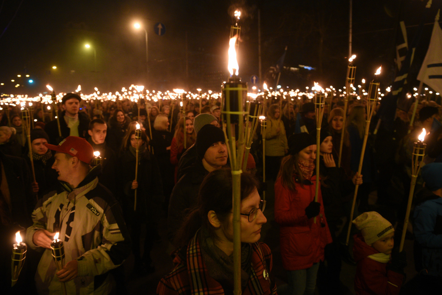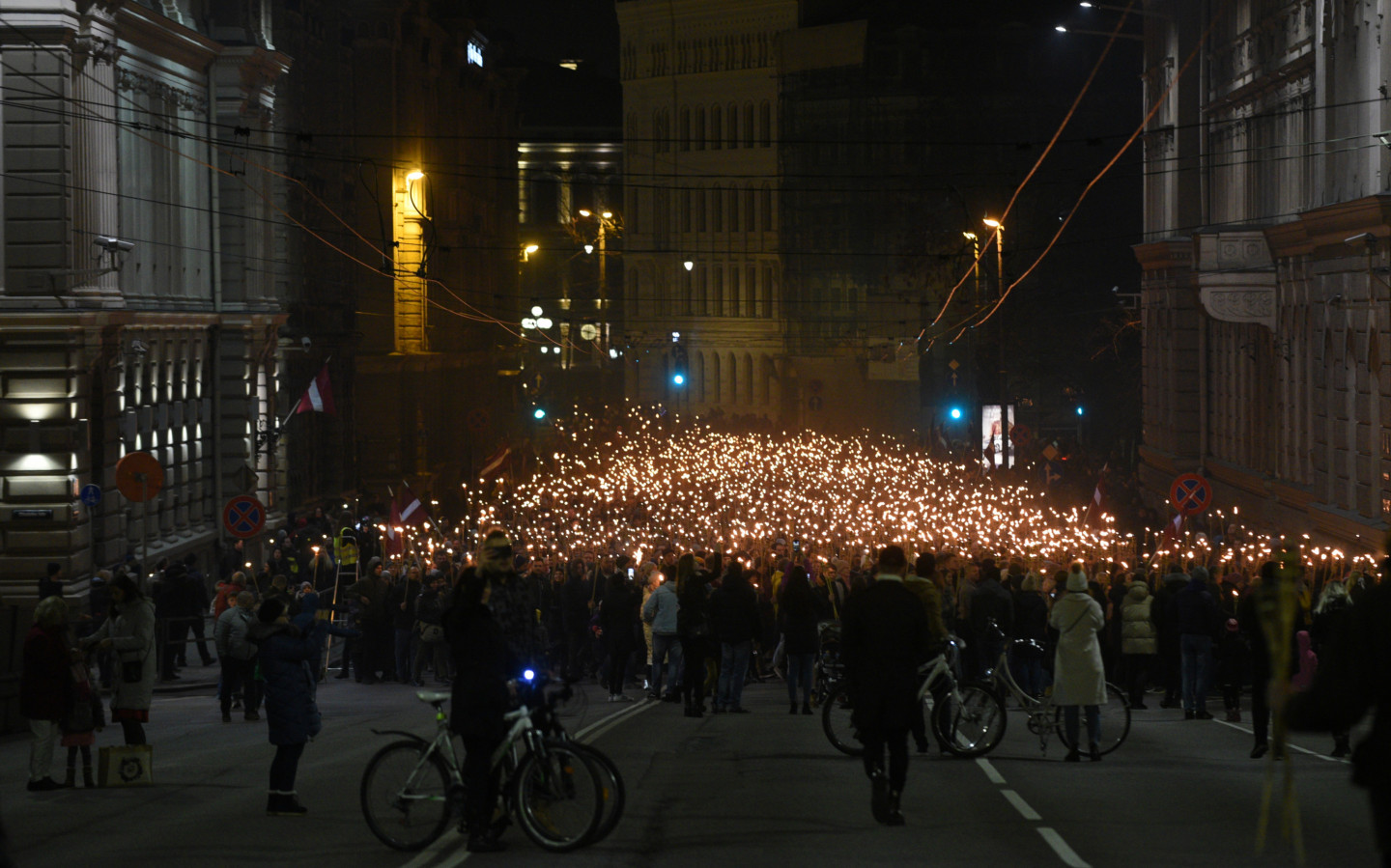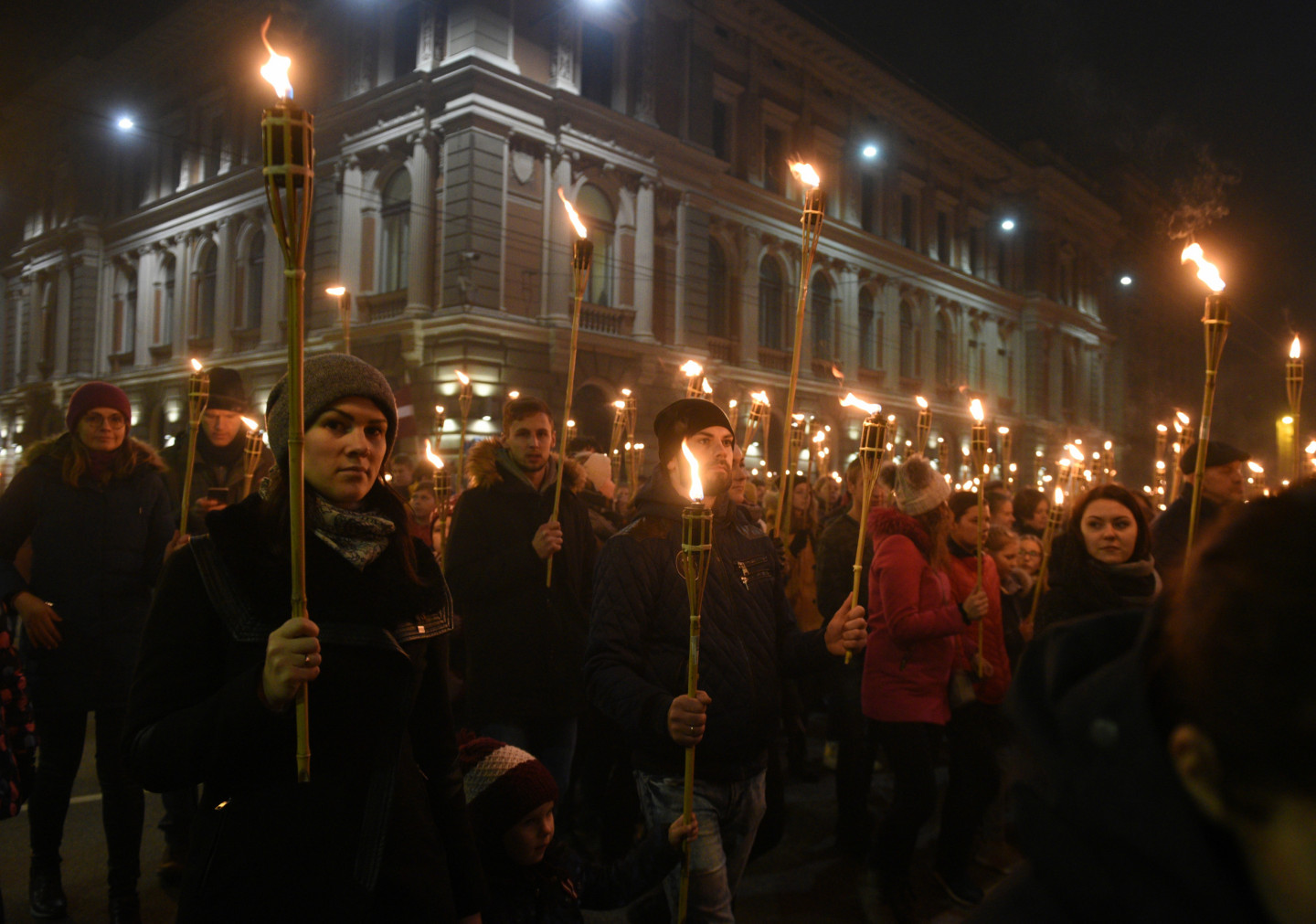 Apvienības "Visu Latvijai!"-"Tēvzemei un brīvībai"/LNNK (VL-TB/LNNK) rīkotā Latvijas neatkarības dienas lāpu gājienam pulcējās vairāki tūkstoši dalībnieki.