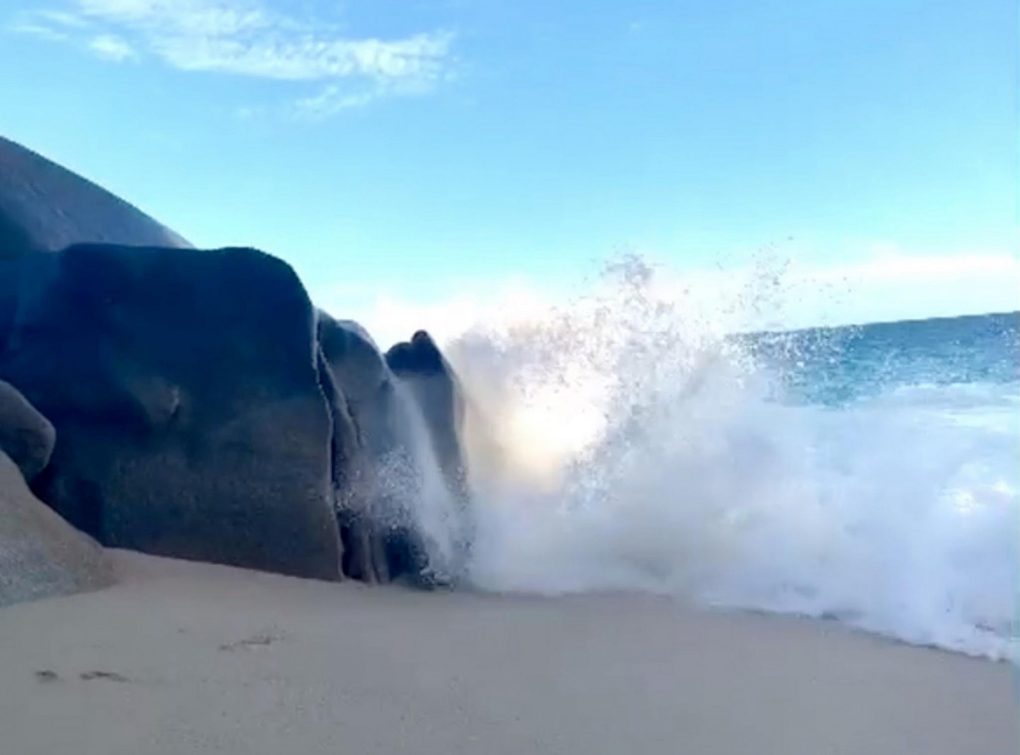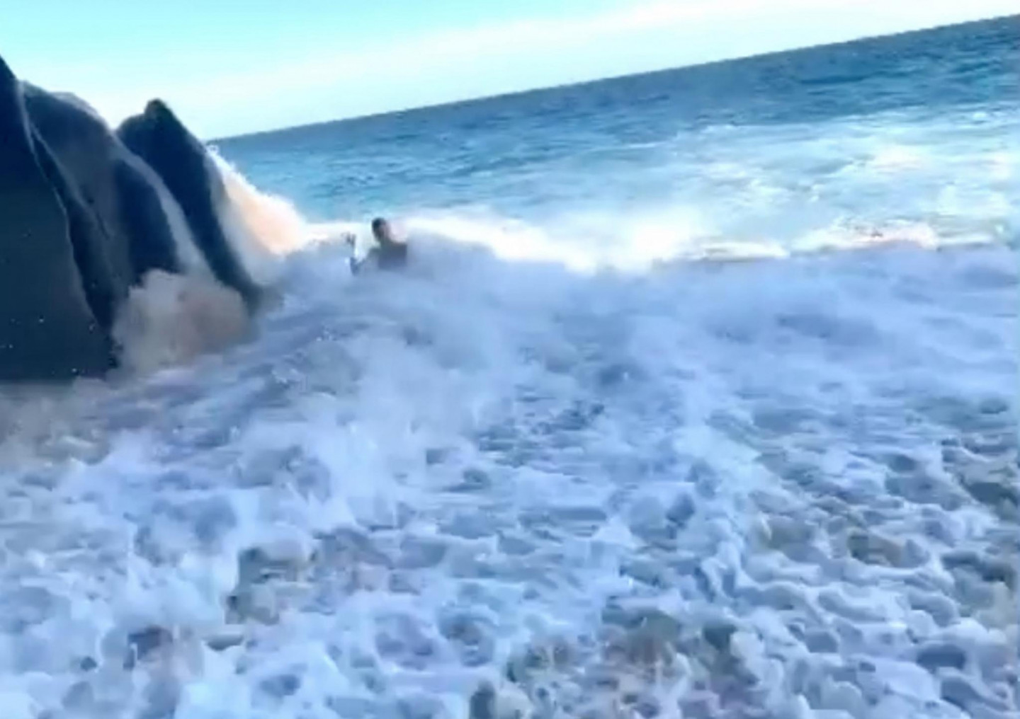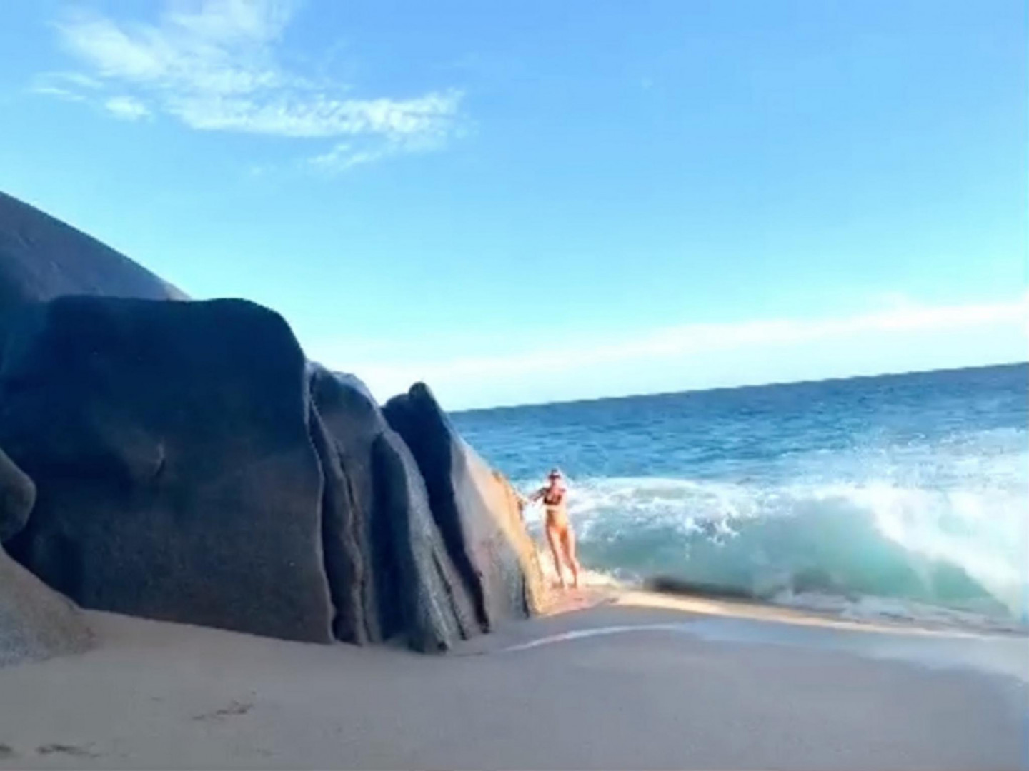 Meiteni fotosesijas laikā aizskalo milzīgs vilnis