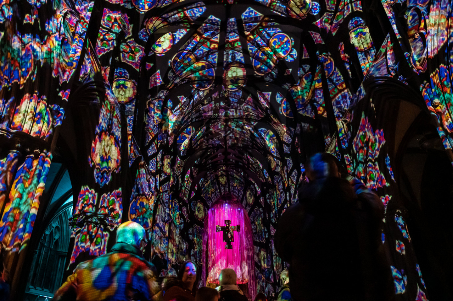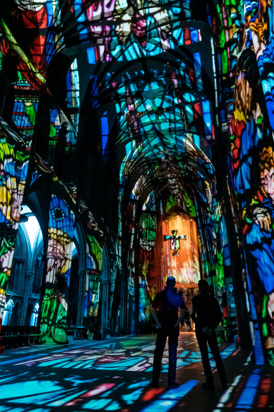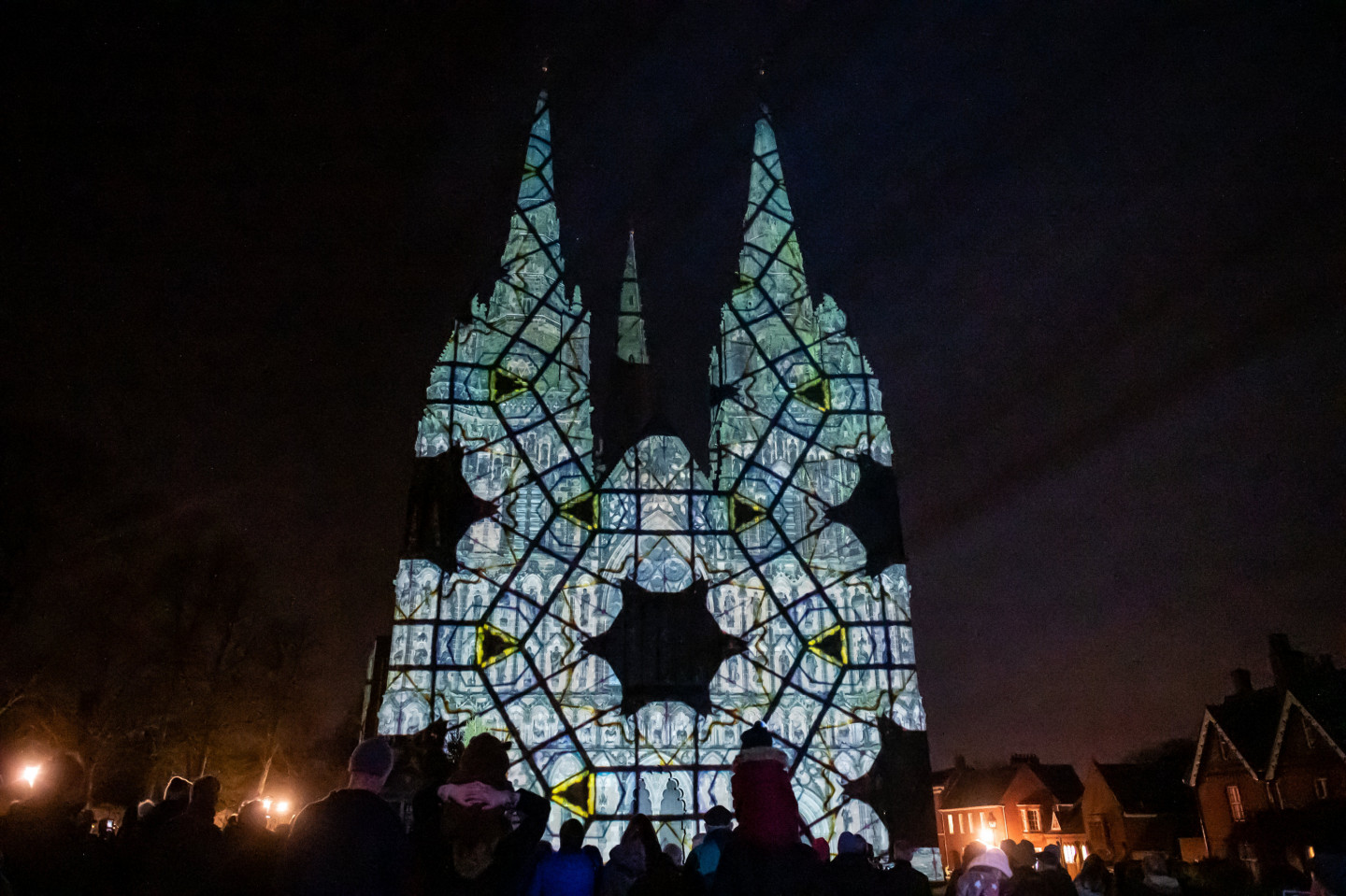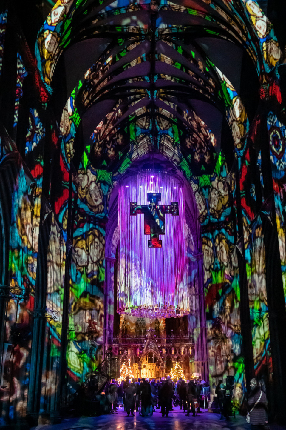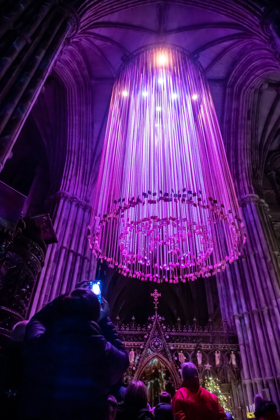 Svētkos krāšņi izgaismota viduslaiku katedrāle Lielbritānija