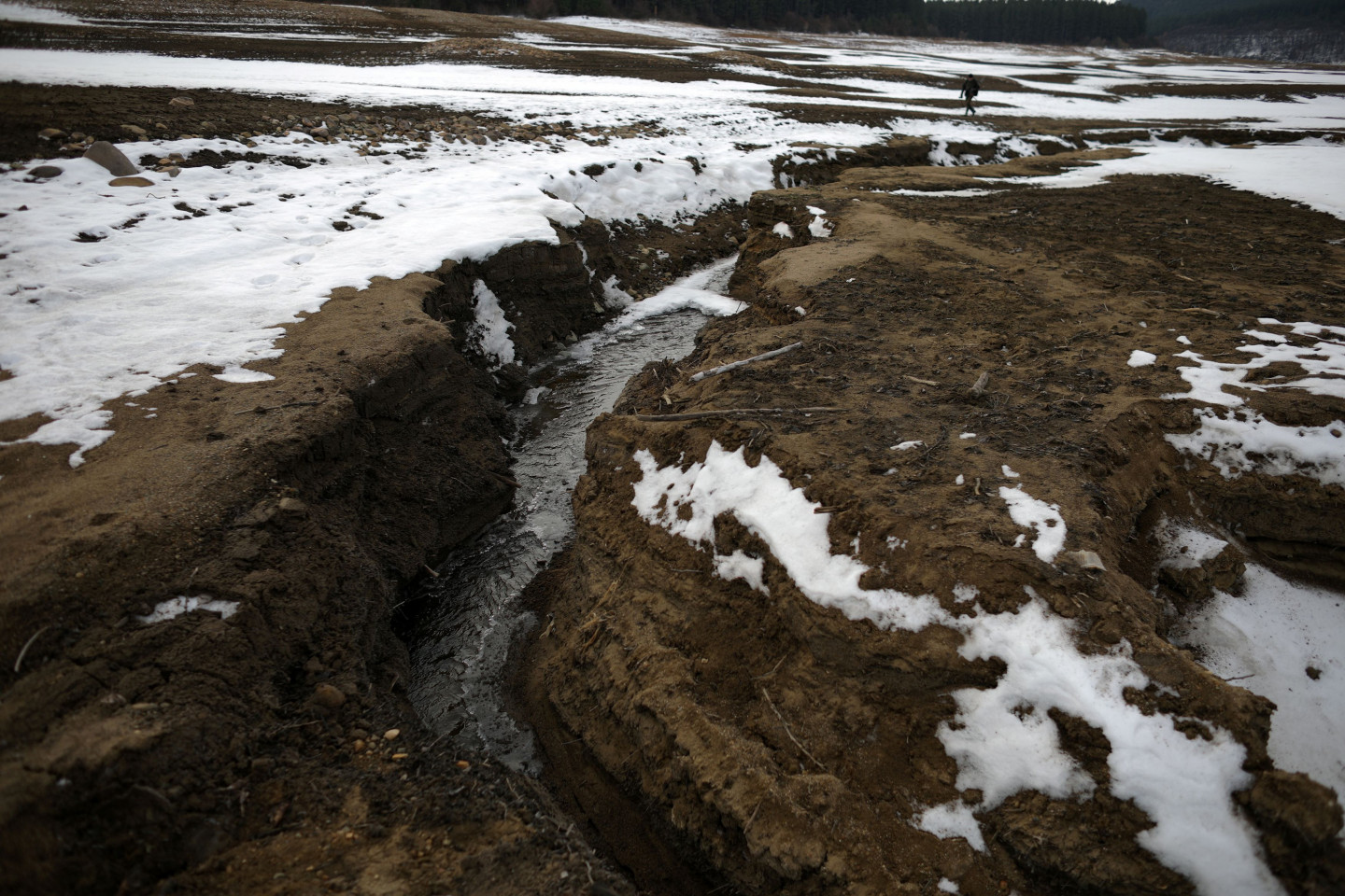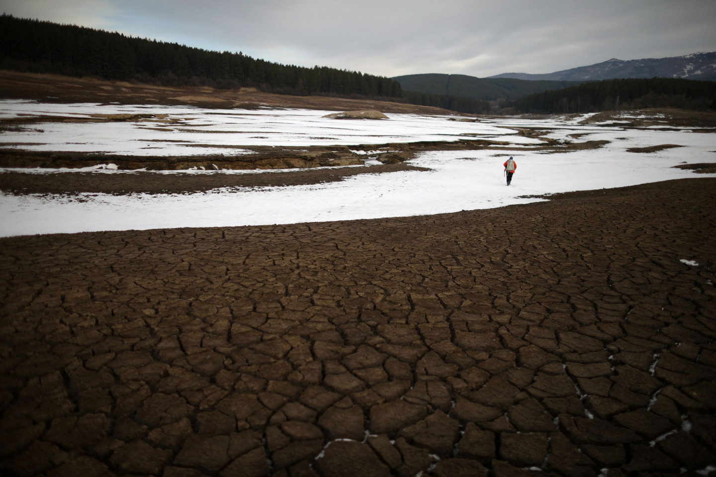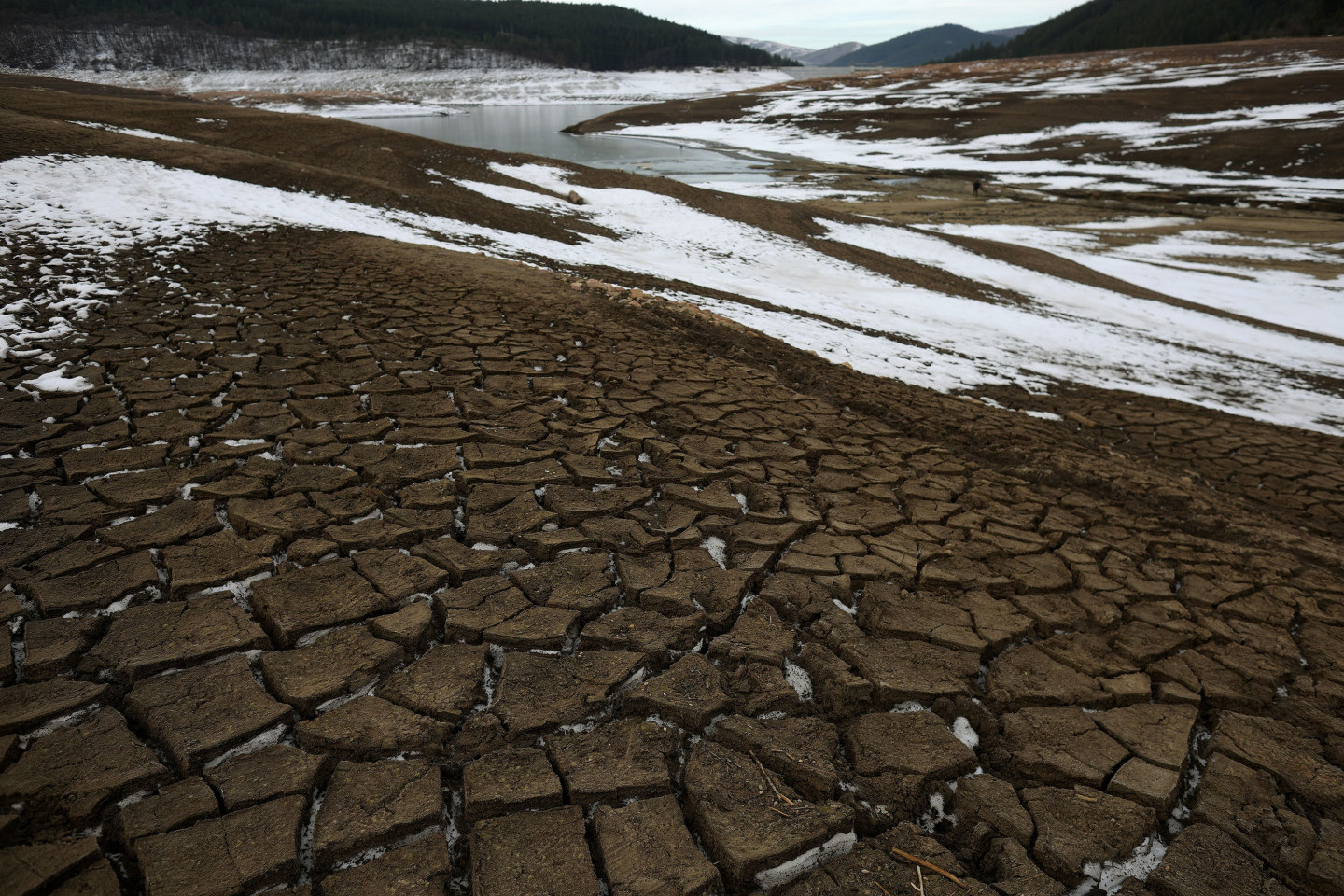 Kā izskatās saplaisājusī upes gultne pie dambja Bulgārijā.