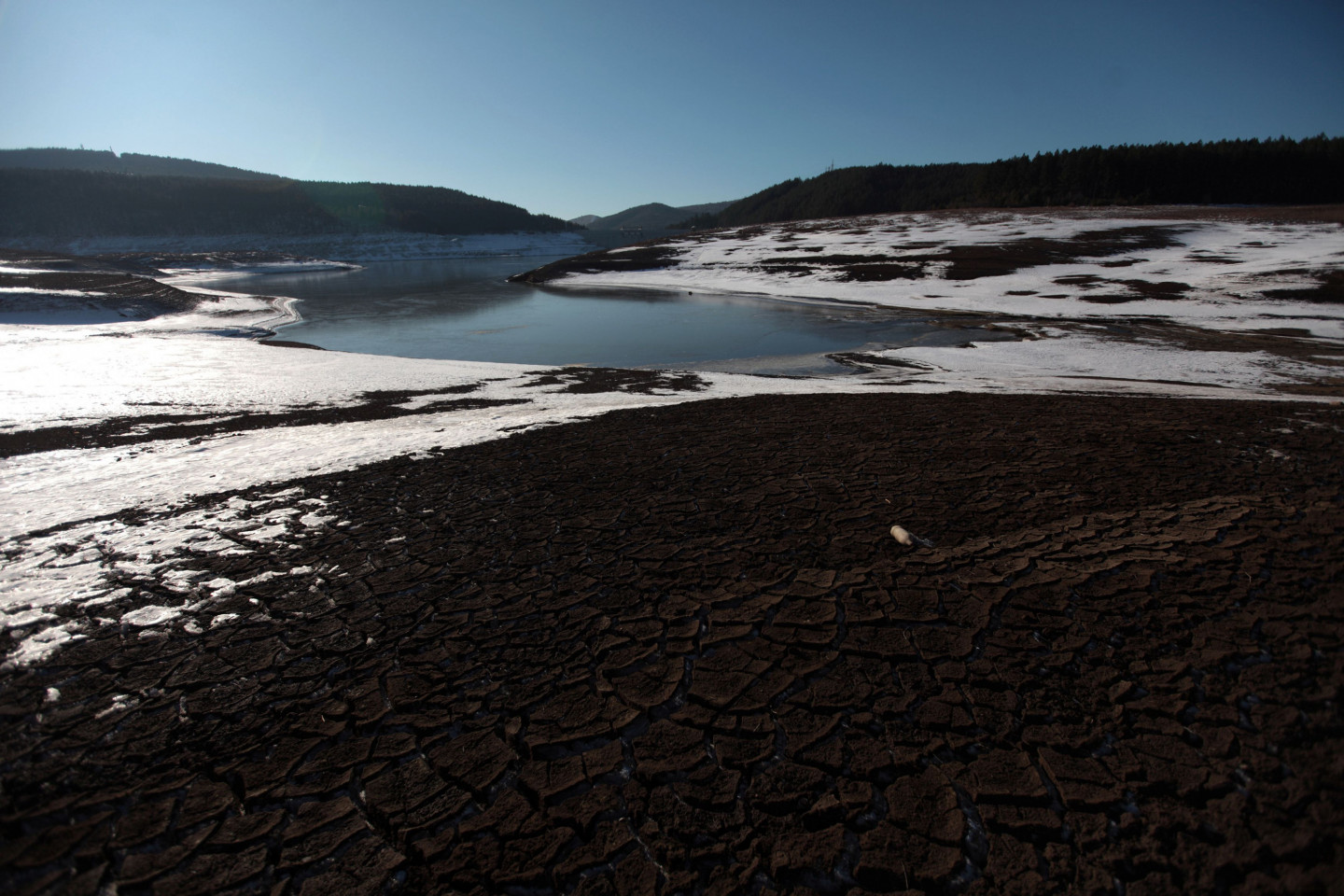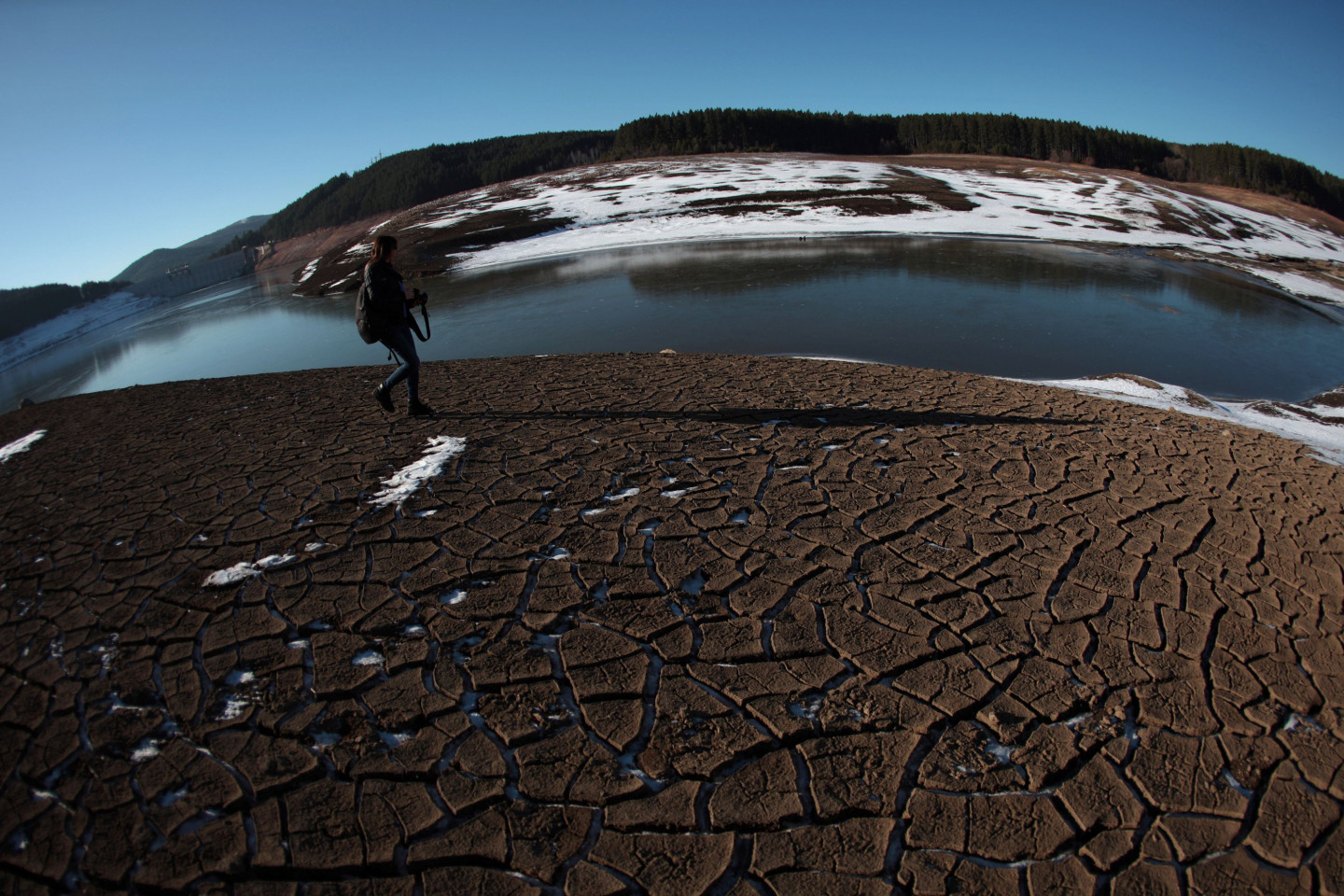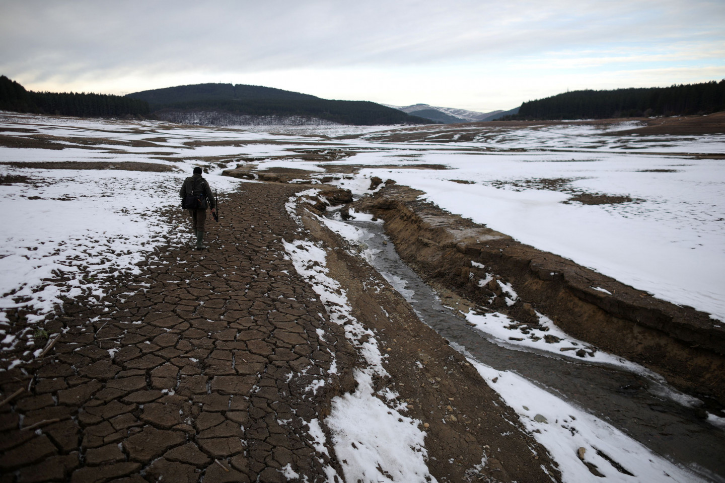 Kā izskatās saplaisājusī upes gultne pie dambja Bulgārijā.