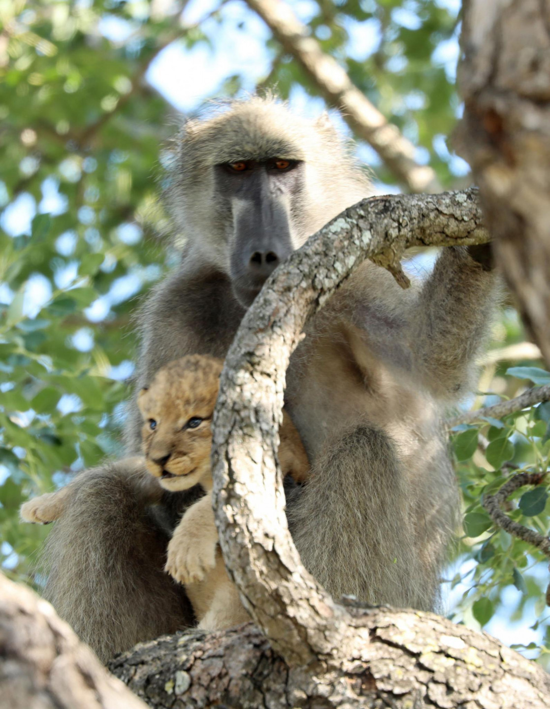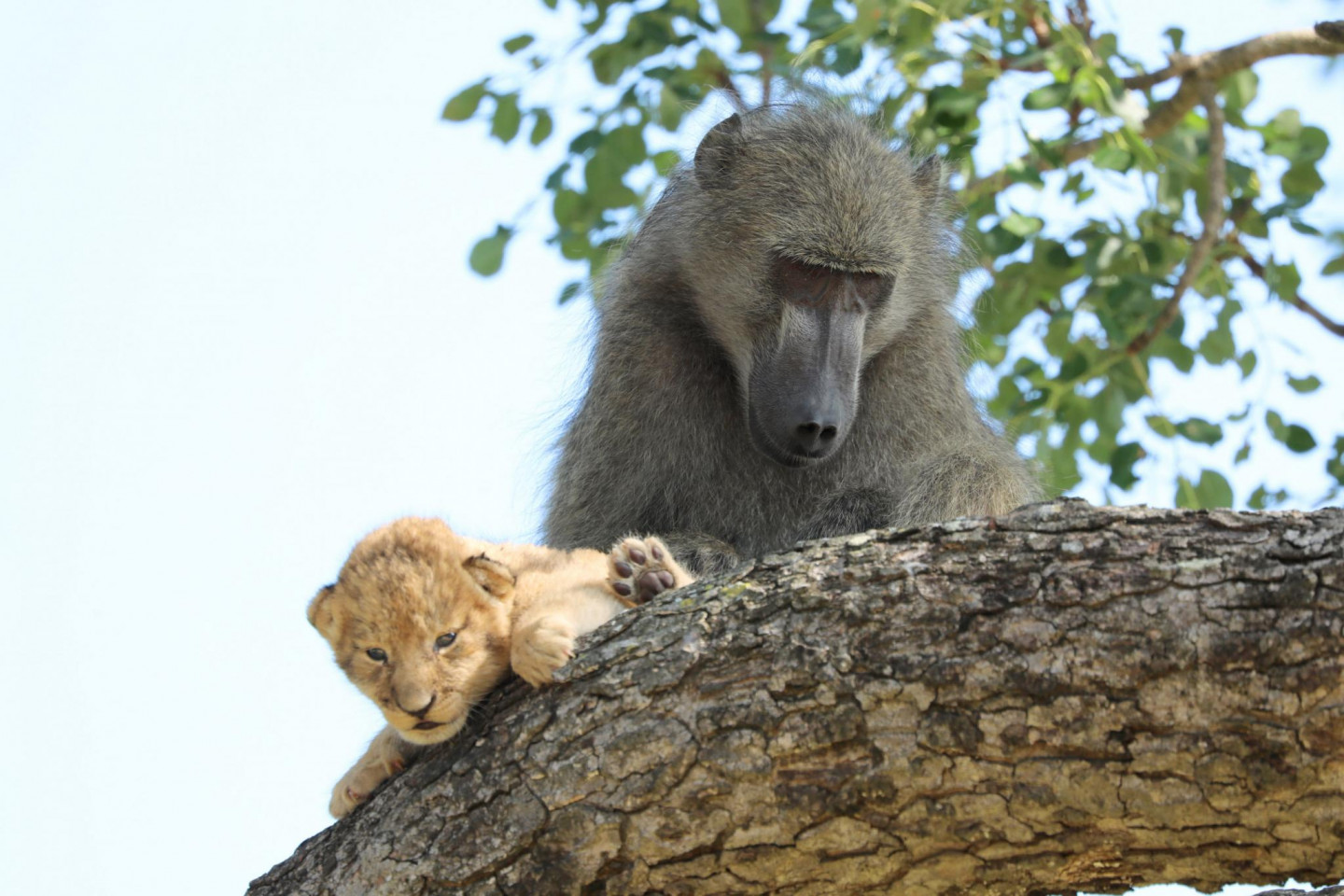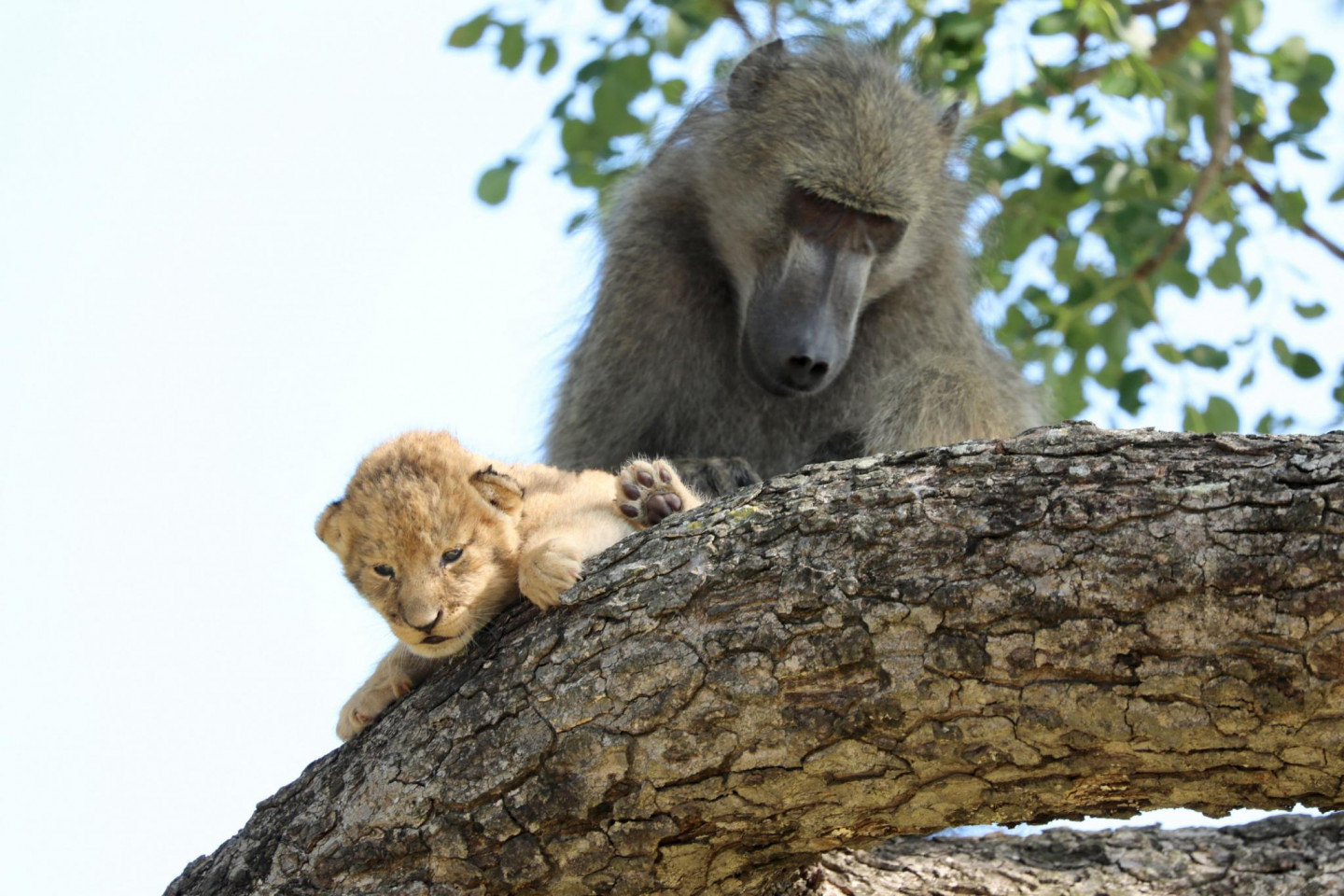 Daudziem iemīļotā filma "Karalis Lauva" nebūt nav tālu no patiesības. Āfrikas parkā kāds paviāns kopā ar mazu lauvēnu dzīvē būtībā realizējuši slaveno ainu no filmas, kurā viedais paviāns paceļ un parāda Āfrikas dzīvniekiem jaundzimušo princi - Simbu.