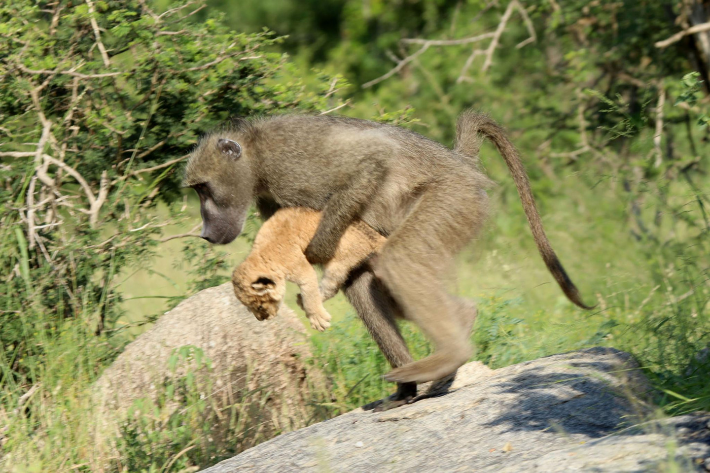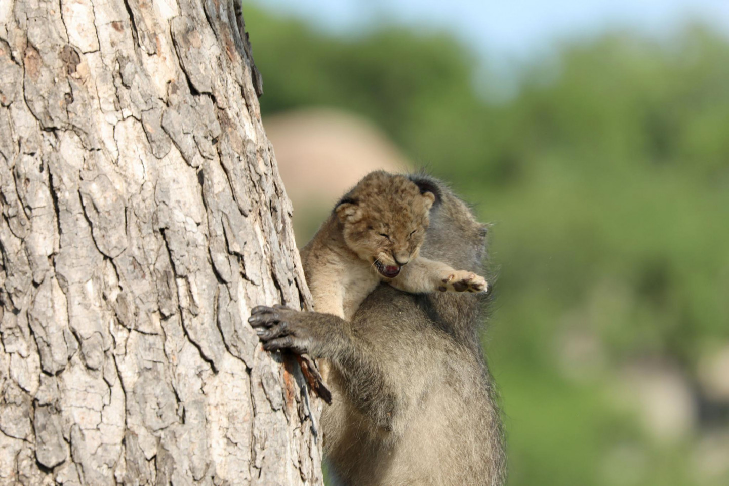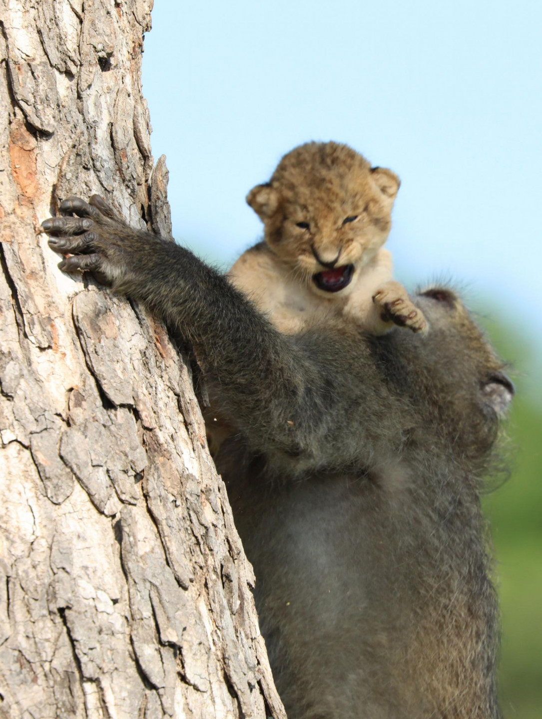Daudziem iemīļotā filma "Karalis Lauva" nebūt nav tālu no patiesības. Āfrikas parkā kāds paviāns kopā ar mazu lauvēnu dzīvē būtībā realizējuši slaveno ainu no filmas, kurā viedais paviāns paceļ un parāda Āfrikas dzīvniekiem jaundzimušo princi - Simbu.