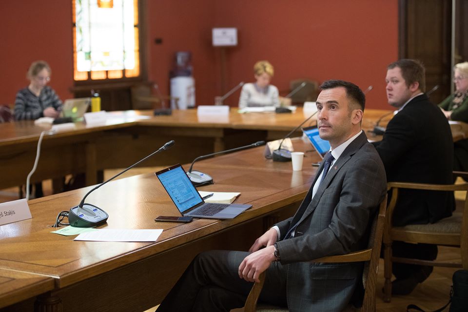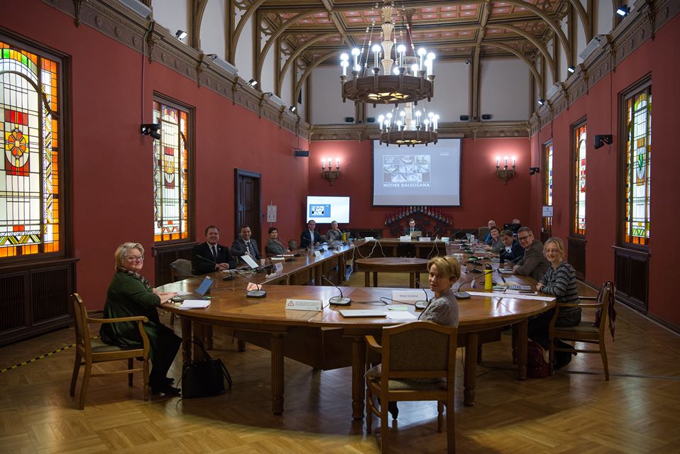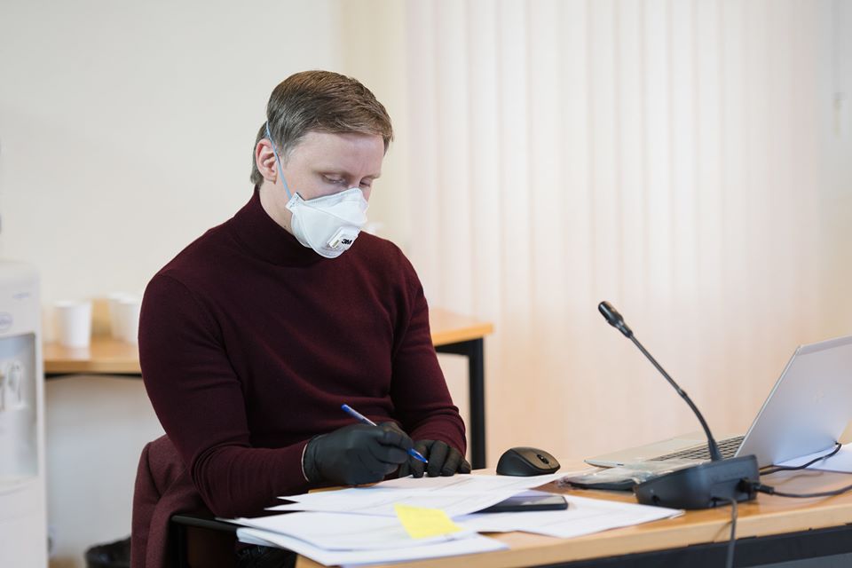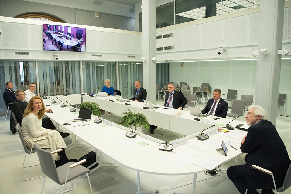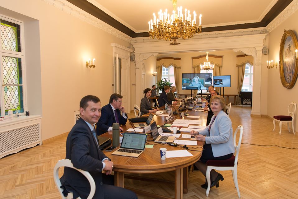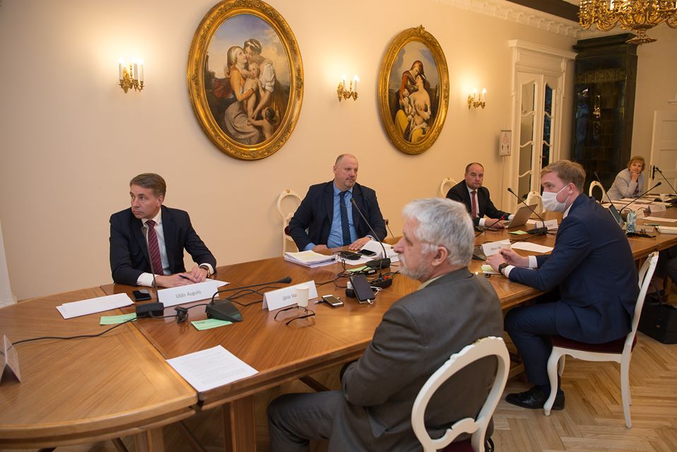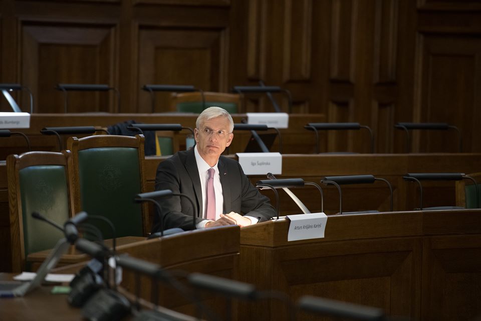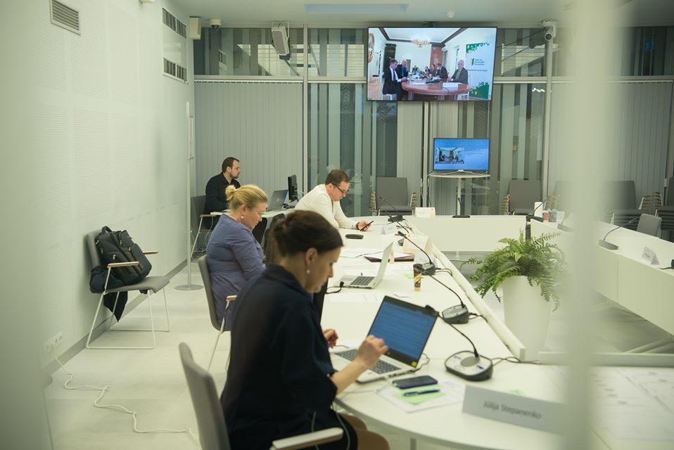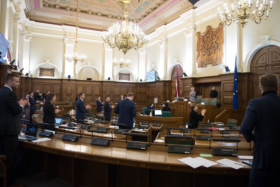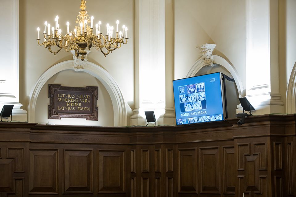 Ievērojot nepieciešamību ievērot fizisko distanci, Saeimas sēde šodien notiek, deputātiem strādājot nevis visiem vienkopus Sēžu zālē, bet astoņās atsevišķās ar konferenču tehniku aprīkotās parlamenta telpās.