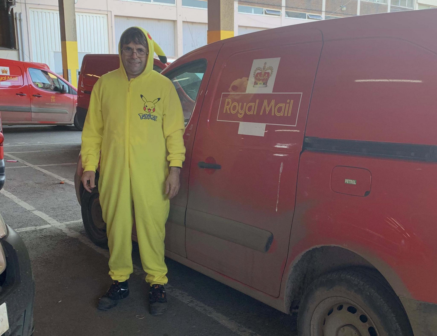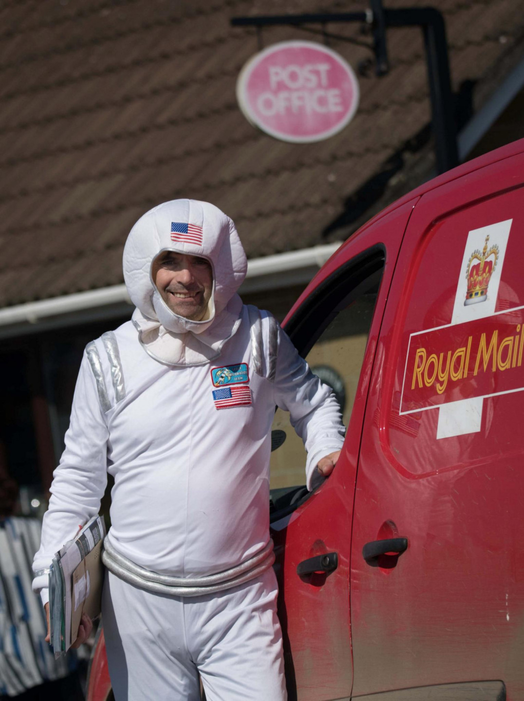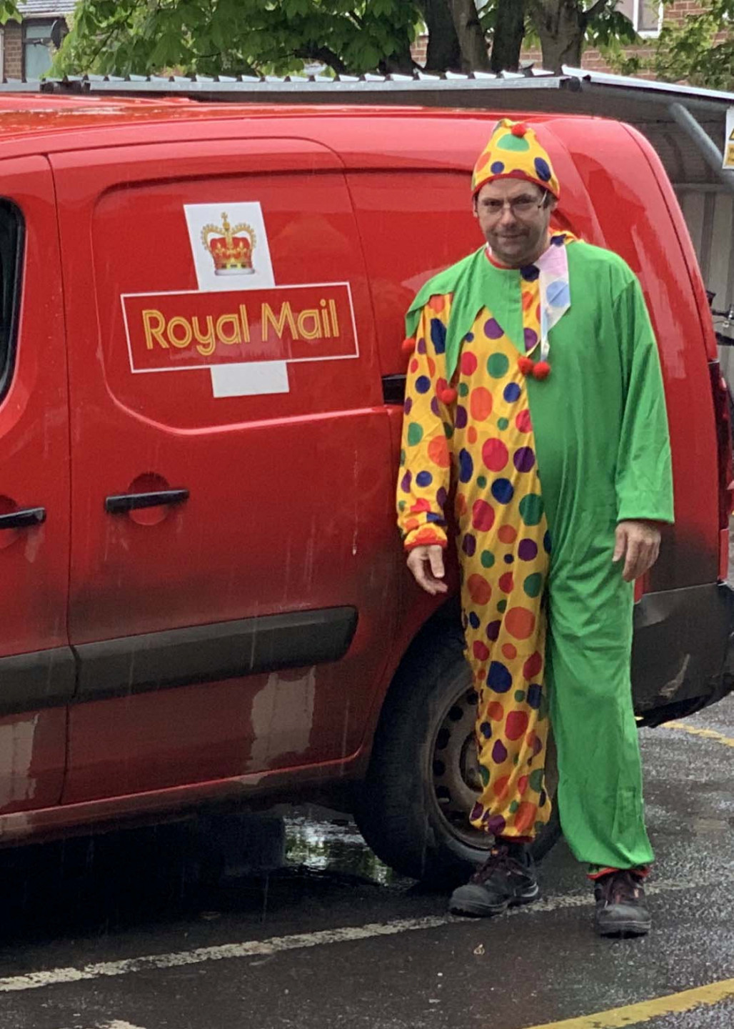 Pastnieks Anglijā iepriecina ļaudis, piegādājot pastu neparastos tērpos