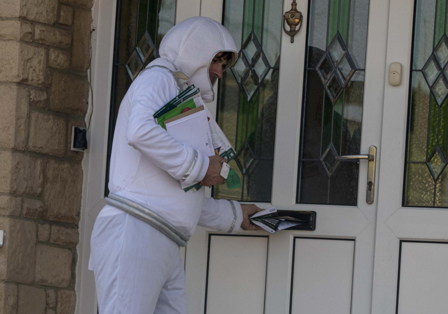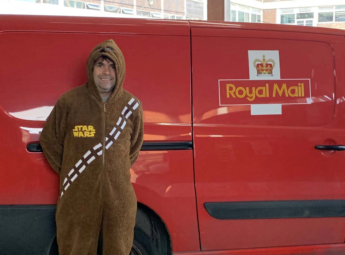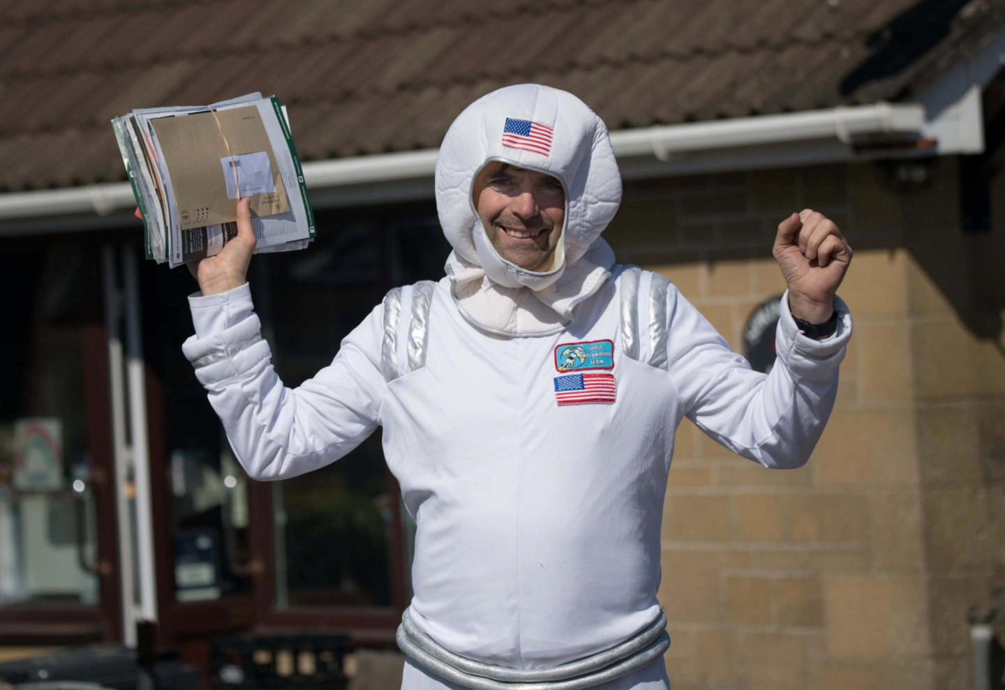 Pastnieks Anglijā iepriecina ļaudis, piegādājot pastu neparastos tērpos