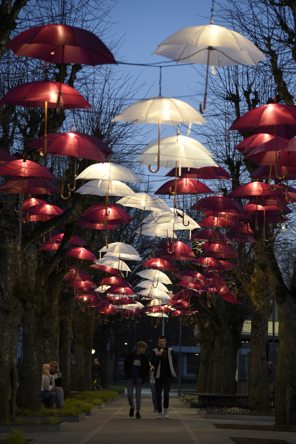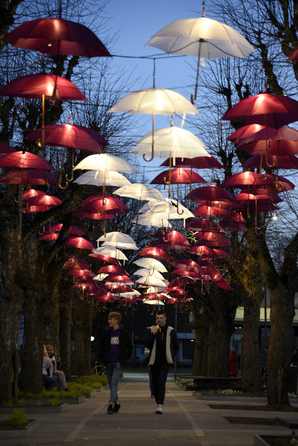 Kā norādīts Ogres pilsētas mājaslapā, šogad Brīvības ielu rotā ne tikai valsts karogi, bet arī ar sarkaniem un baltiem lietussargiem izdekorēta liepu aleja. Dizaina objekts, kuru veido kopumā 130 balti un sarkani lietussargi, diennakts tumšajā laikā ir izgaismots. Jaunās dekorācijas pilsētu rotās līdz 31. maijam.