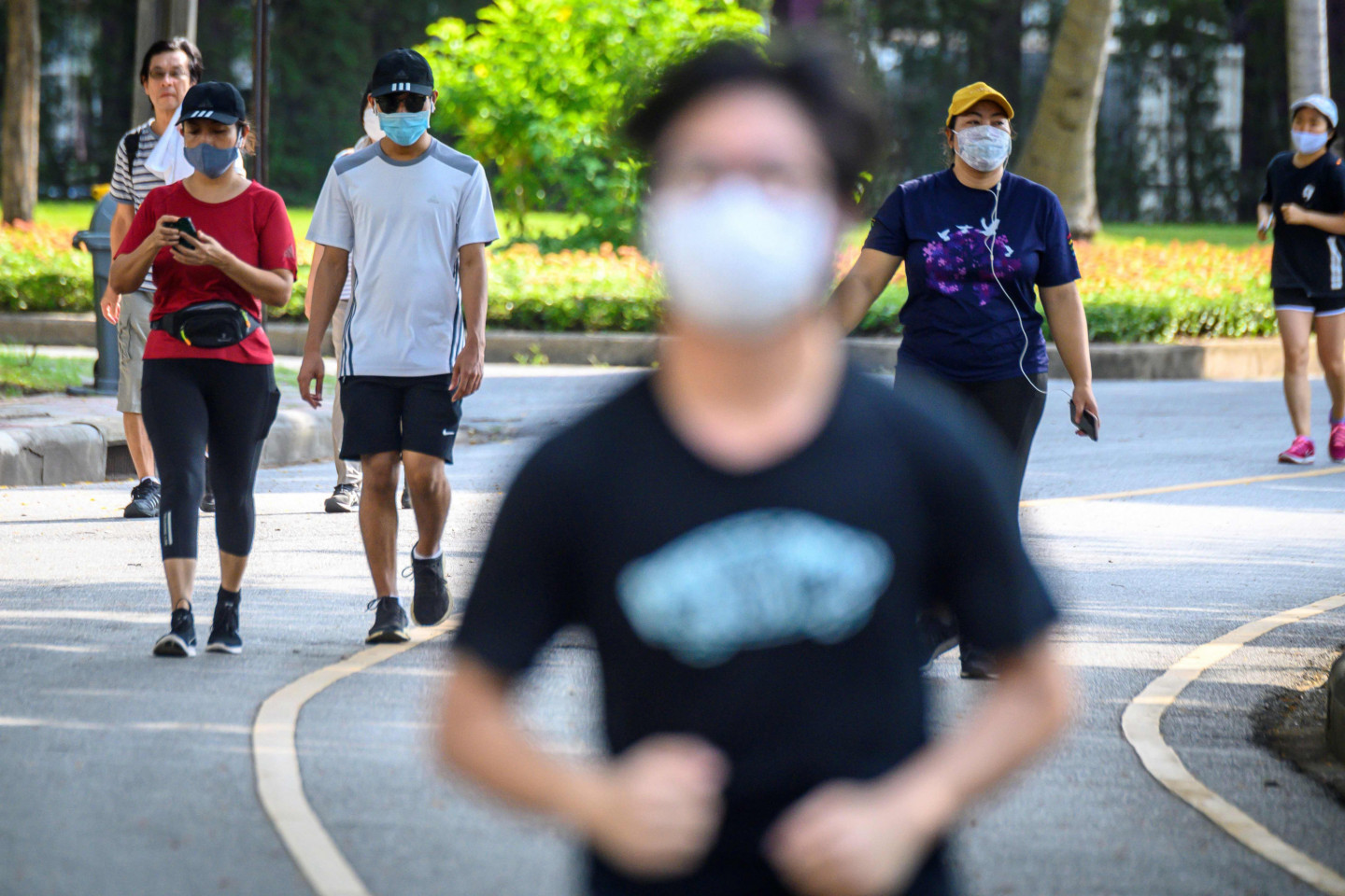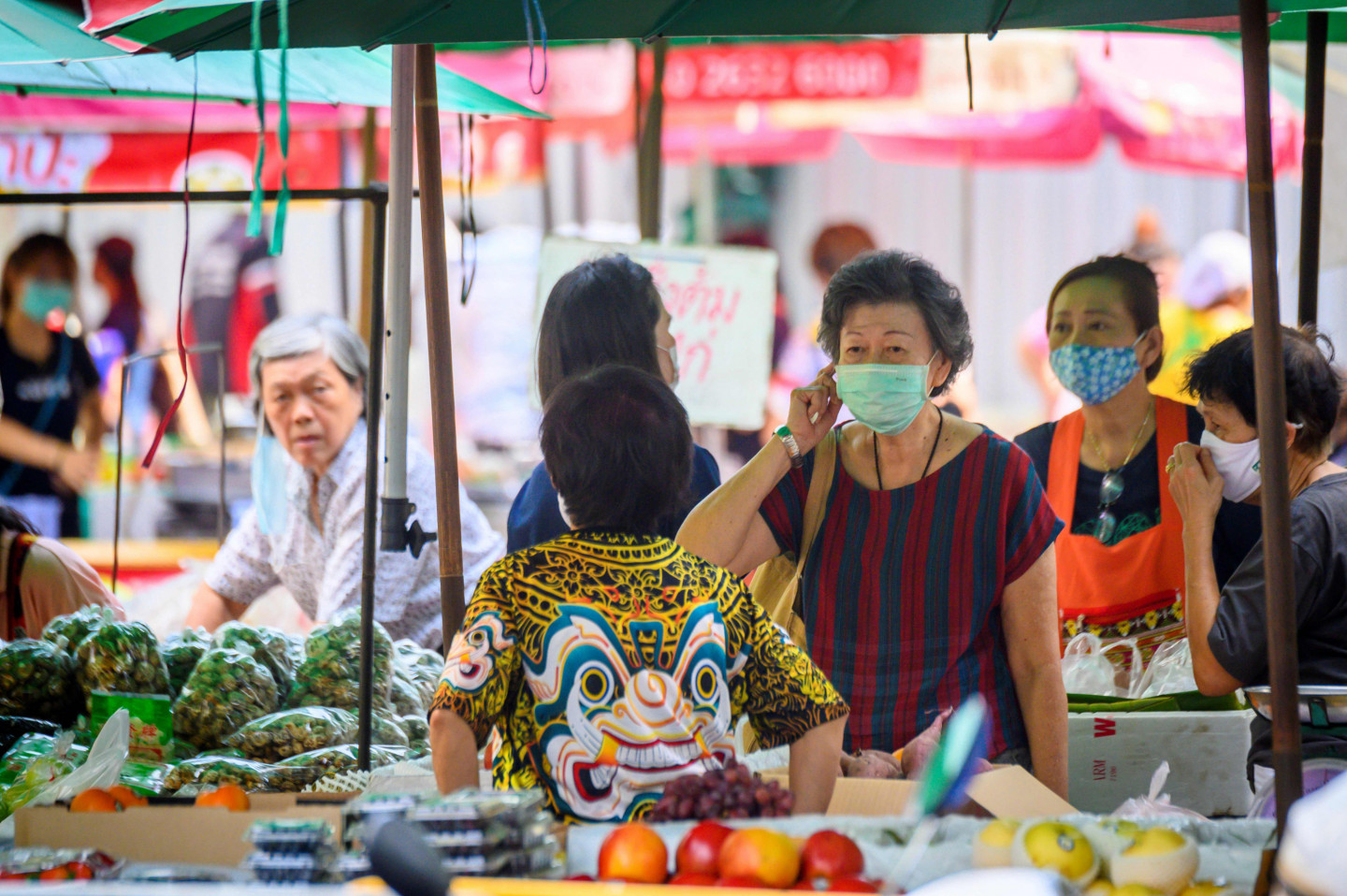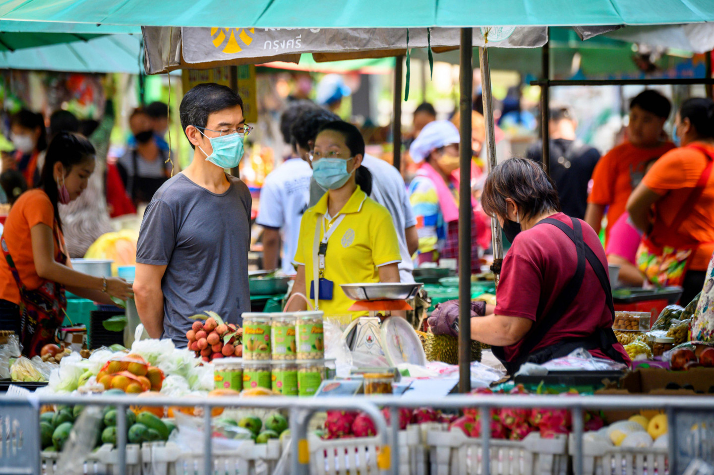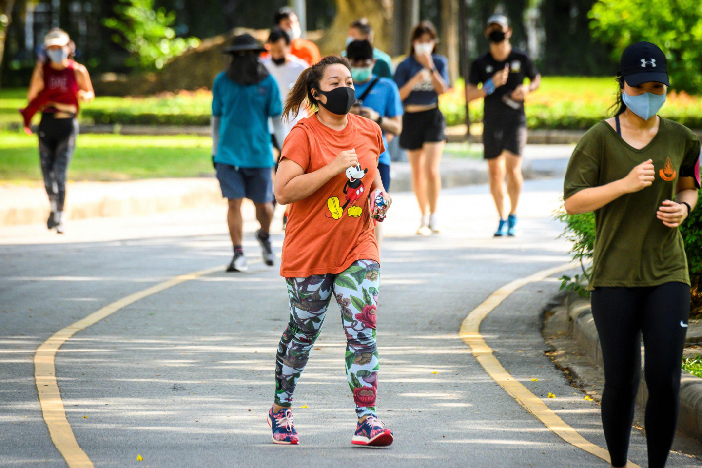 No šodienas Taizemē ieviesti Covid-19 ierobežojumu mīkstinājumi, kas atļauj vairākiem uzņēmumiem atsākt darbu. Taču valdība brīdinājusi, ka tiks pieņemti daudz striktāki mēri, ja būs vērojams jauns vīrusa uzliesmojums. Foto uzņemti Lumpini parkā pēc ierobežojumu mīkstināšanas.