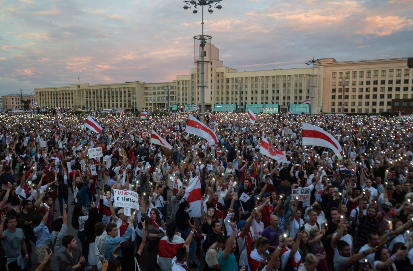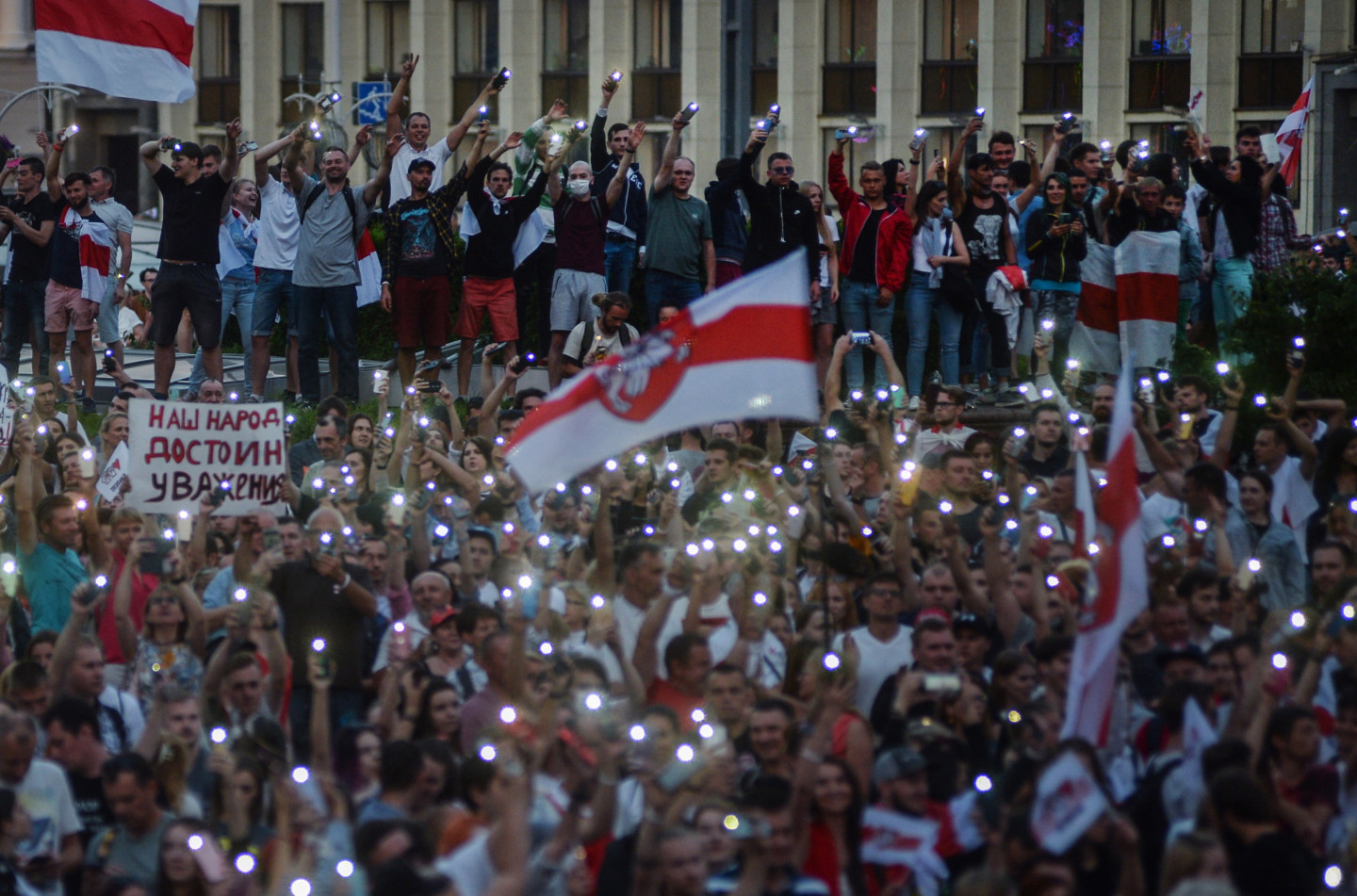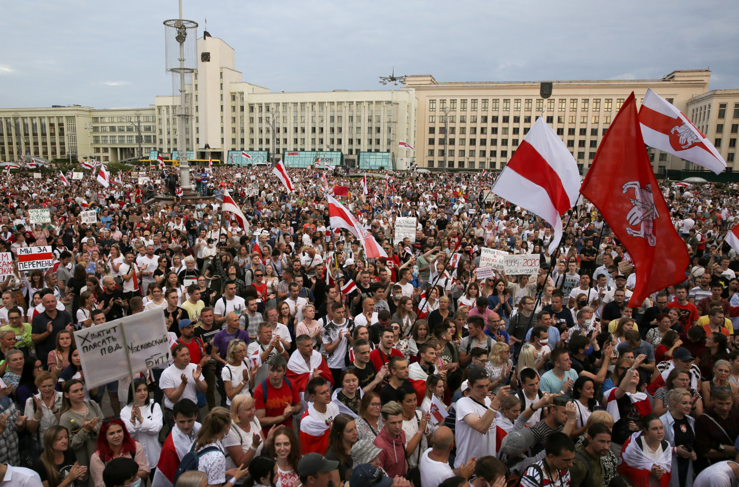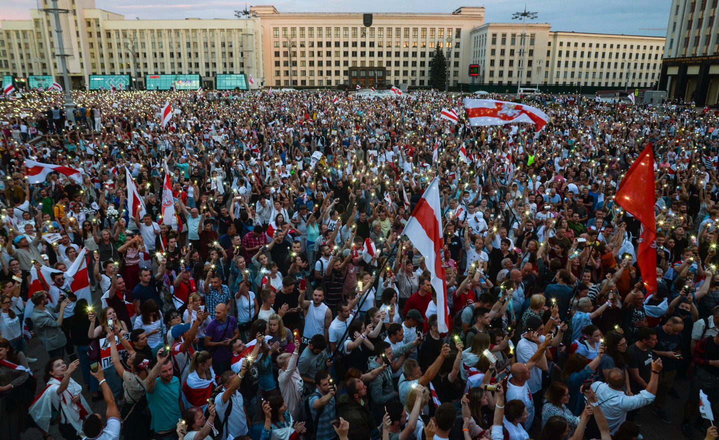 Tūkstošiem cilvēku otrdienas vakarā Minskas Neatkarības laukumā sapulcējušies kārtējā protesta mītiņā, pieprasot prezidenta Aleksandra Lukašenko atkāpšanos. Pēc portāla "Tut.by" žurnālistu aplēsēm, mītiņā piedalījušies apmēram 10 000 cilvēku.