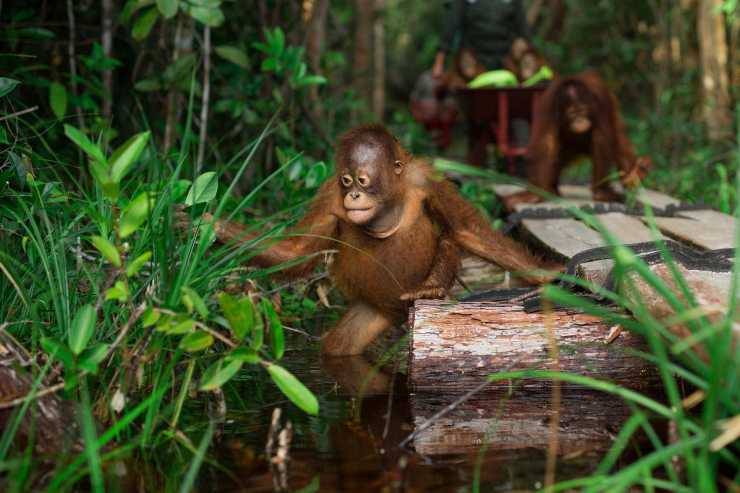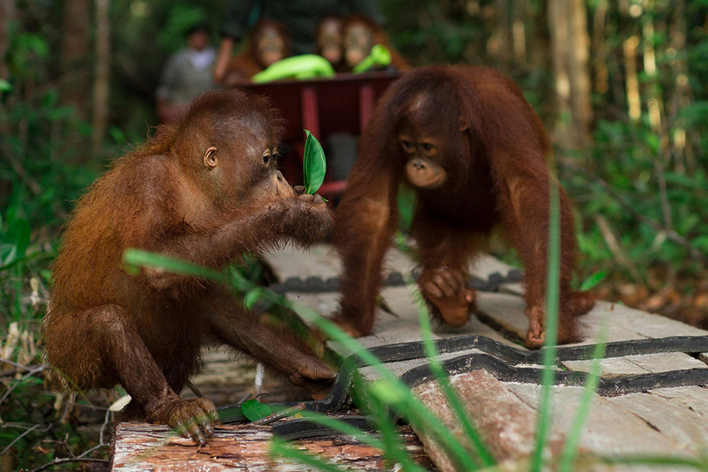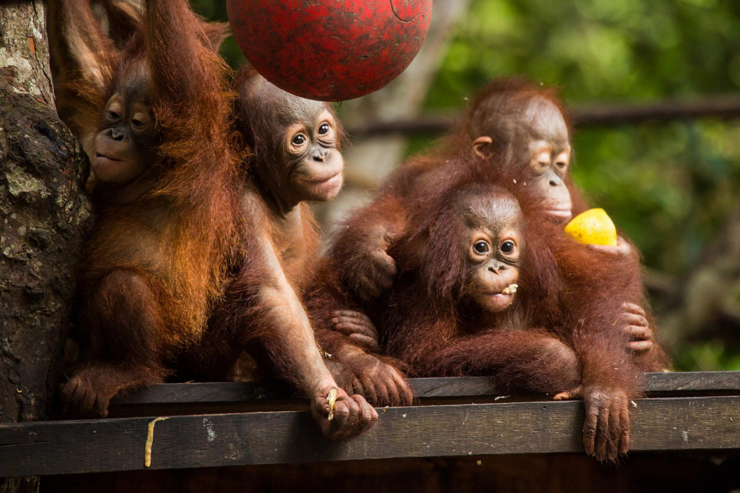 Indonēzijā meža ugunsgrēkos izglābtos orangutanu mazuļus nogādā "meža skolā", kur tie būs kopā ar citiem orangutaniem pirms tos palaidīs brīvībā.