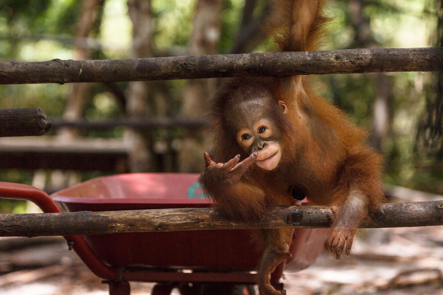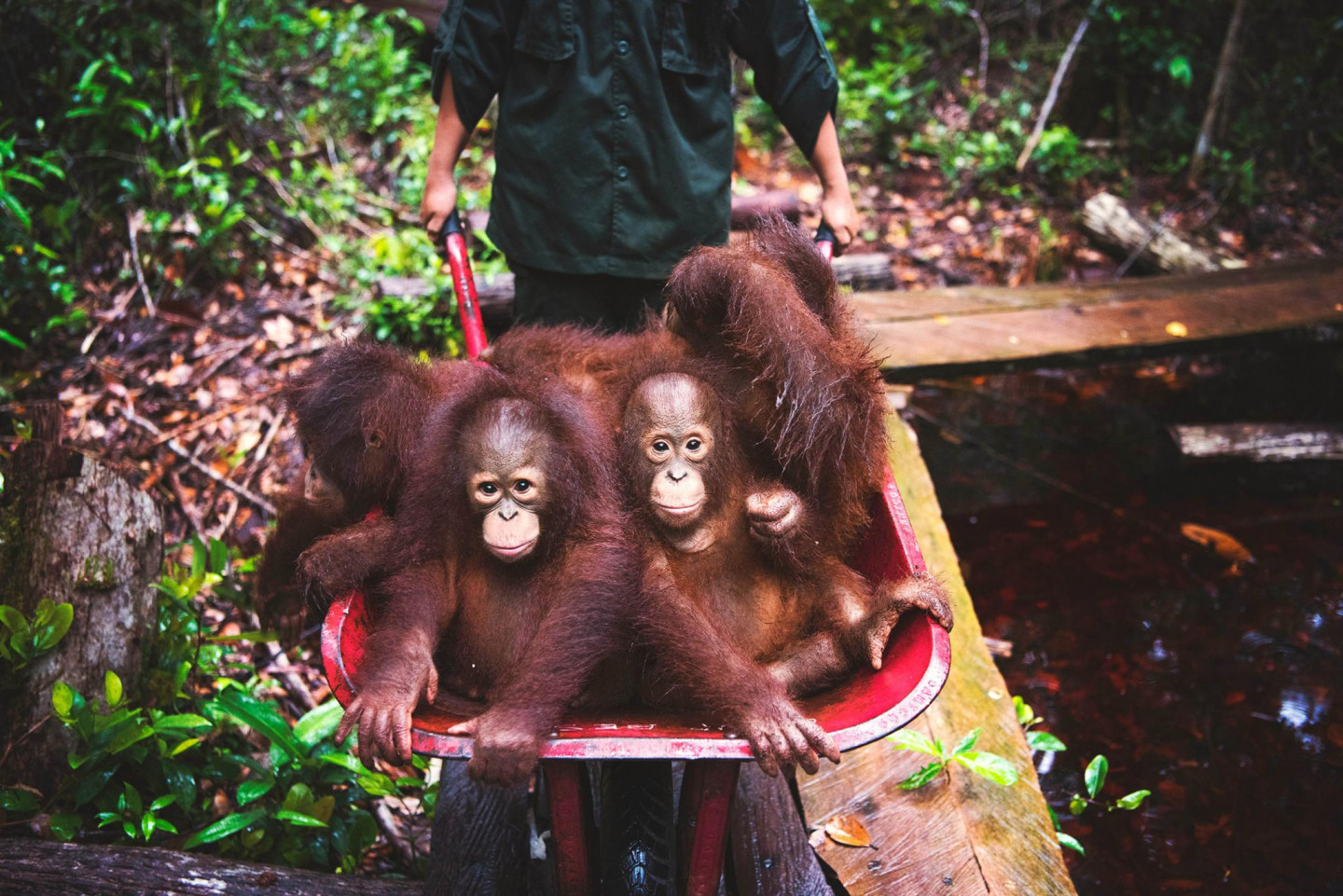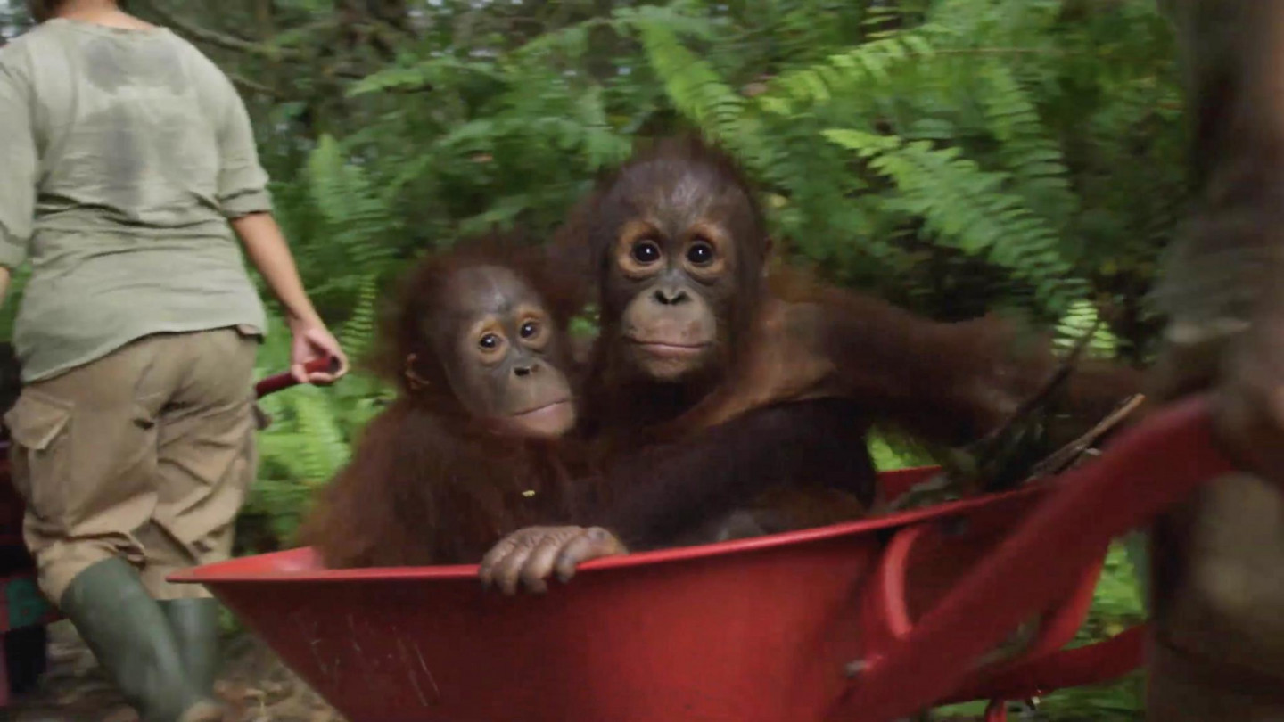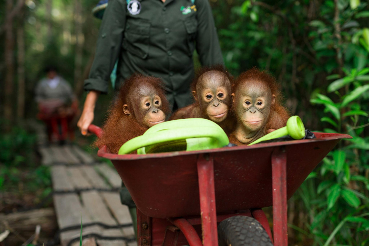 Indonēzijā meža ugunsgrēkos izglābtos orangutanu mazuļus nogādā "meža skolā", kur tie būs kopā ar citiem orangutaniem pirms tos palaidīs brīvībā.