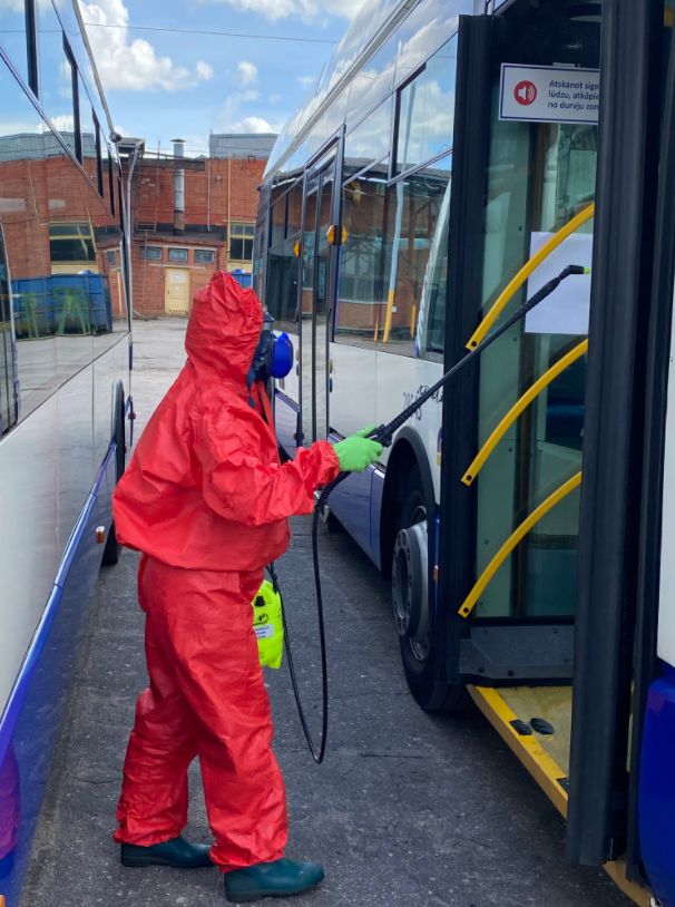 Jau kopš marta sākuma ikviens tramvajs, trolejbuss un autobuss tiek pastiprināti uzkopts un dezinficēts. Šie darbi joprojām tiek veikti ik dienu, sociālajā vietnē Twitter informē "Rīgas satiksme".