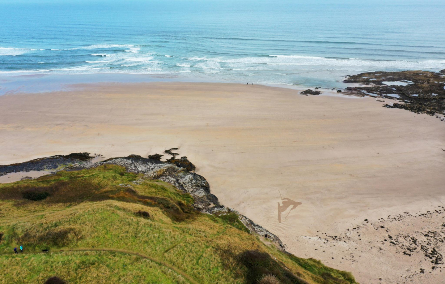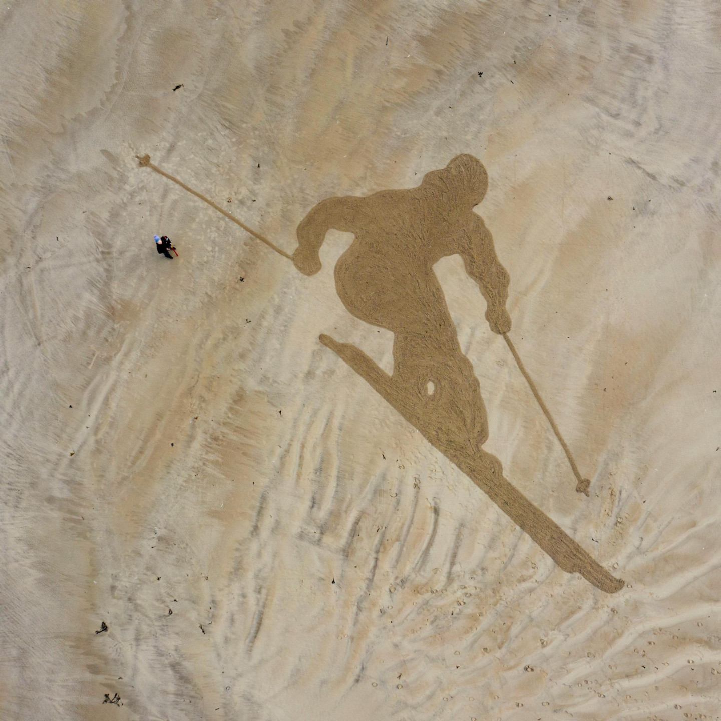 Mākslas darbs ar slēpotāju pārsteidz pludmales apmeklētājus Anglijā