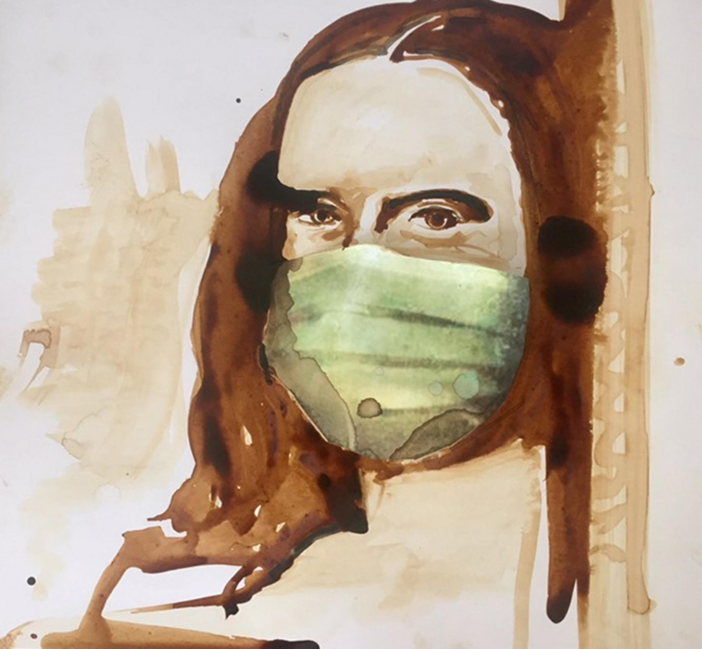"Corona Liza"; mākslinieks attaino slaveno "Monu Lizu" sejas maskā