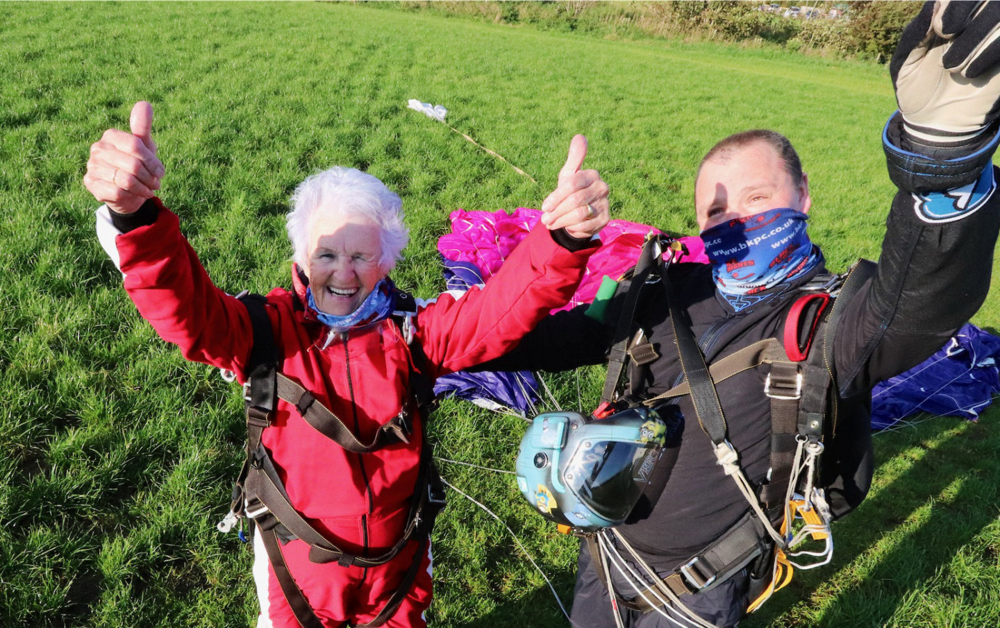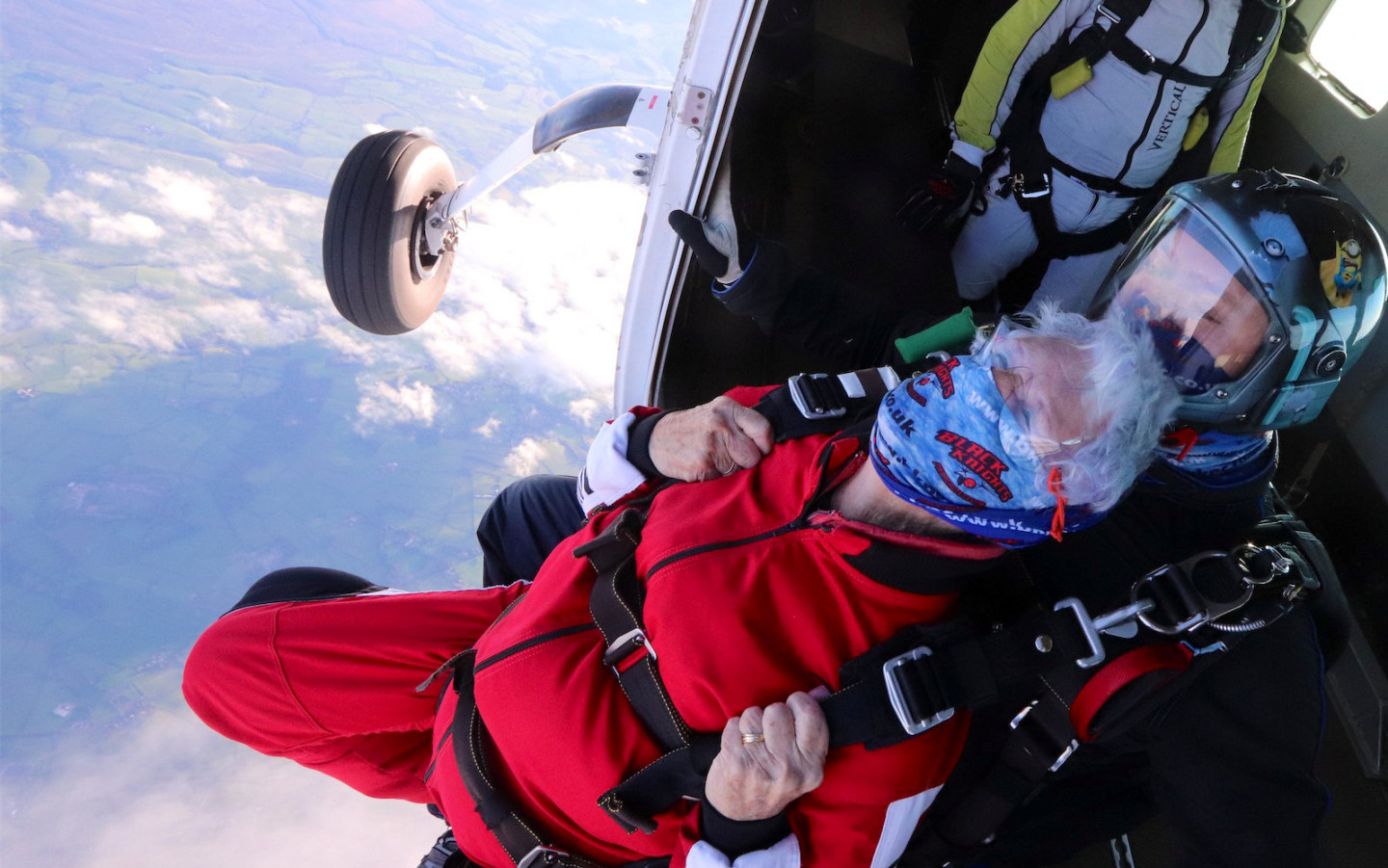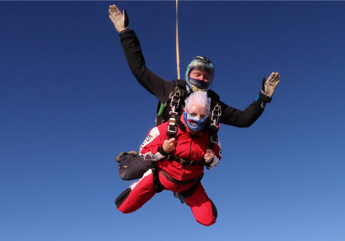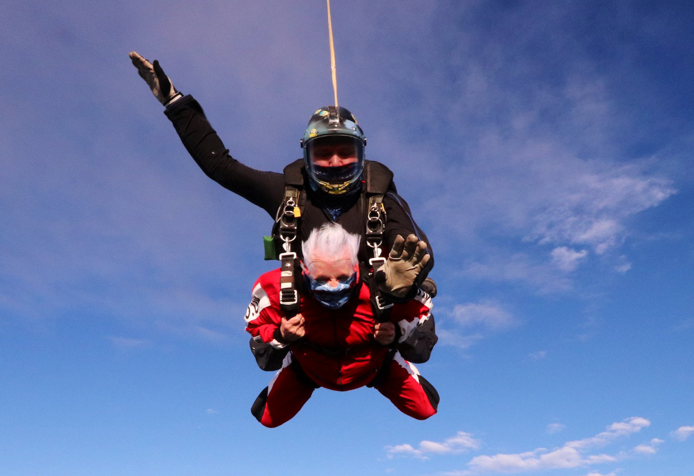 Sieviete 90. dzimšanas dienu atzīmē, izlecot ar izpletni